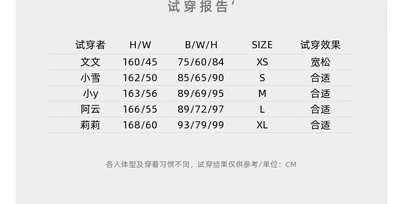 China (cm) 160-165/84-86 165-170 / 88-90 167-172 / 92-96 168-173 / 98-102 170-176 / 106-110