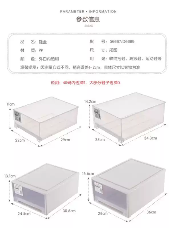 Yusenyi shoe box drawer-type transparent plastic men's and women's shoe storage box, thickened, multi-layered, dust-proof, assembly-free shoe cabinet D, three packs (assembly-free) (everyone agrees) 36x28x16.6cm