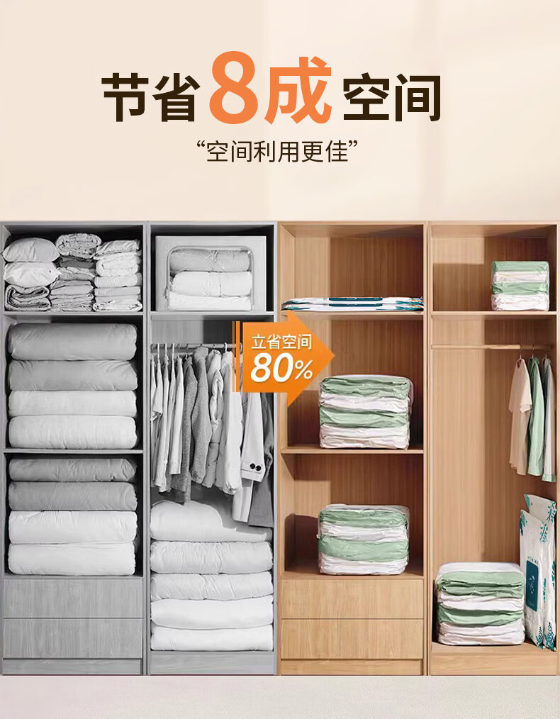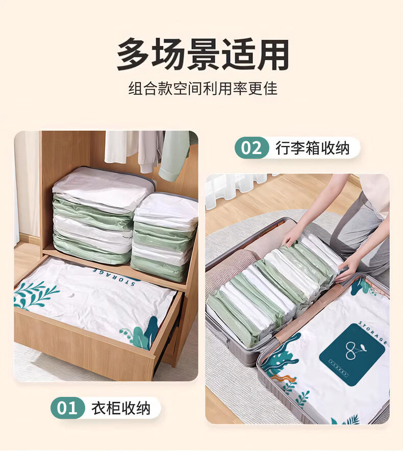 Yong Huan vacuum compression storage bag for clothes and quilts, special travel suitcase for packing clothes, quilts, down jackets, hand pump set, manual pumping, use anytime, anywhere, 2 pack + medium size 60x80CM