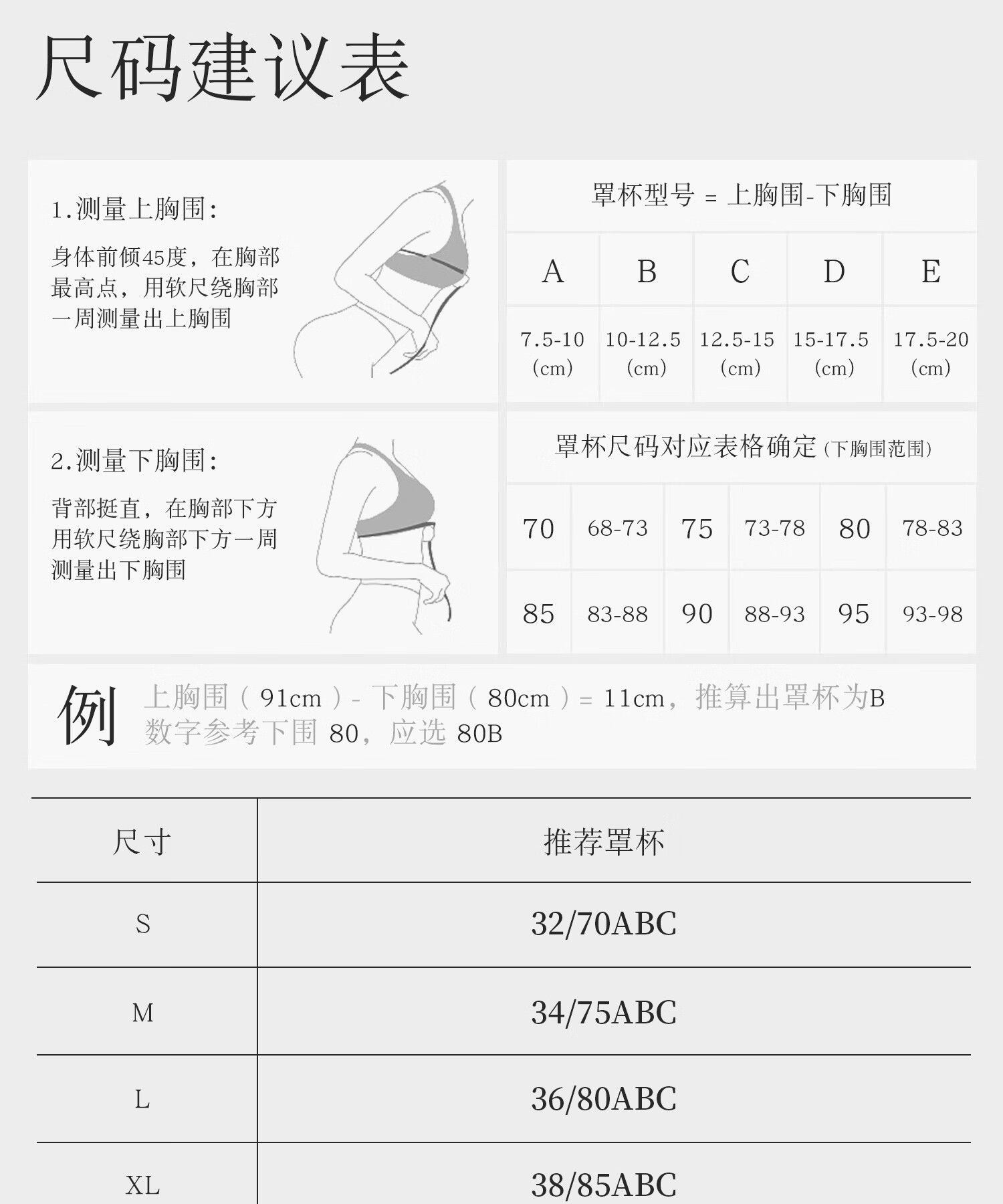 China (cm) 160-165/84-86 165-170 / 88-90 167-172 / 92-96 168-173 / 98-102 170-176 / 106-110