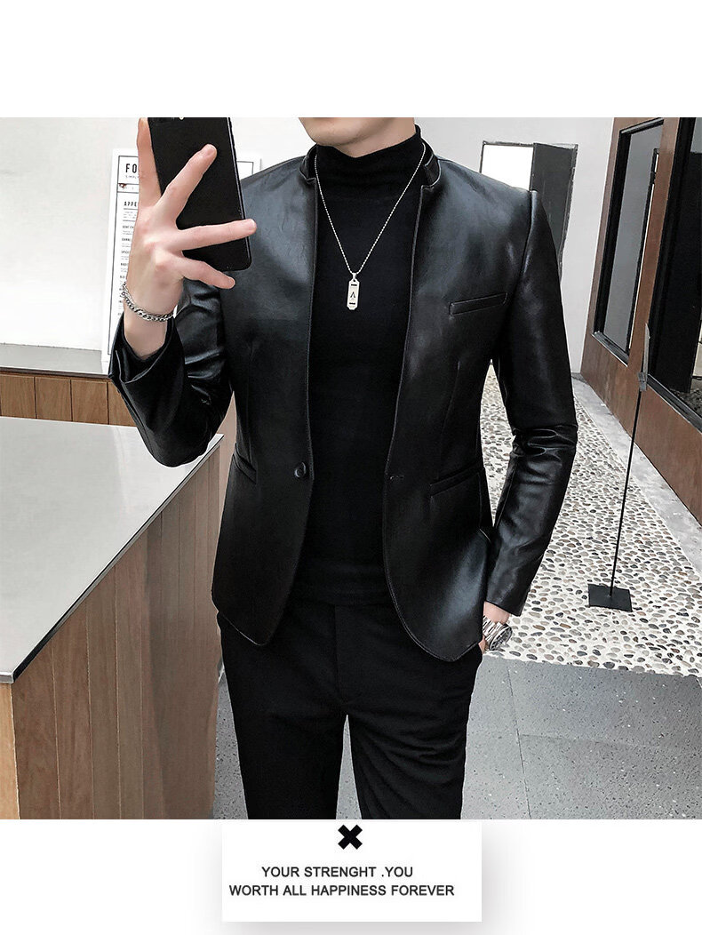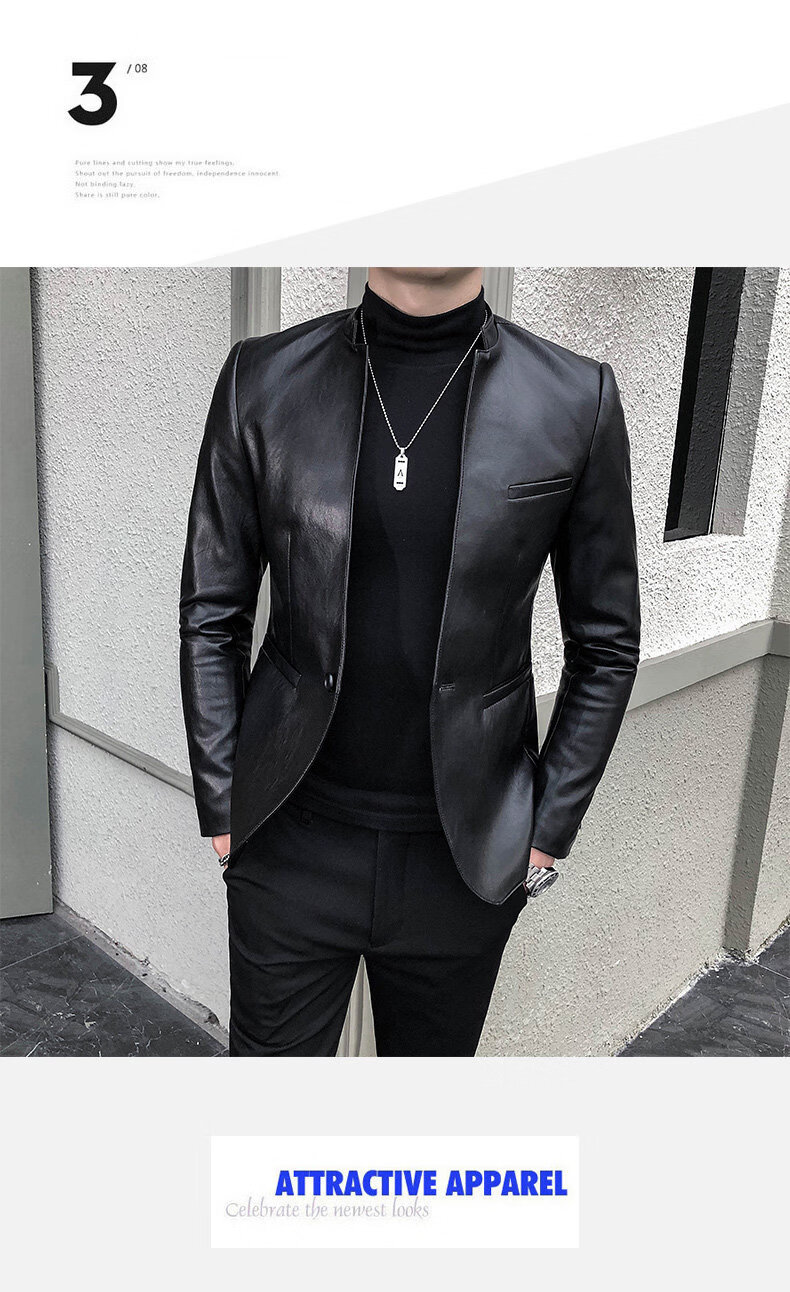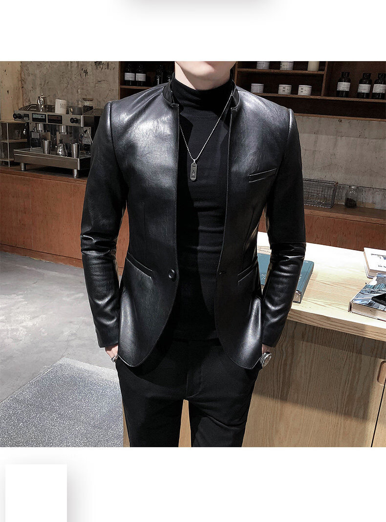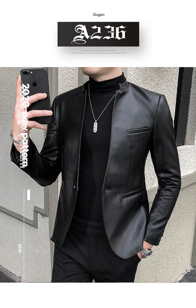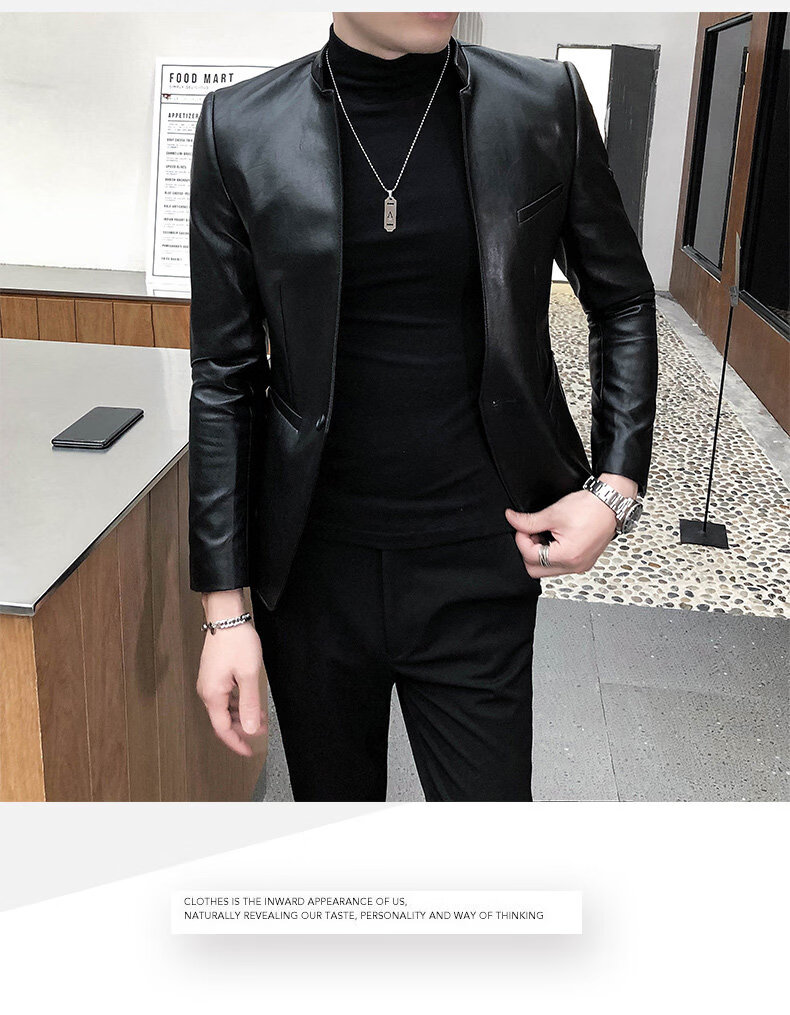 SEPTWOLVES small suit men's spring and autumn slim handsome leather jacket suit casual winter velvet stand collar leather jacket men's black 166 regular M 90-100Jin Jin equals 0.5 kg