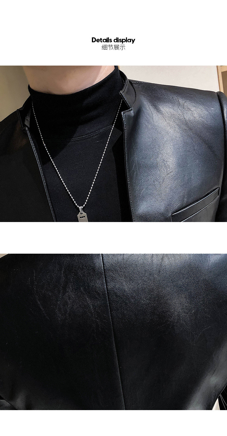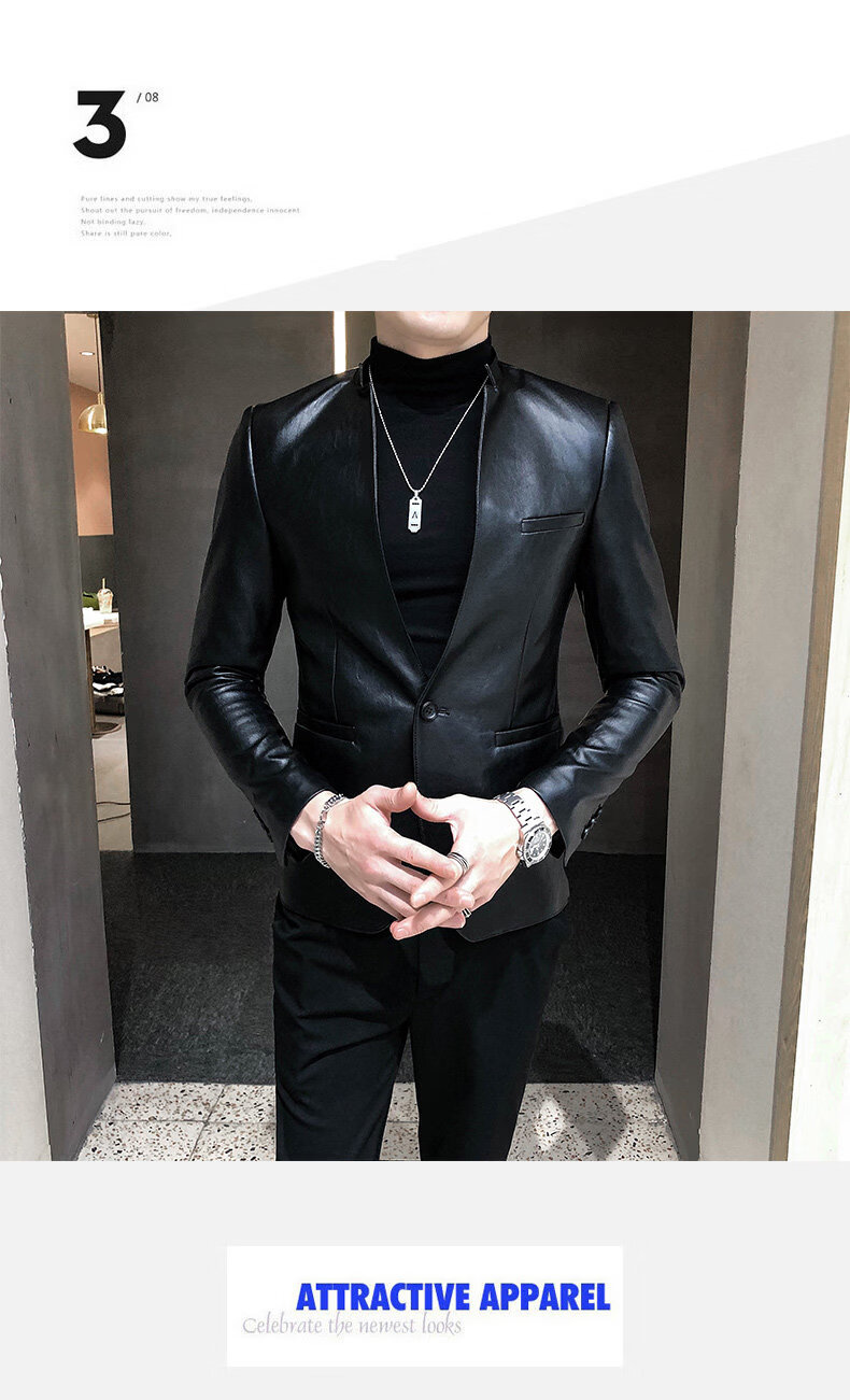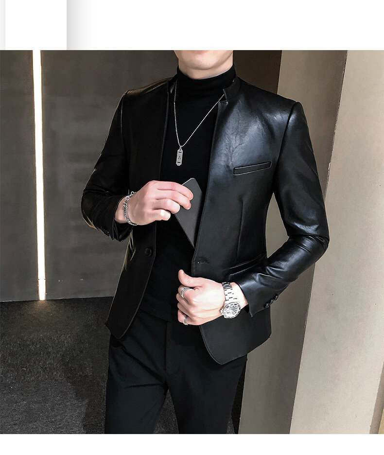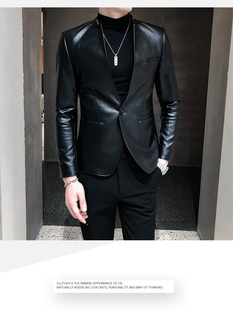 SEPTWOLVES small suit men's spring and autumn slim handsome leather jacket suit casual winter velvet stand collar leather jacket men's black 166 regular M 90-100Jin Jin equals 0.5 kg