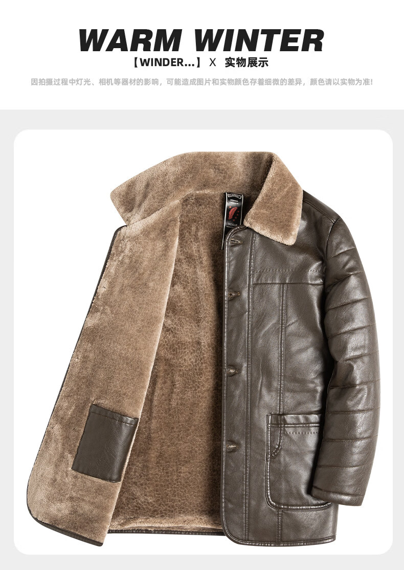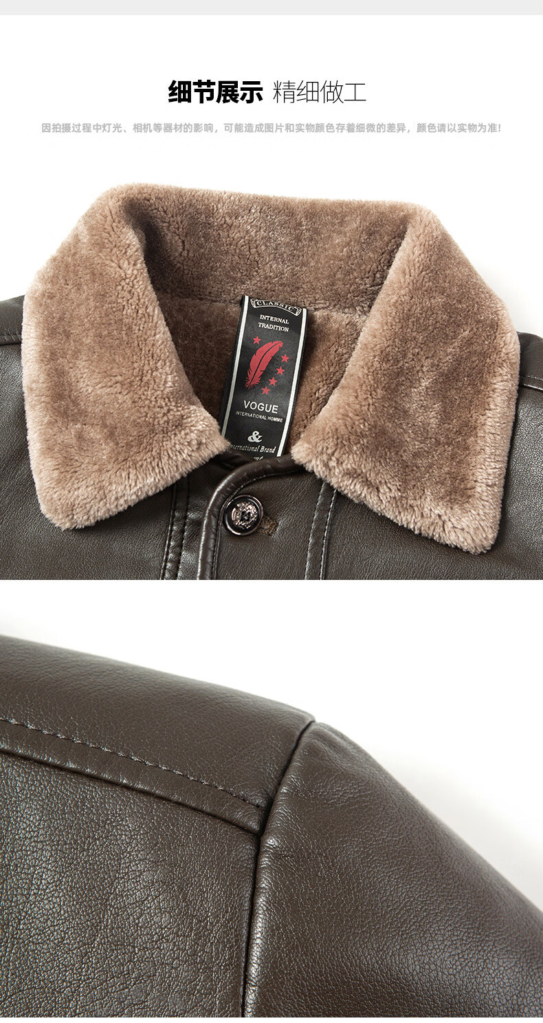 SEPTWOLVES winter middle-aged men's leather jacket plus velvet thickened fur one-piece fur jacket elderly dad wear lapel leather jacket PY212 coffee color L 175 110Jin Jin is equal to 0.5 kg or less