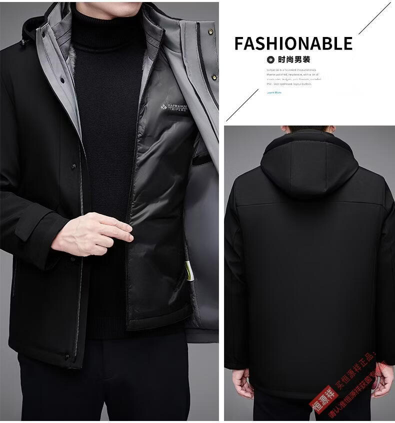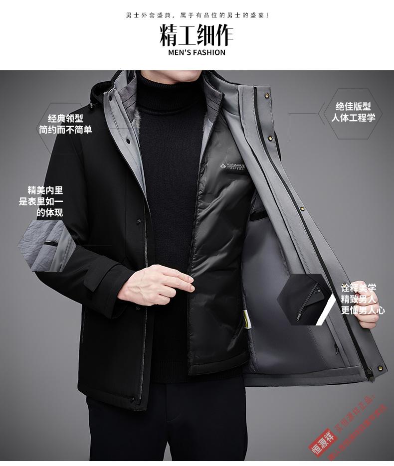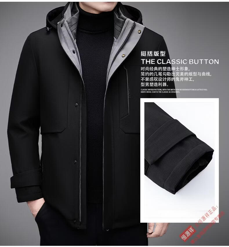 Hengyuanxiang Dad's Removable Goose Down Liner Down Jacket Men's Mid-Length Winter Middle-aged and Elderly Thickened Jacket Navy Blue M 170