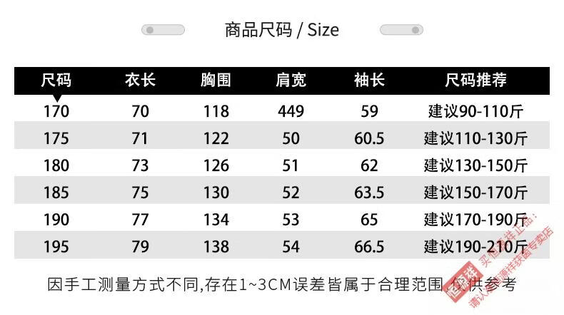 China (cm) 165 / 88-90 170 / 96-98 175 / 108-110 180 / 118-122 185 / 126-130