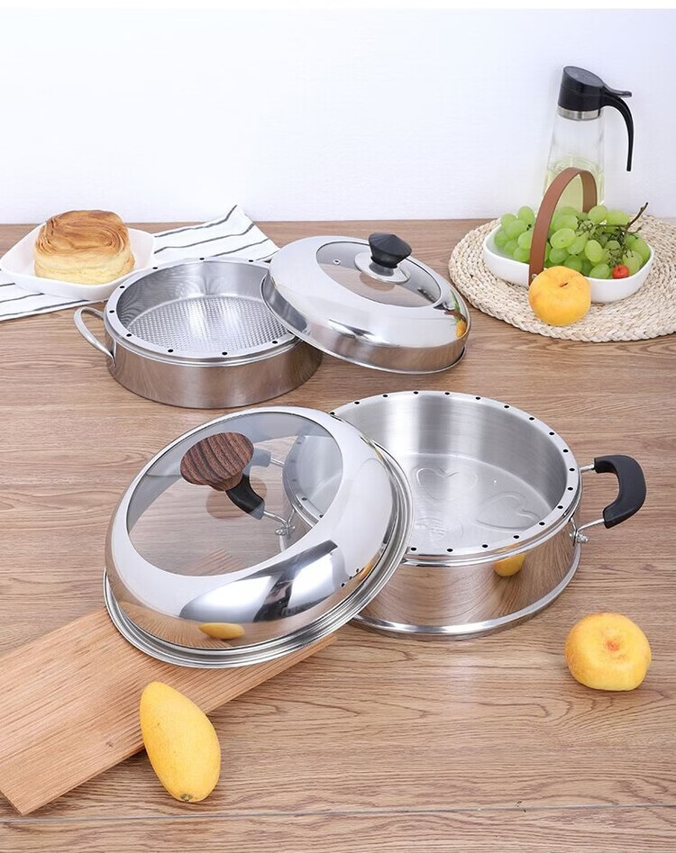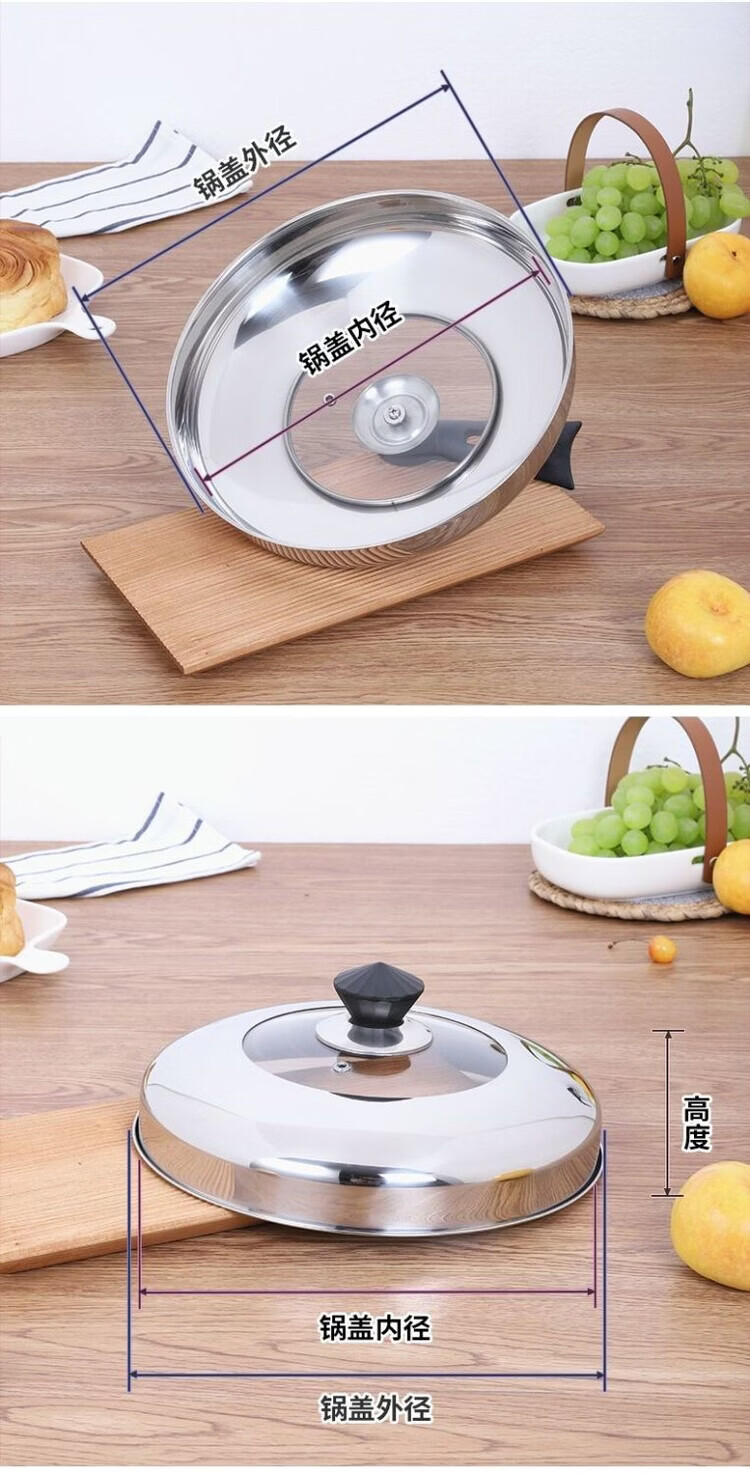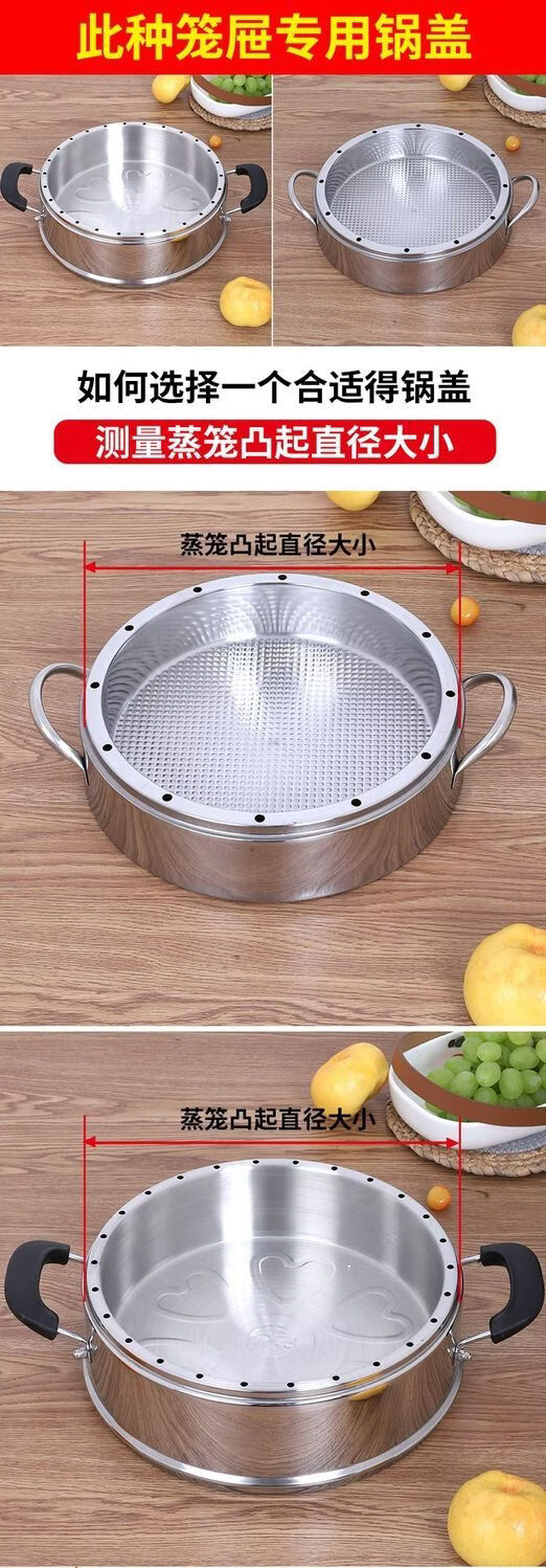 Yong Huan anti-odor steamer steamer rice pot lid household 24CM26CM28CM30 stainless steel lid accessories heightened round anti-scalding diamond handle style 24 cm inner diameter thickened anti-odor steamer lid