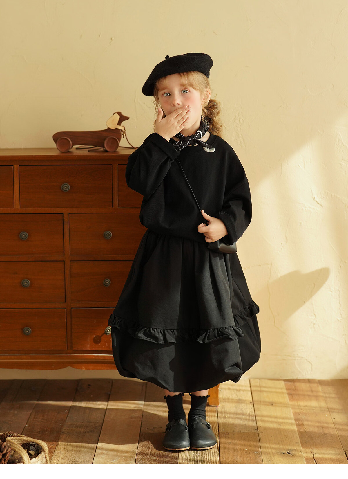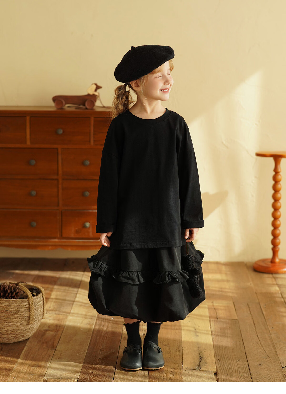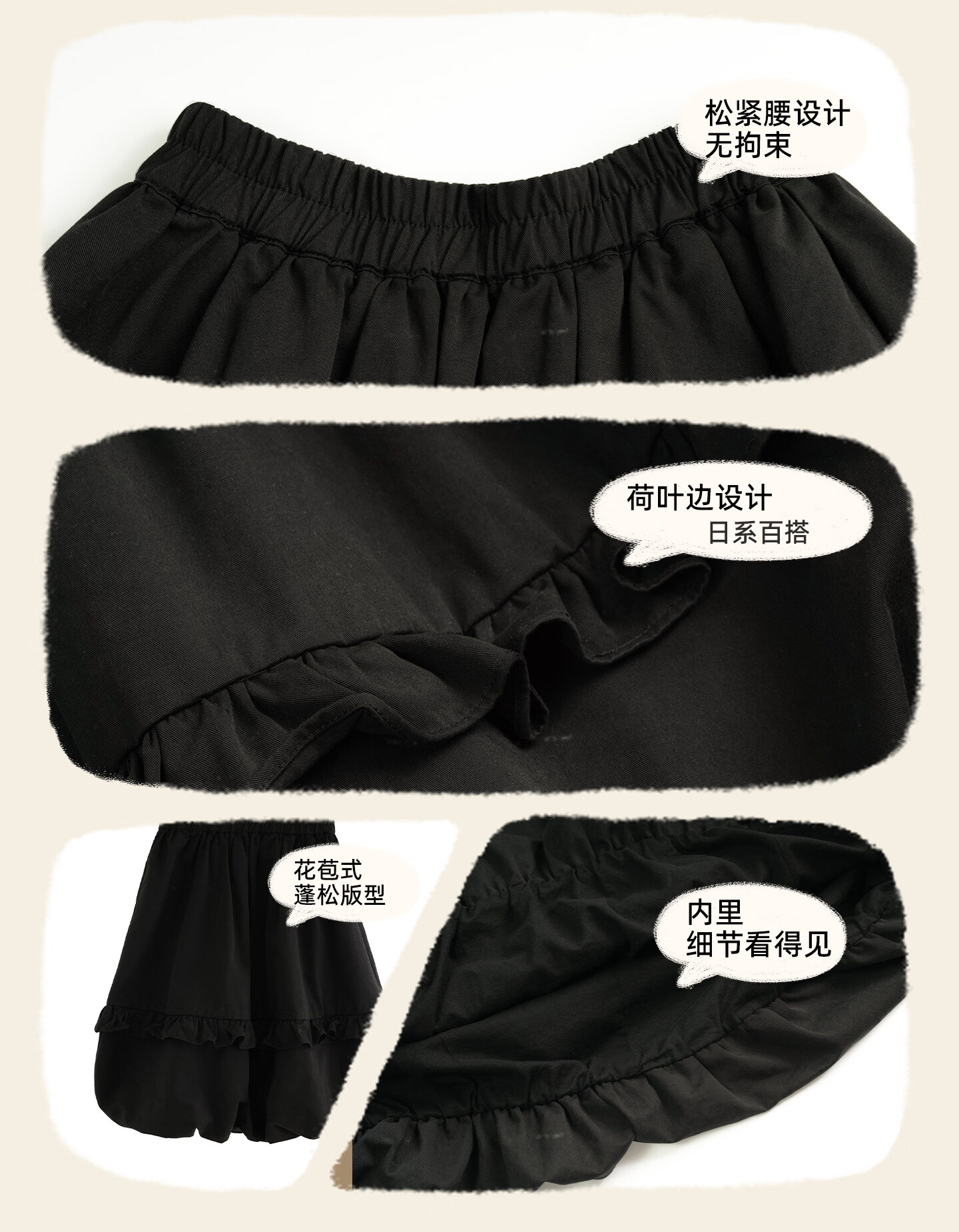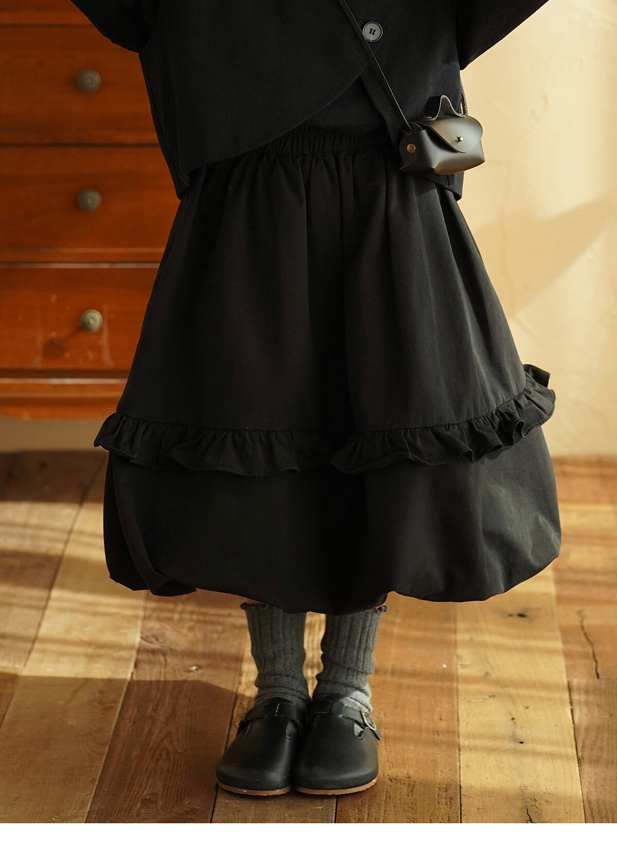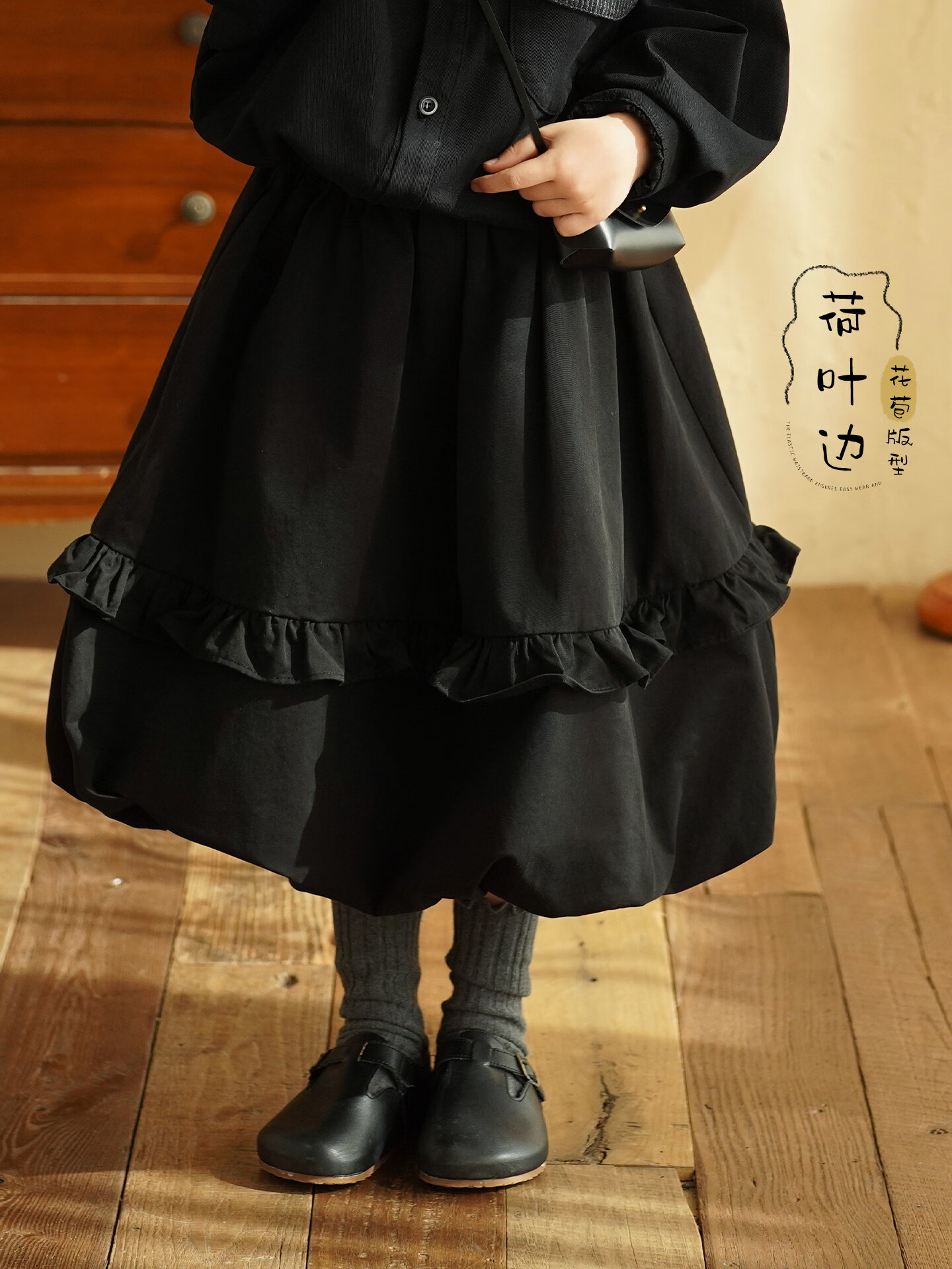 Yantaijia children's clothing girls pure cotton ruffle bud skirt 2026 spring new baby style versatile skirt black 80