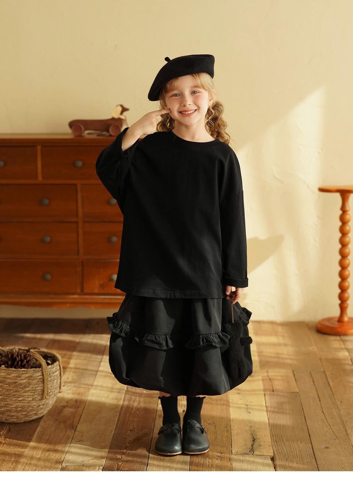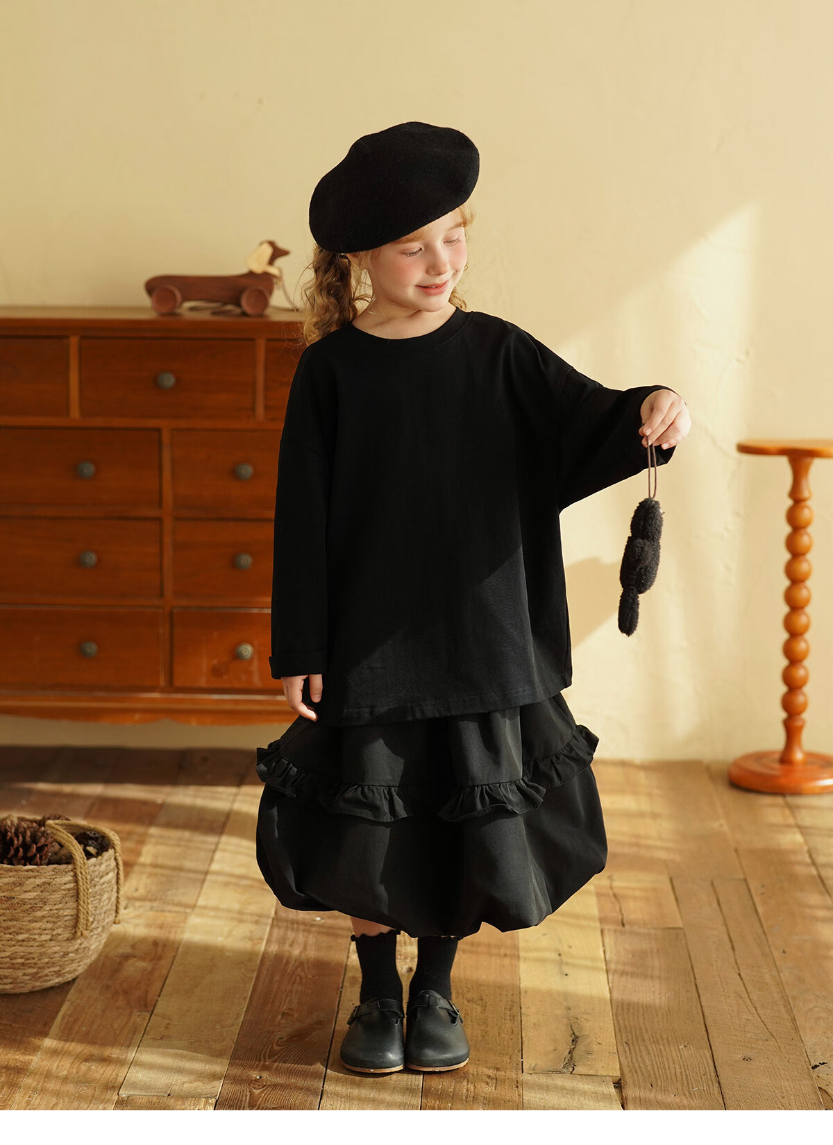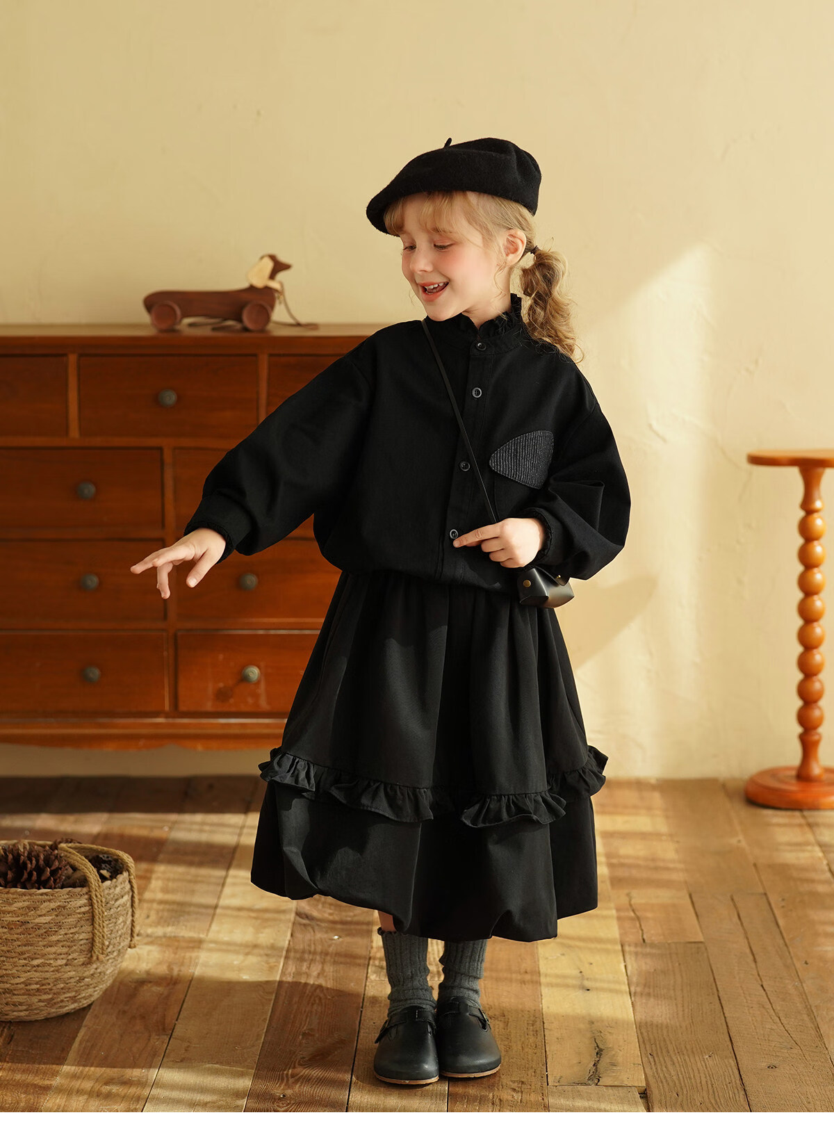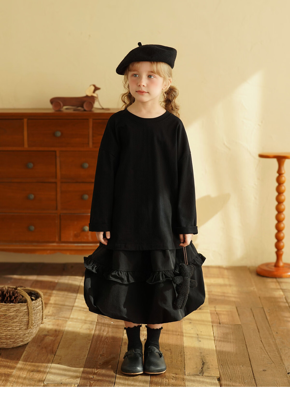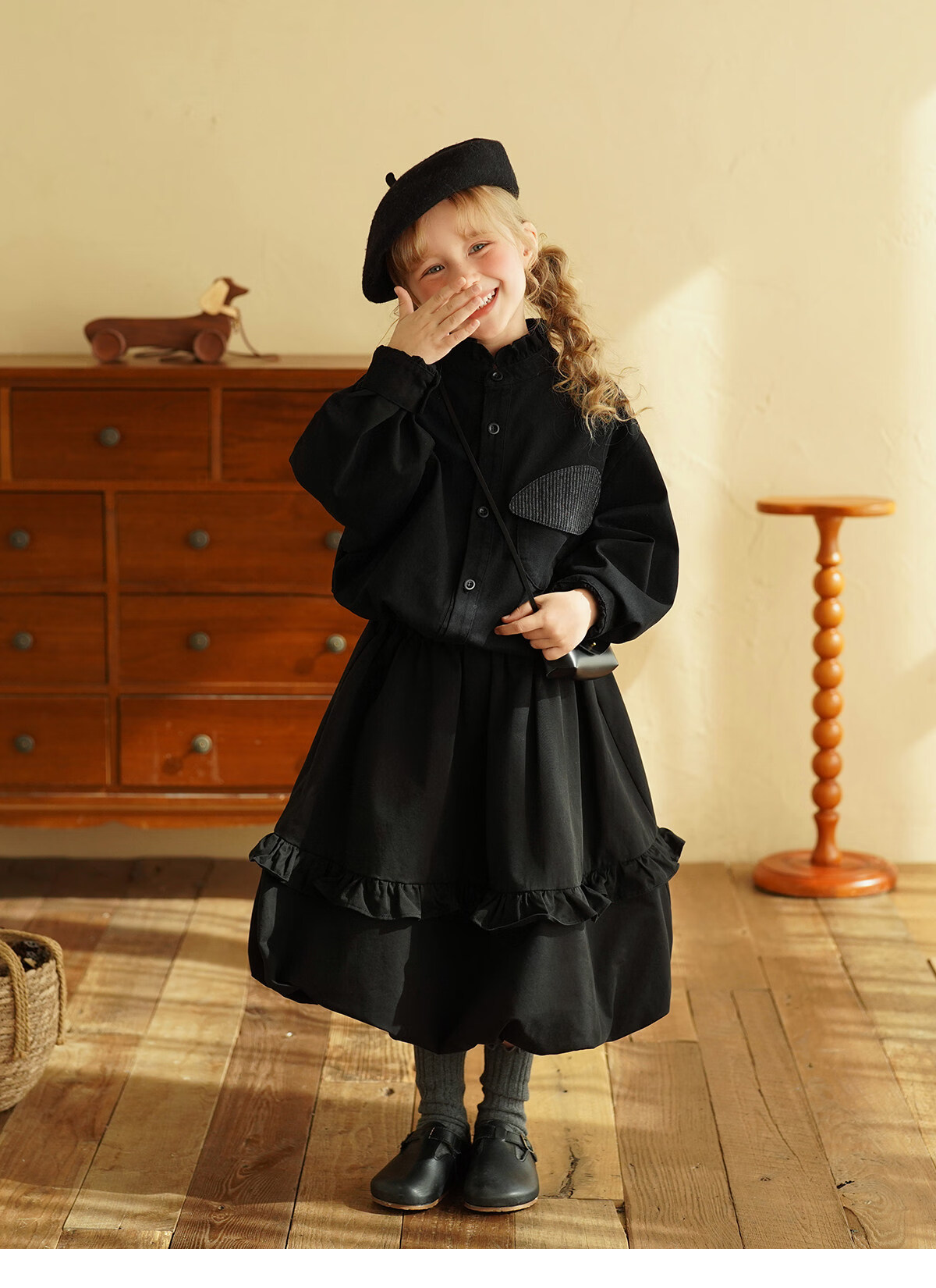 Yantaijia children's clothing girls pure cotton ruffle bud skirt 2026 spring new baby style versatile skirt black 80