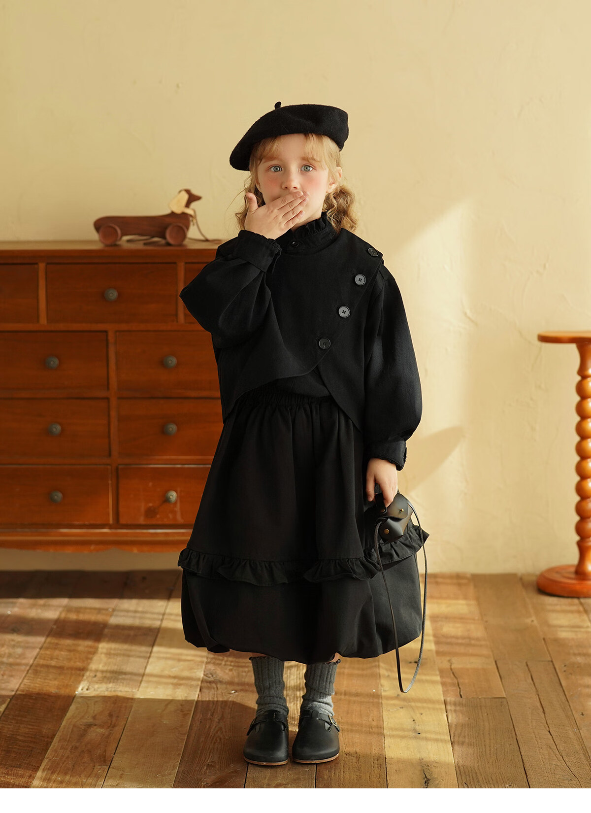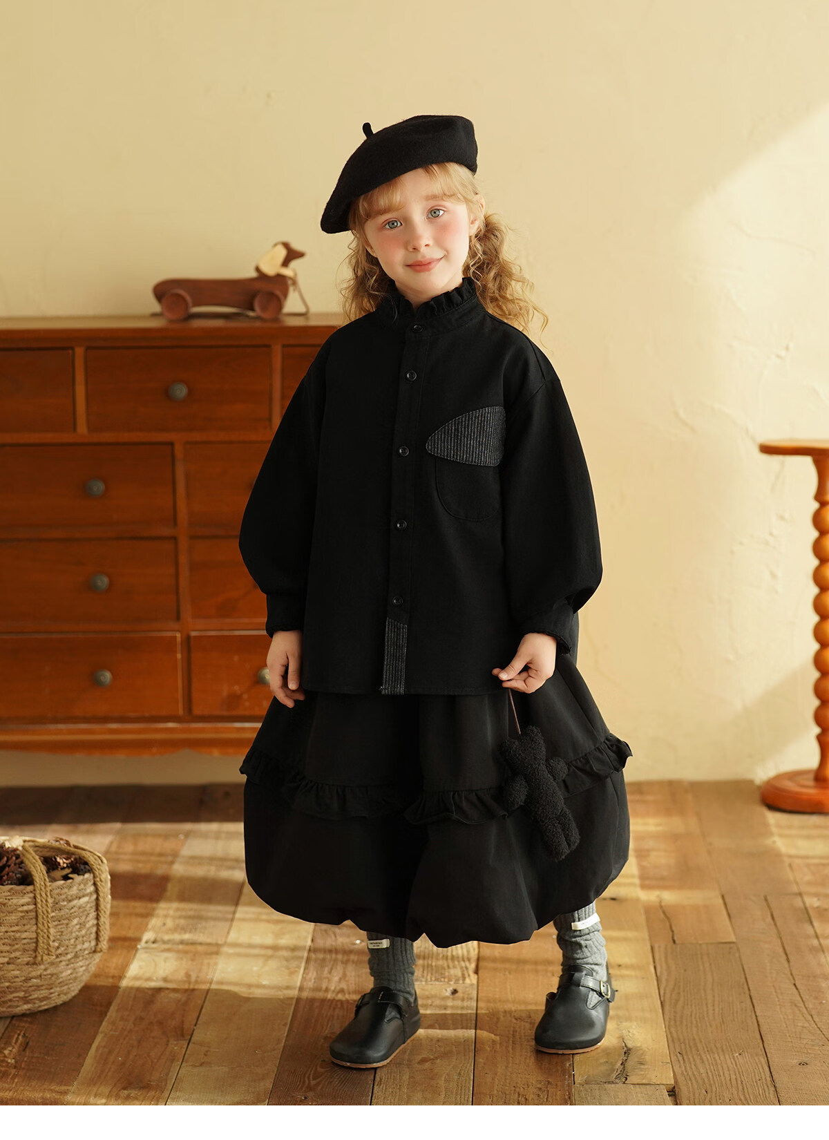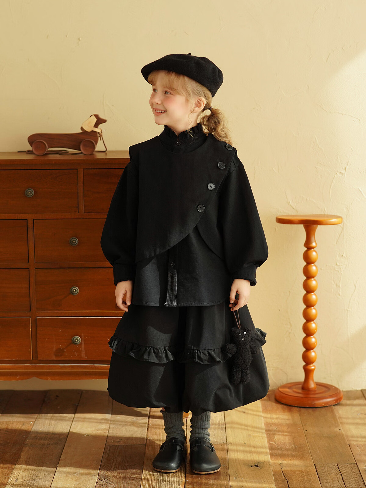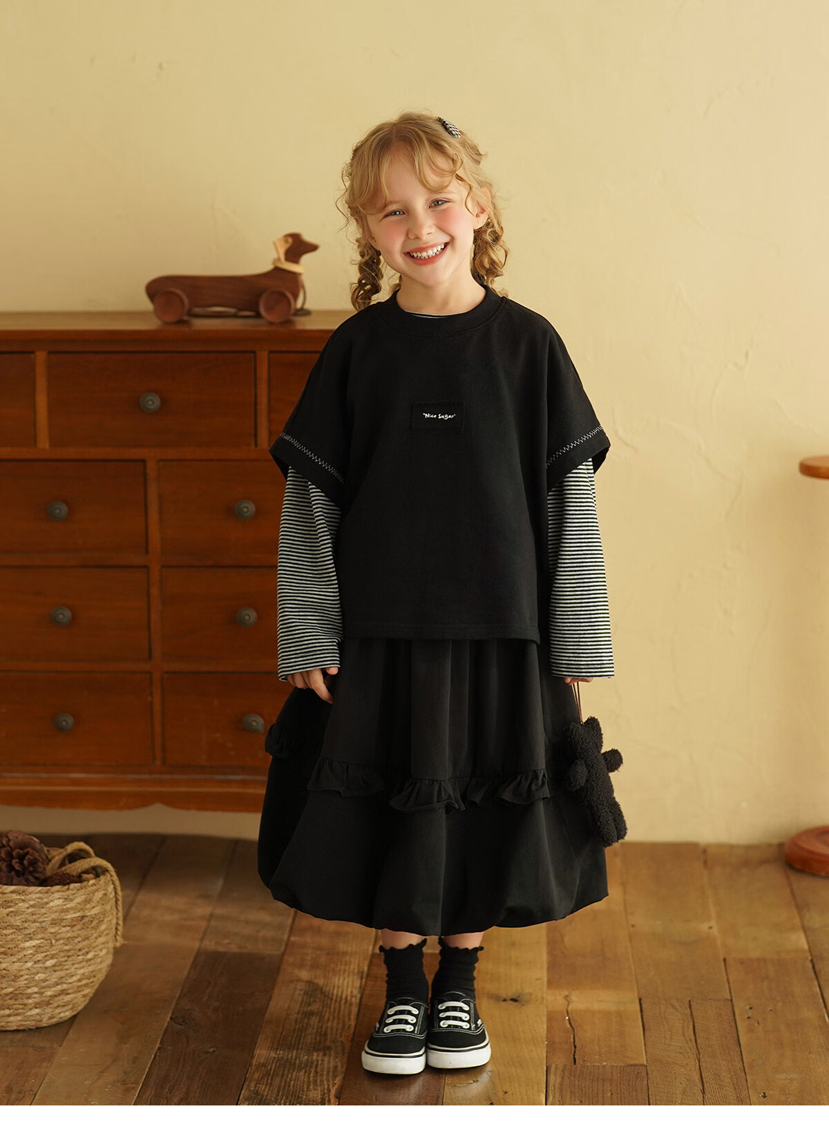 Yantaijia children's clothing girls pure cotton ruffle bud skirt 2026 spring new baby style versatile skirt black 80