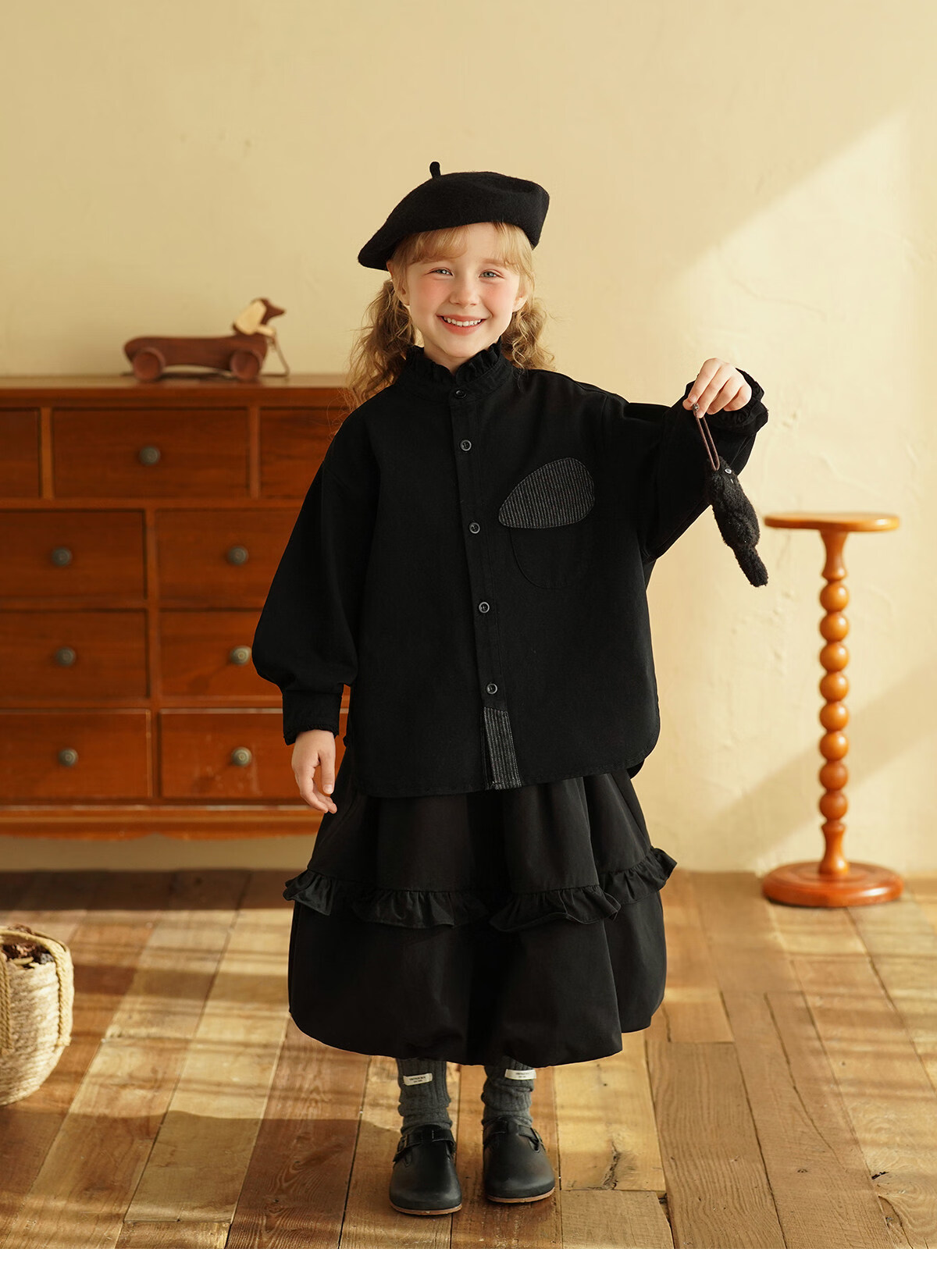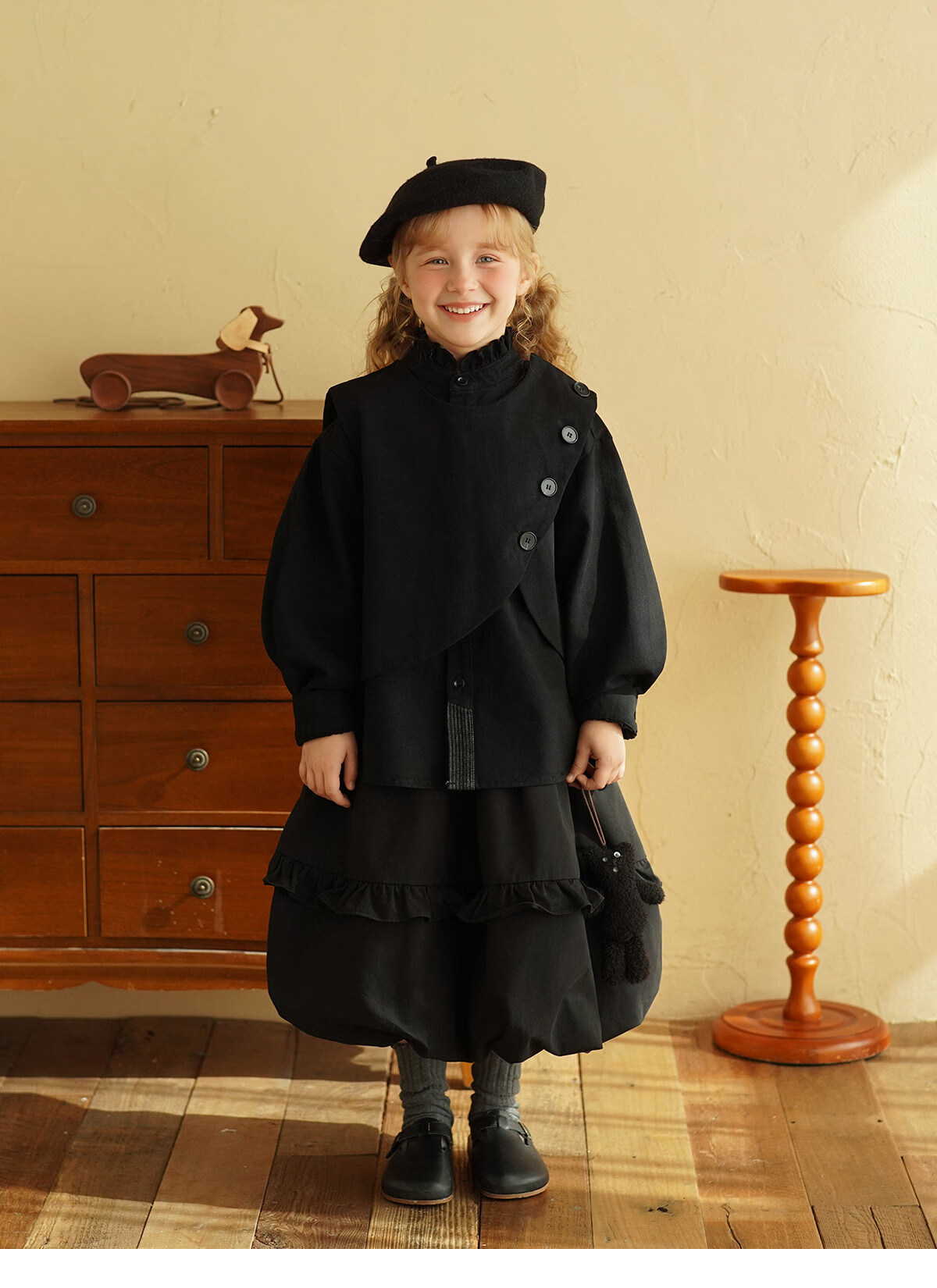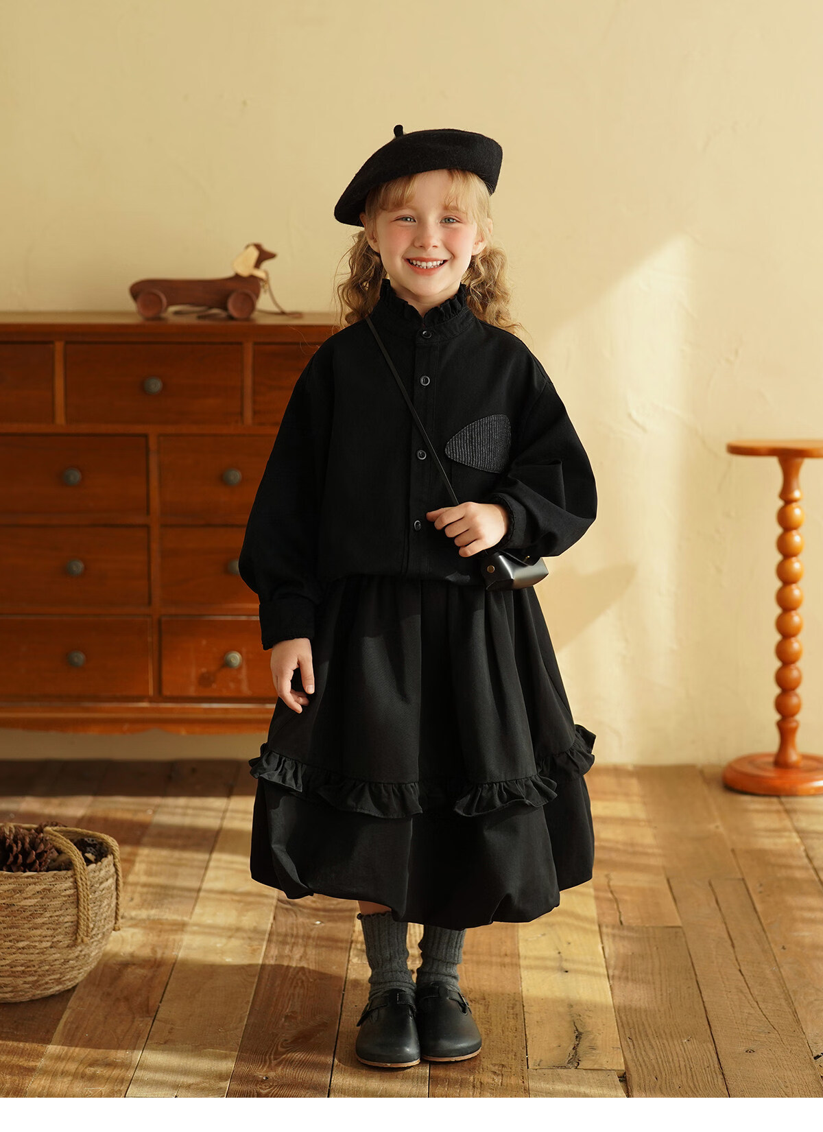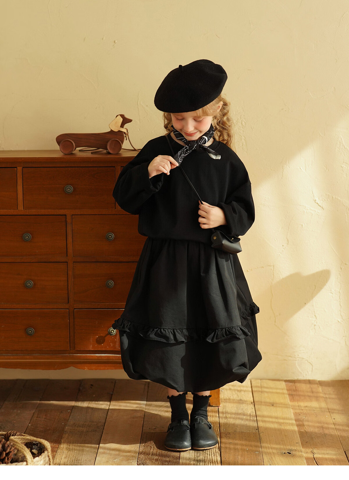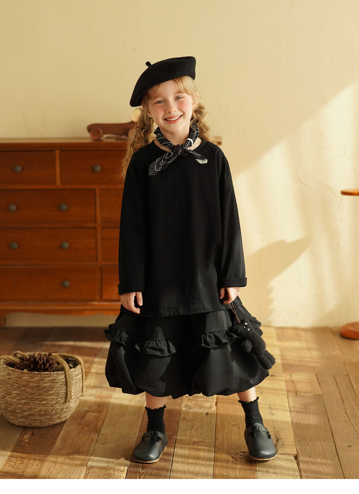 Yantaijia children's clothing girls pure cotton ruffle bud skirt 2026 spring new baby style versatile skirt black 80