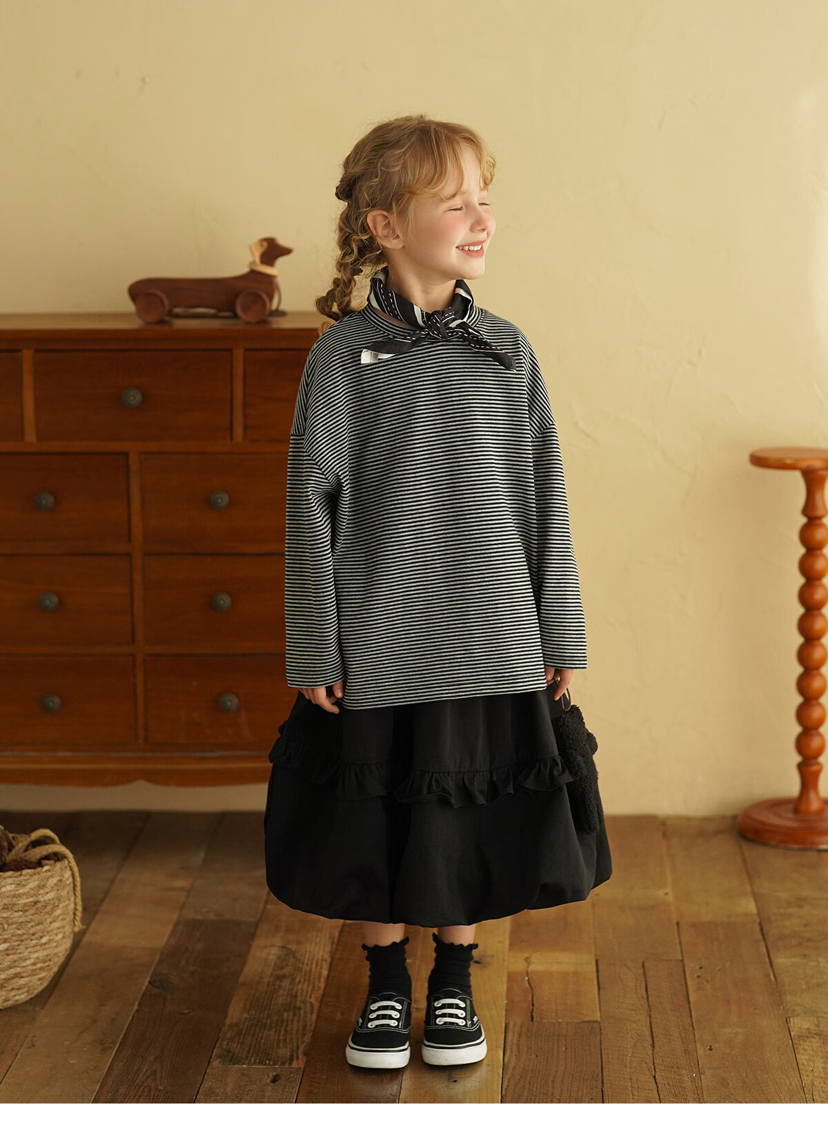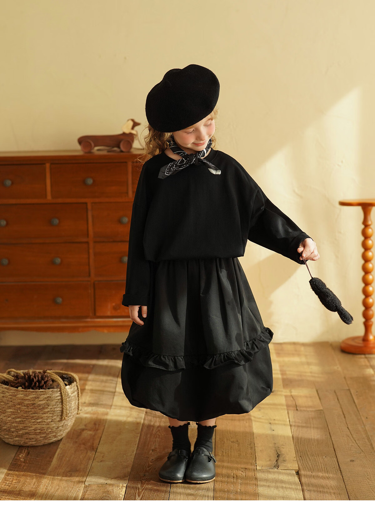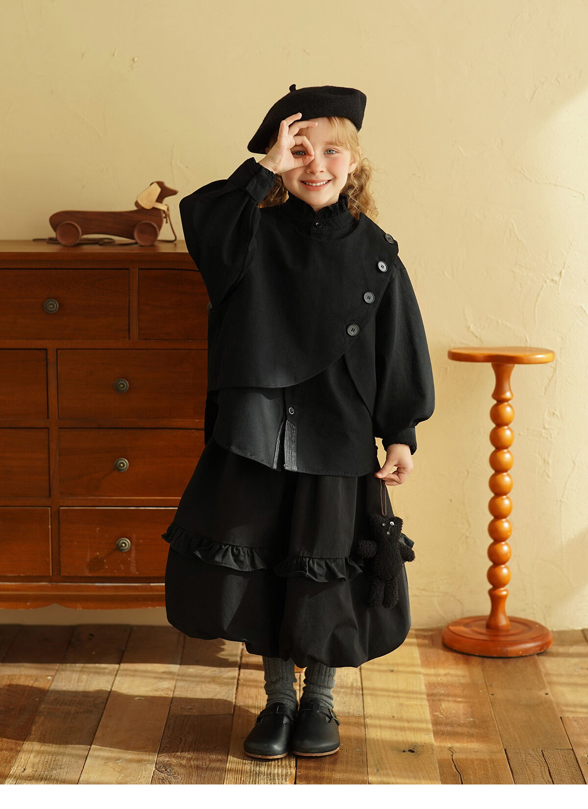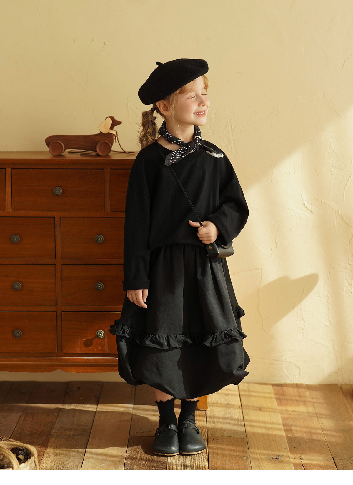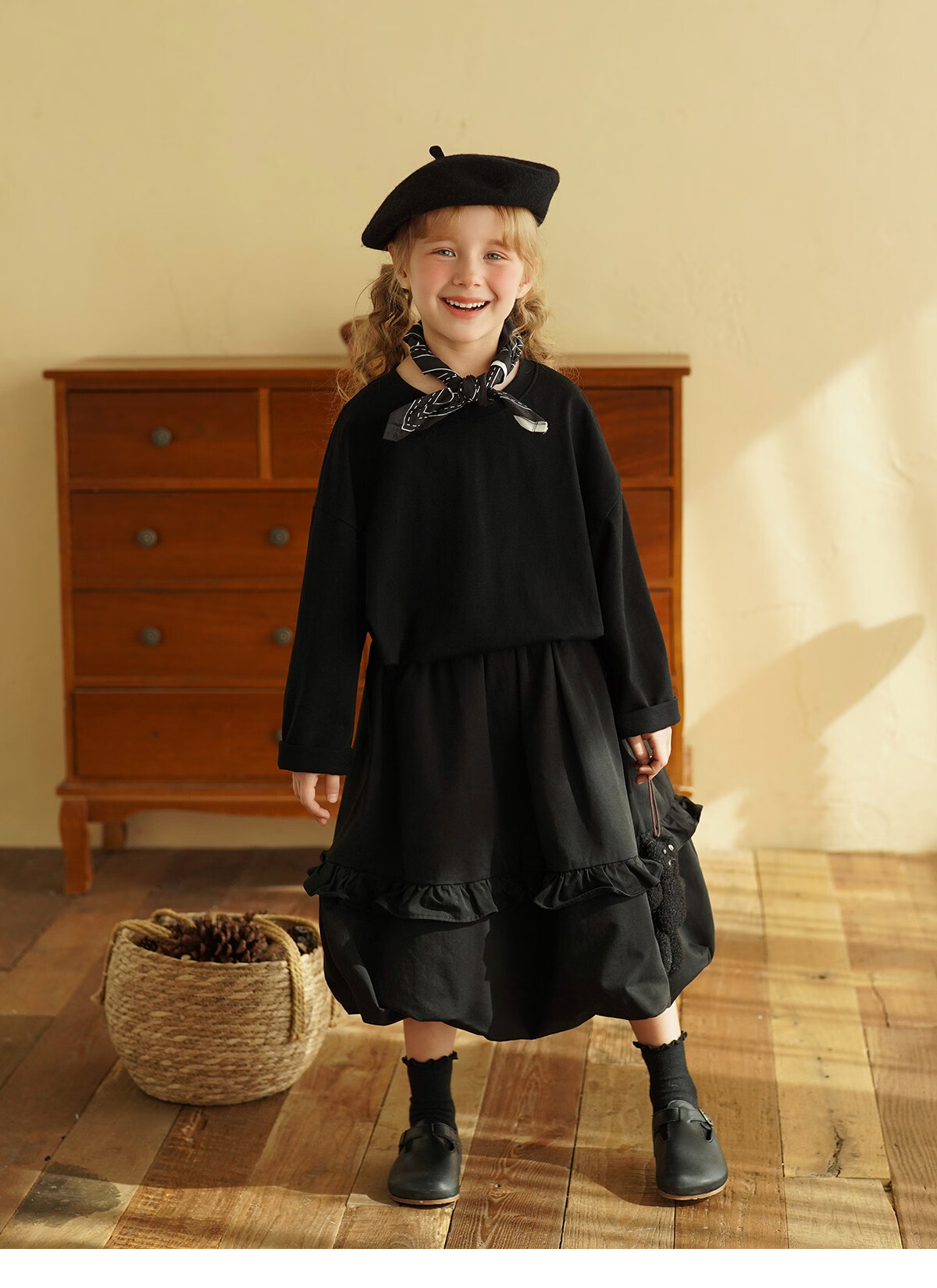 Yantaijia children's clothing girls pure cotton ruffle bud skirt 2026 spring new baby style versatile skirt black 80