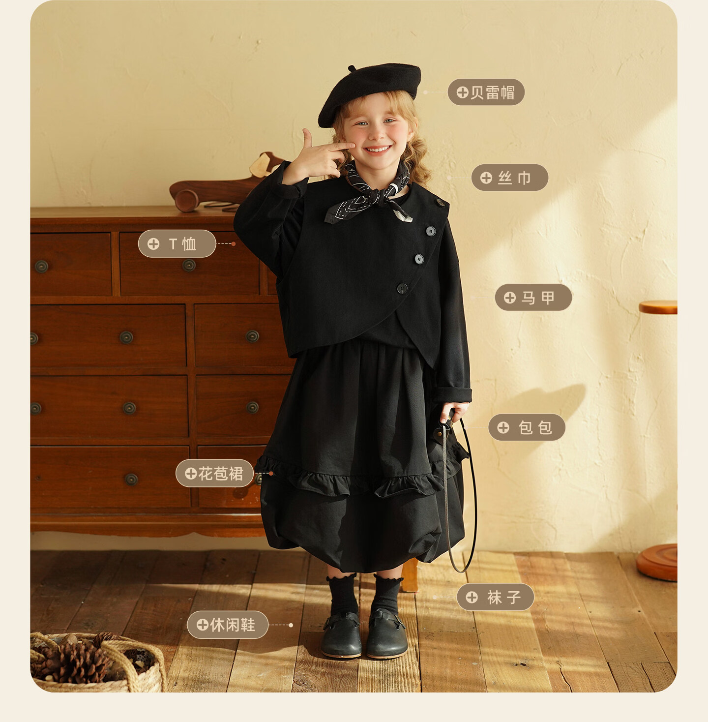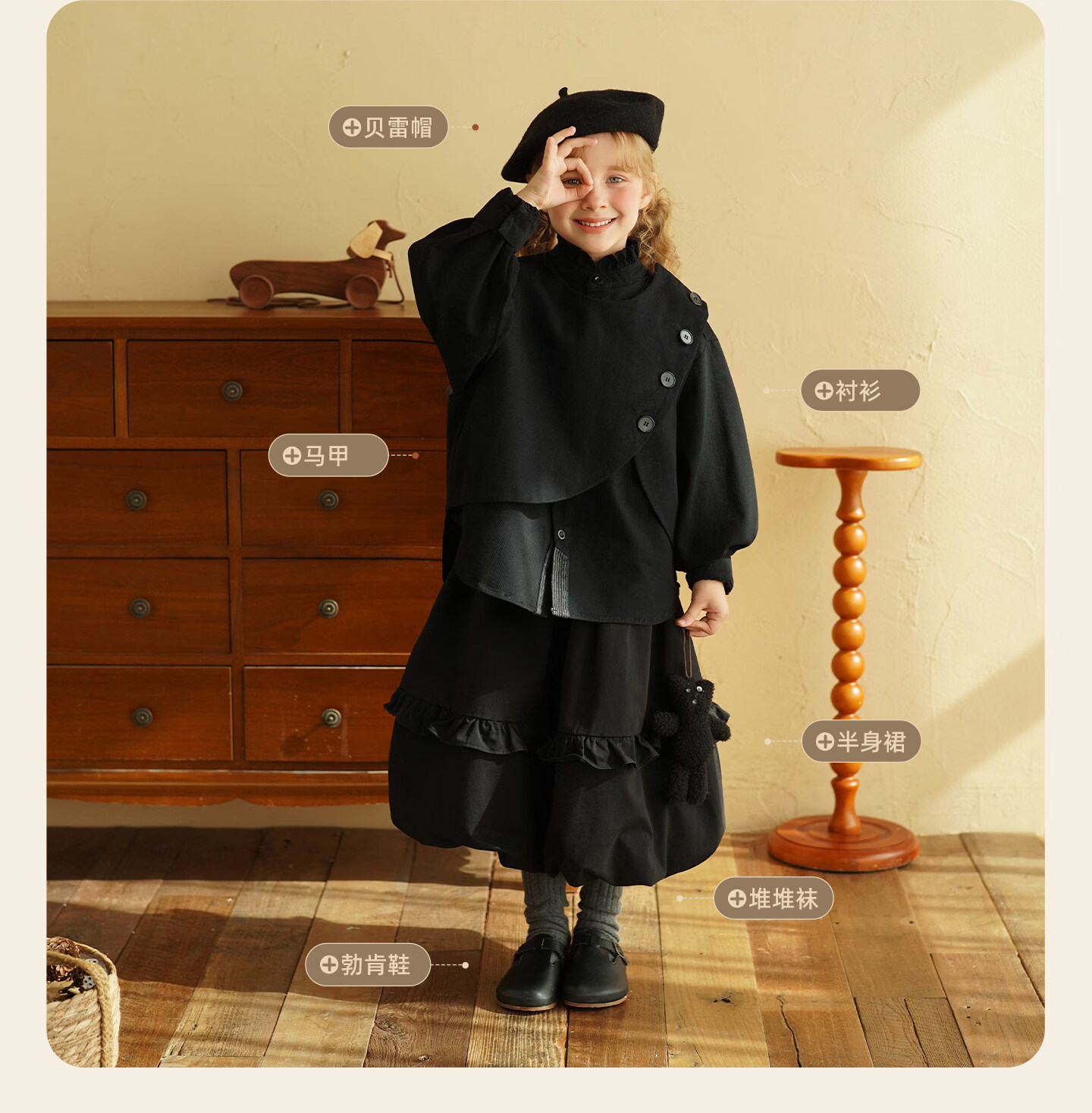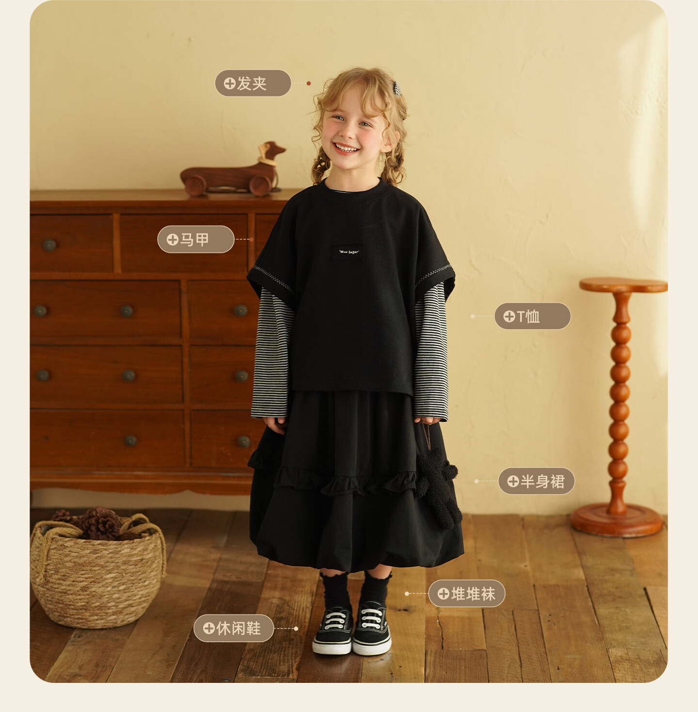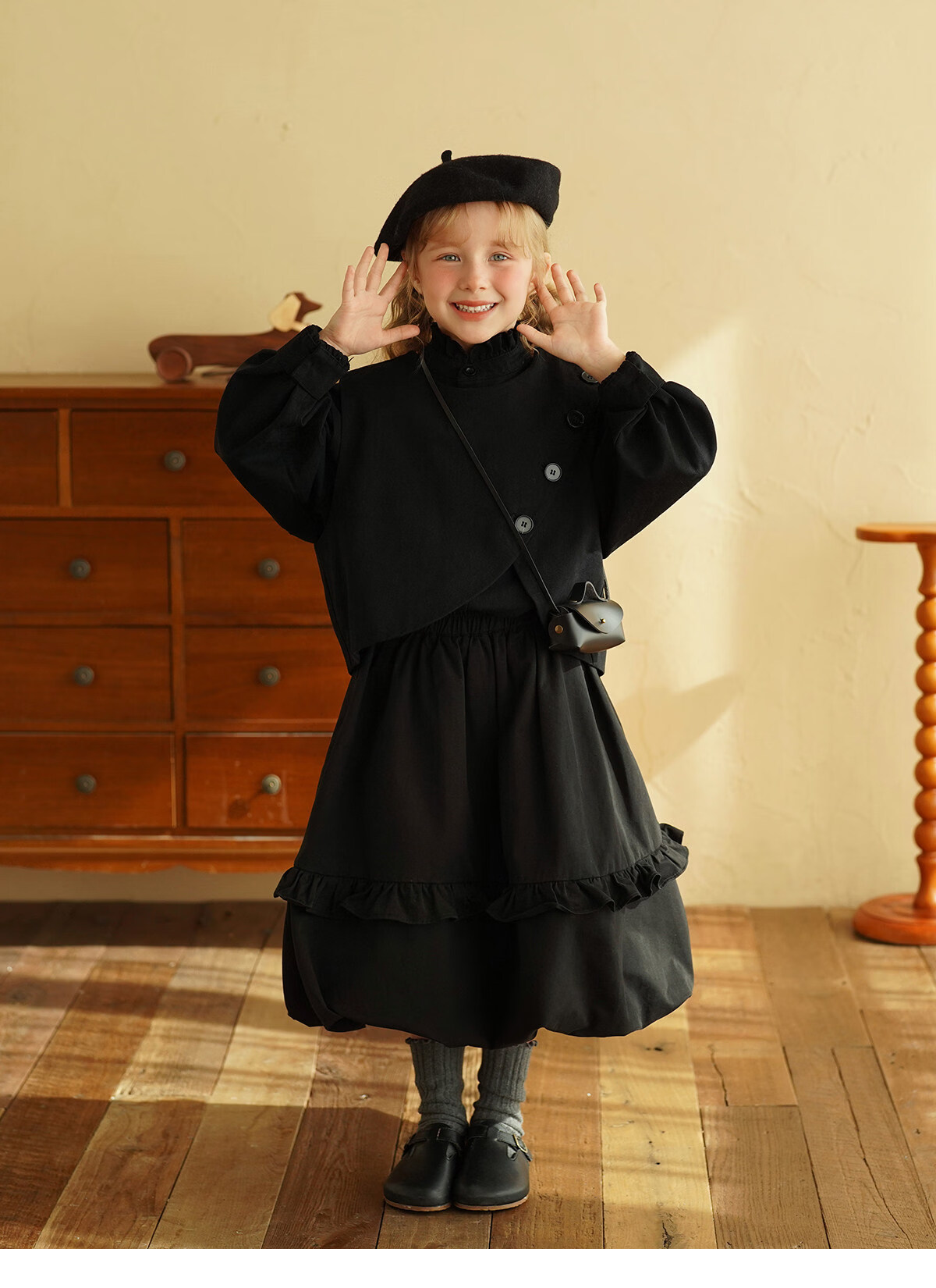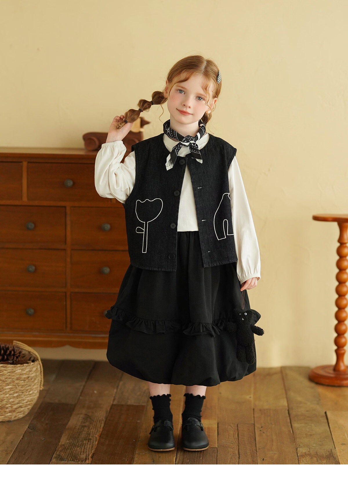 Yantaijia children's clothing girls pure cotton ruffle bud skirt 2026 spring new baby style versatile skirt black 80