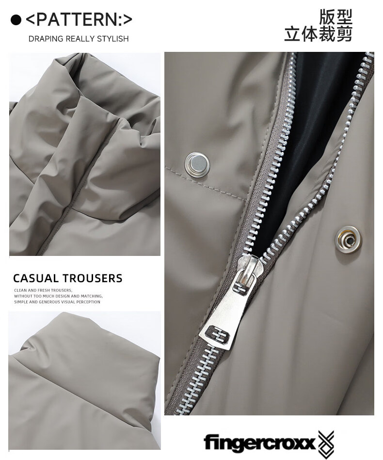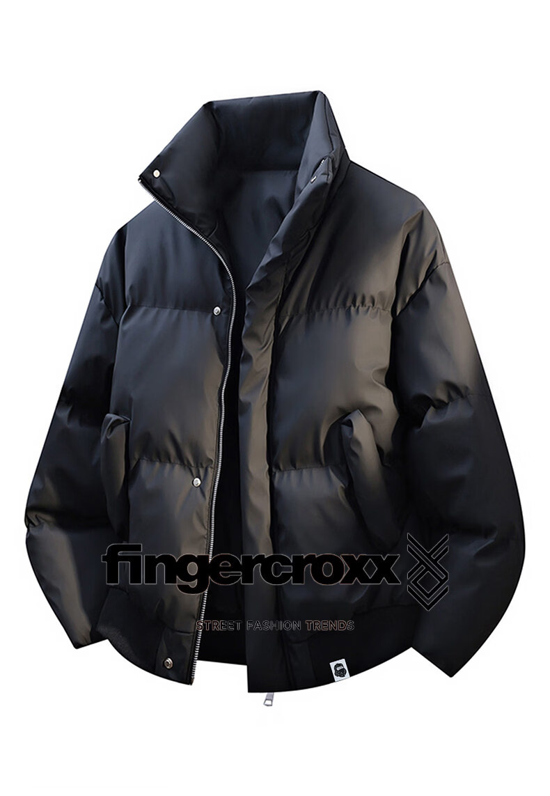 Fingercroxx it American trendy brand stand collar cotton coat men's 2025 winter trendy casual loose versatile coat cotton coat men's black counter same style M (100-130Jin Jin equals 0.5 kg)