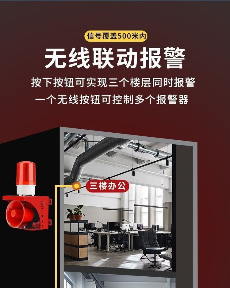 Hydraulic alarm firefighting customized special link high-power industrial sound and light alarm factory inspection wireless remote control linkage fire alarm bell adjustable volume + voice customization + power outage + induction + 1 km remote control customized version