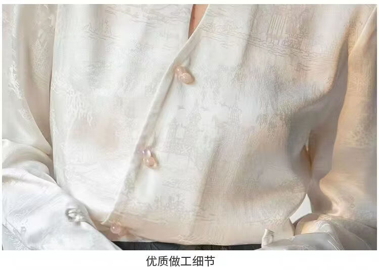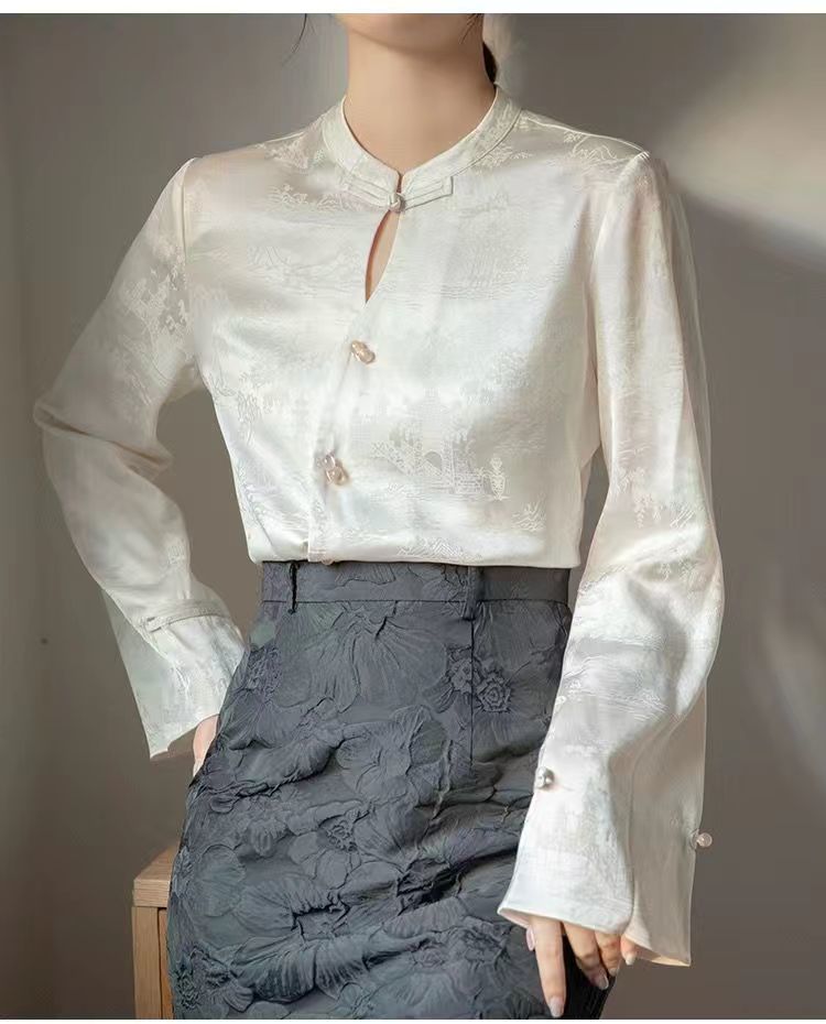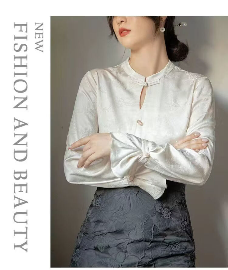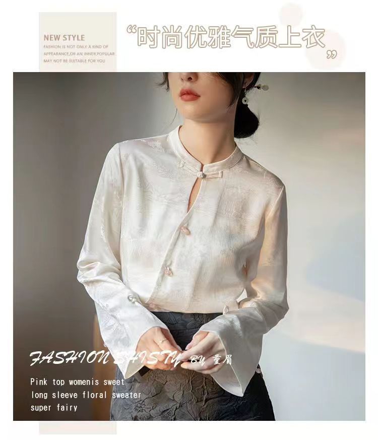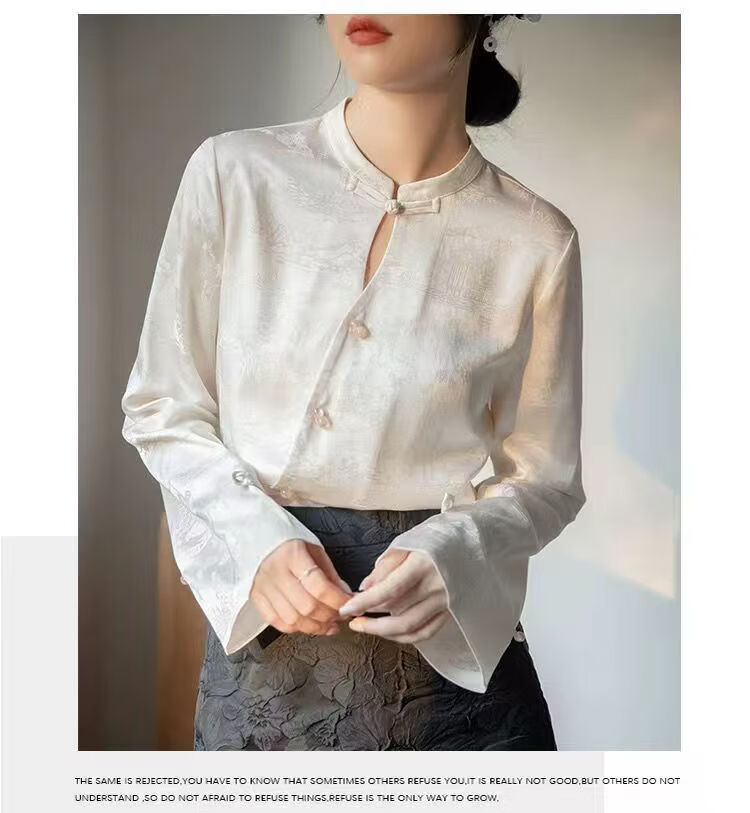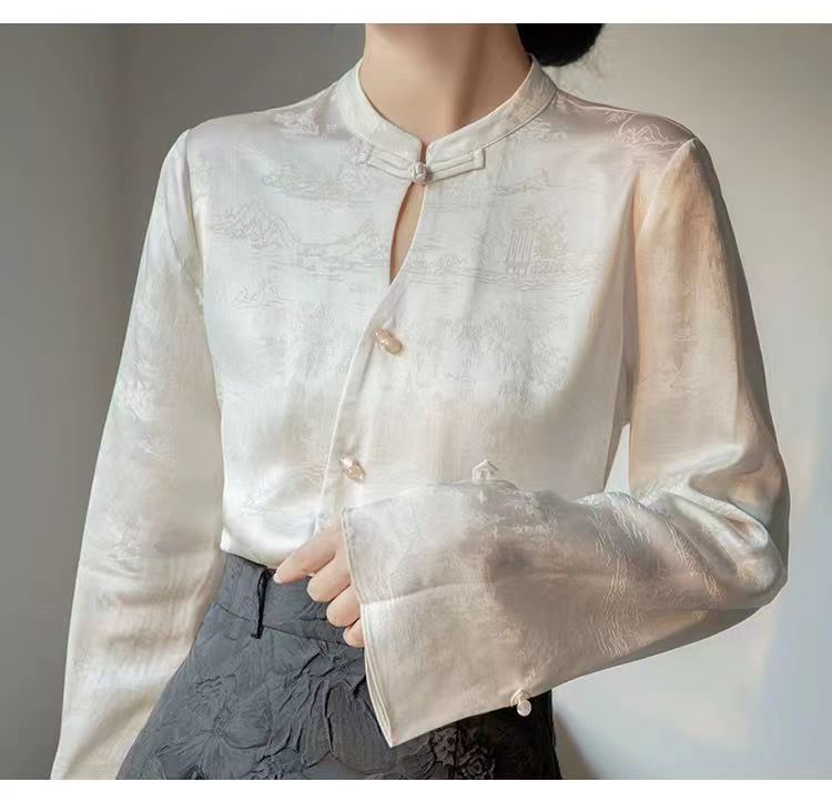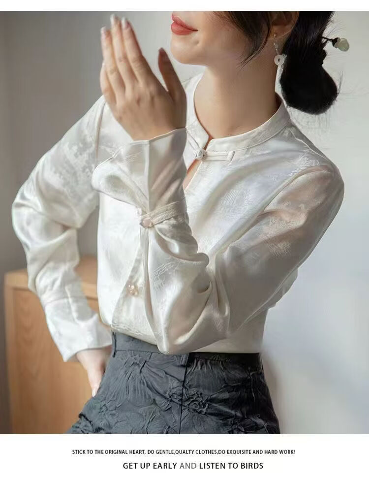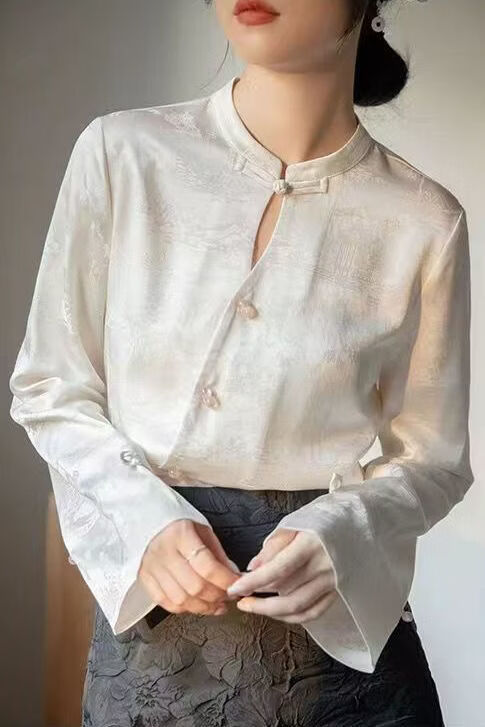 Playboy (PLAYBOY) Chinese button-up shirt 2026 jacquard new spring national style satin design retro long-sleeved top stand collar official flagship apricot color S 94Jin Jin equal to 0.5 kg or less