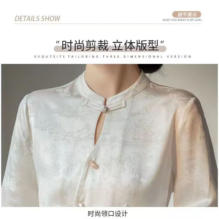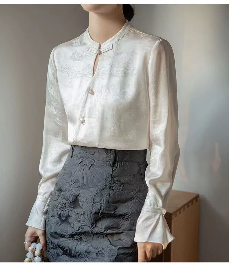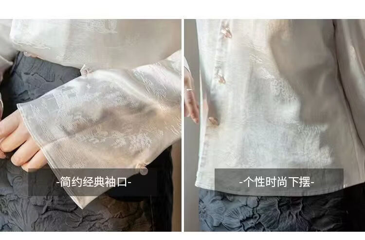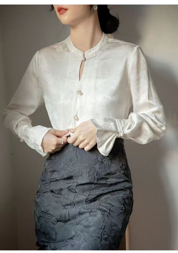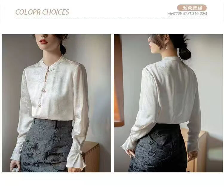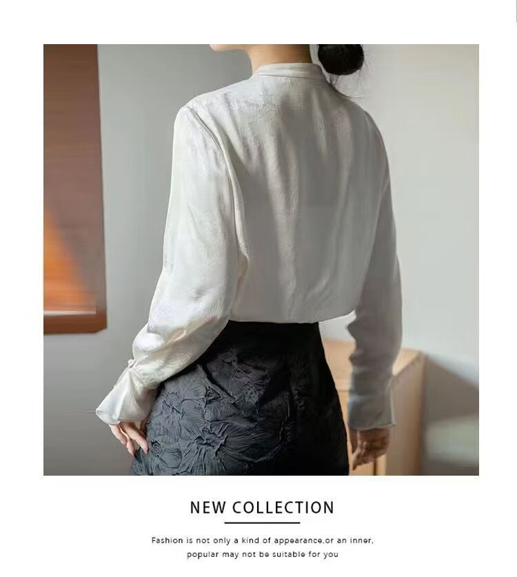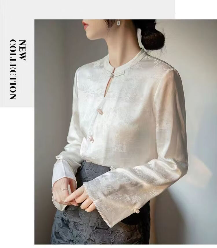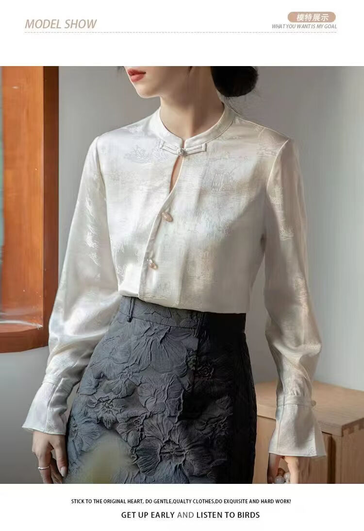 Playboy (PLAYBOY) Chinese button-up shirt 2026 jacquard new spring national style satin design retro long-sleeved top stand collar official flagship apricot color S 94Jin Jin equal to 0.5 kg or less