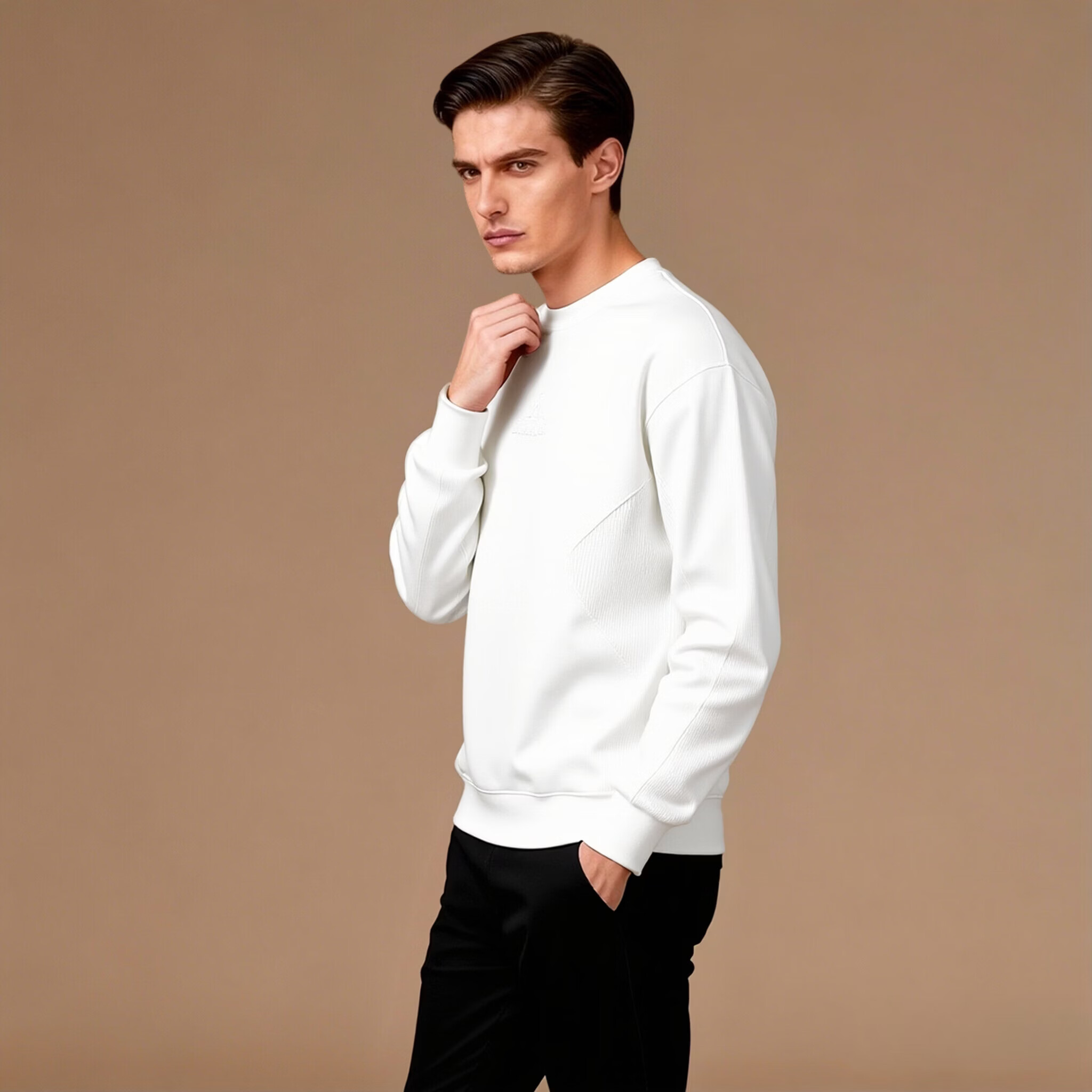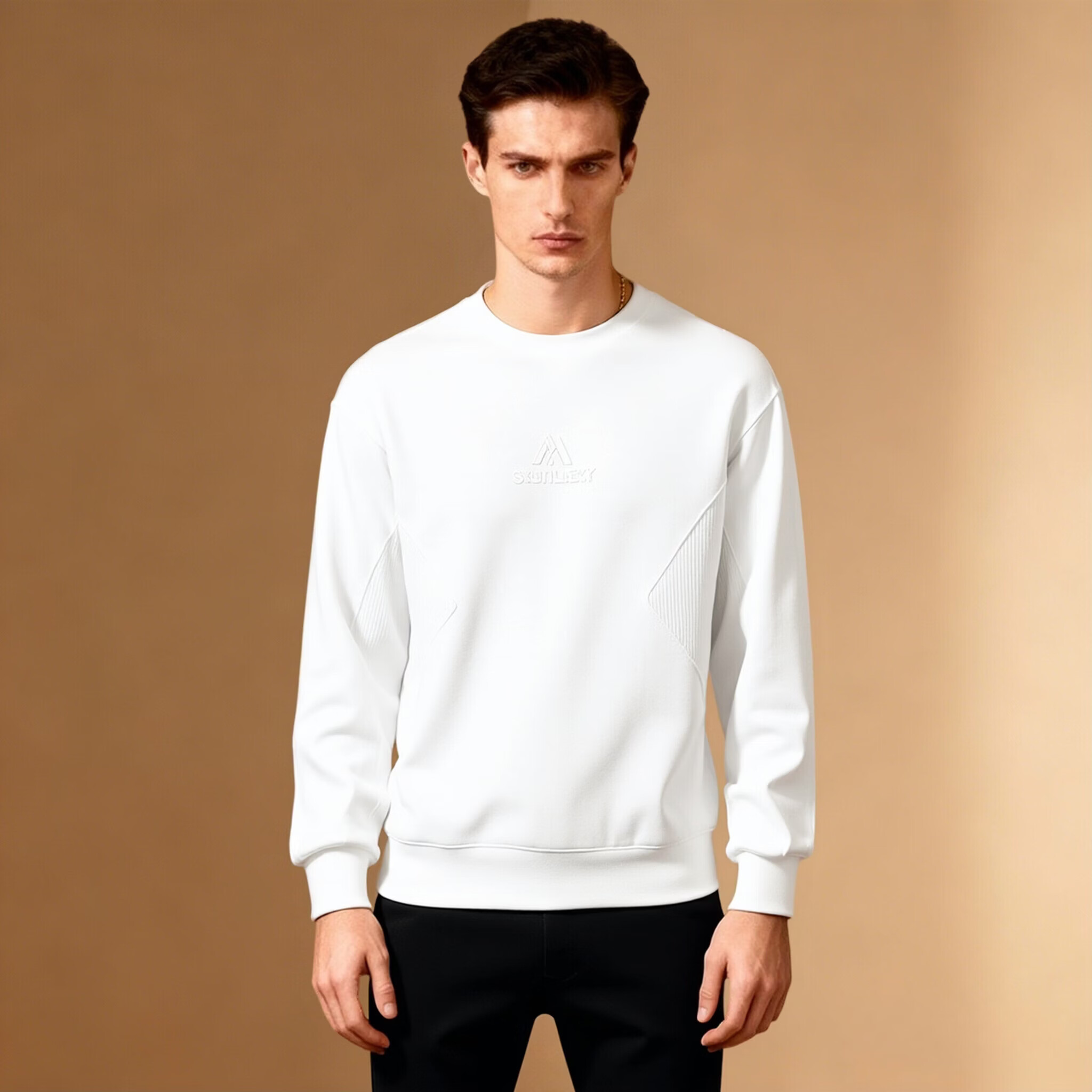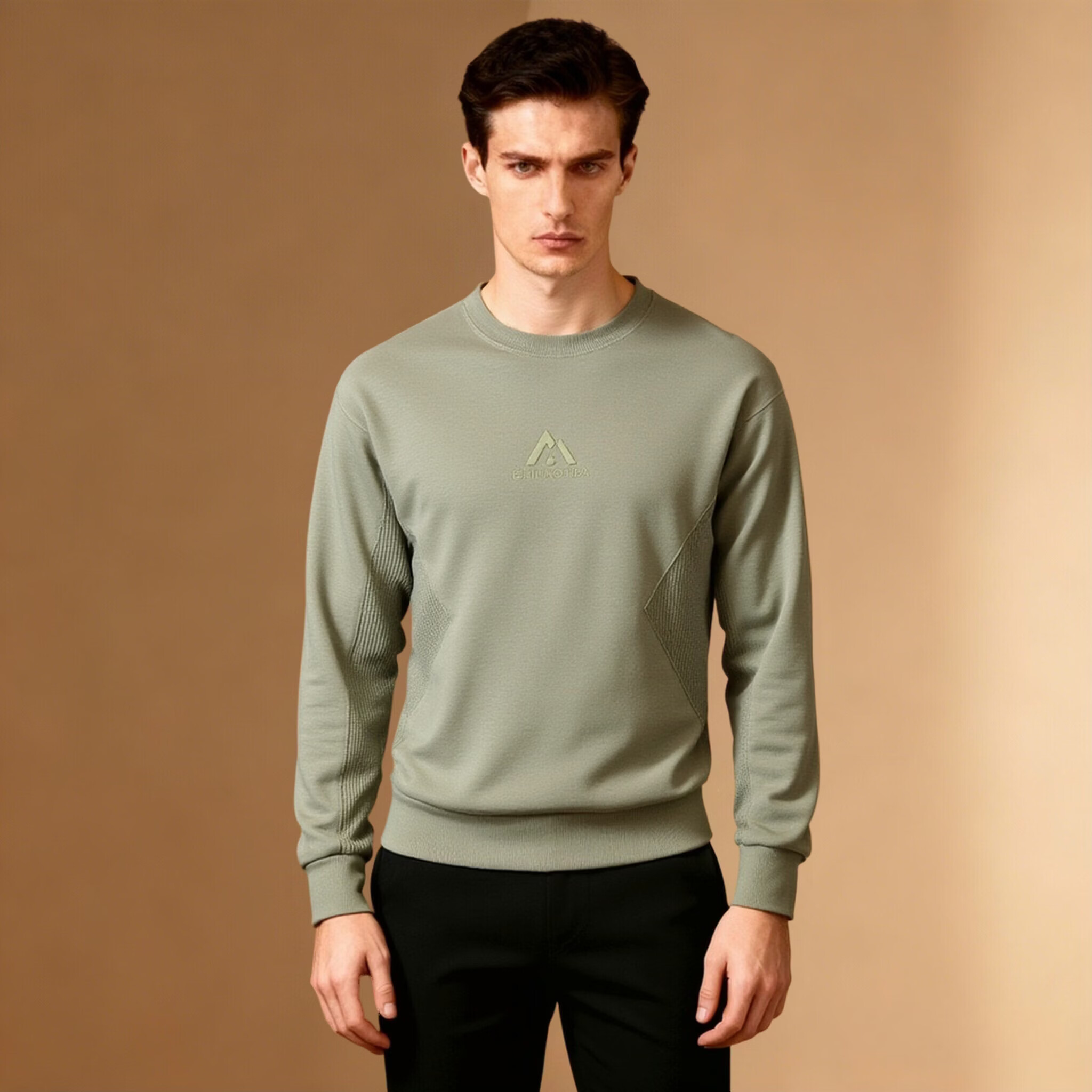 Mafanfu high-end trendy brand round neck sweatshirt for men 2025 new Korean version loose long-sleeved T-shirt knitted splicing bottoming shirt autumn coat green 2XL 145-160Jin Jin equals 0.5 kg