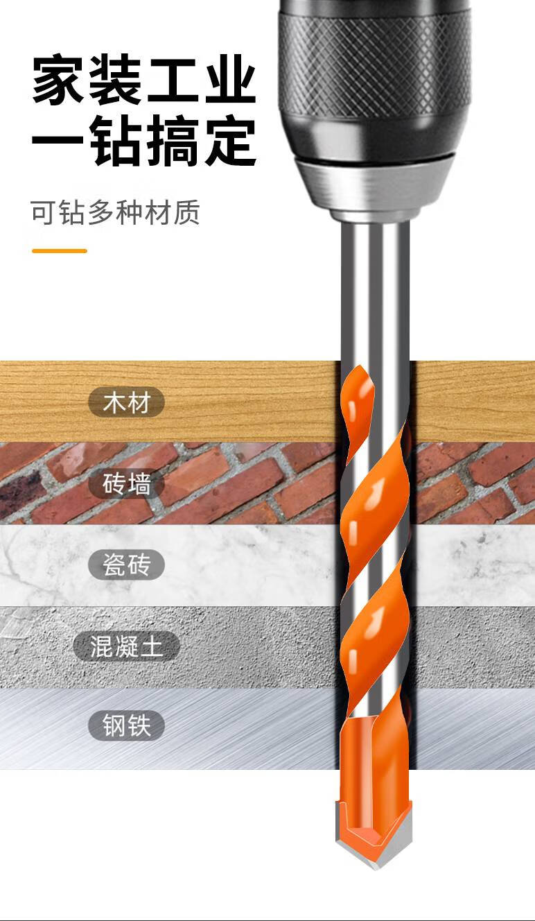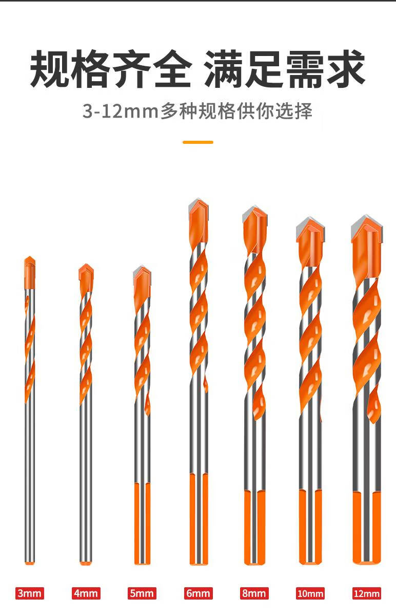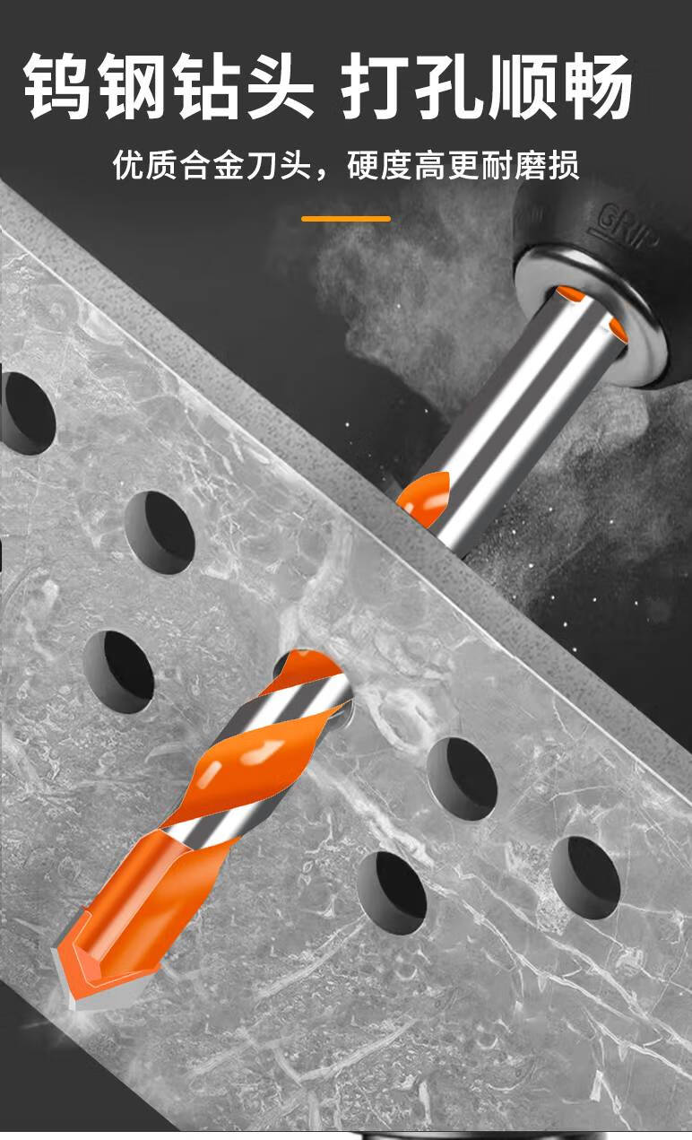 Junmo Tungsten Steel Overlord Drill Bit Concrete Glass Twist Drill Opening Drill Rigid Alloy Head Tile Punch Super Hard Overlord Drill-Orange 1 Pack