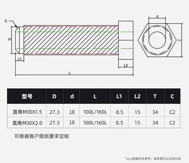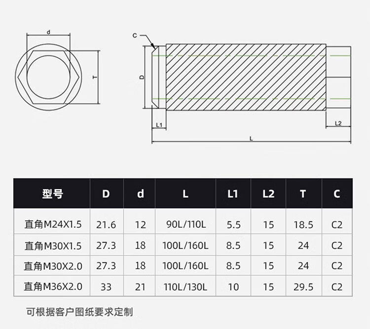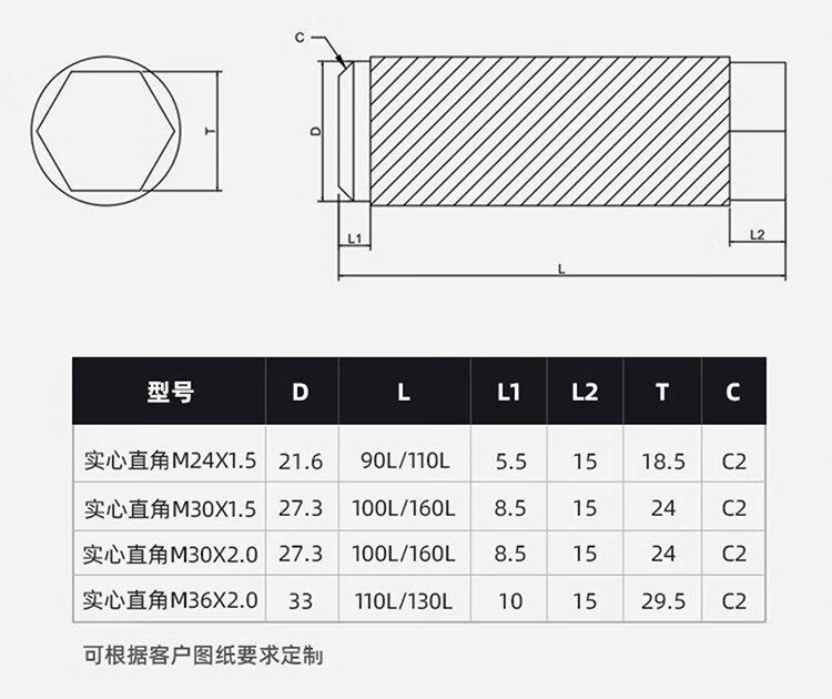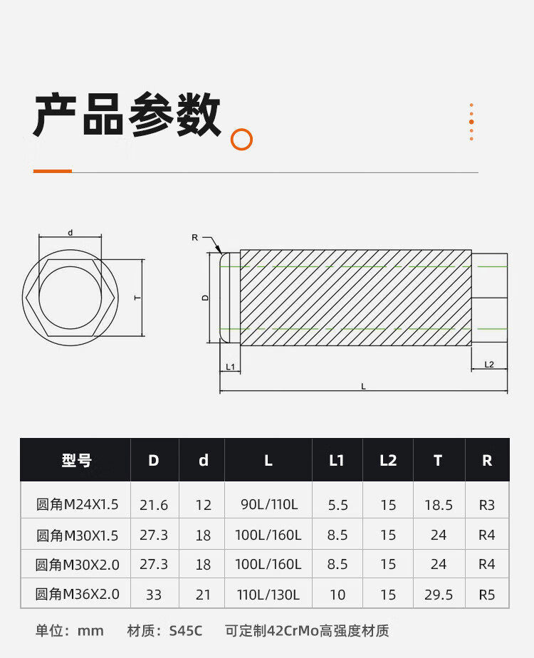Machine tool adjustment screws, hollow anchor bolts, high-strength anti-rust robot truss leveling, machining center leveling, M24*2*100