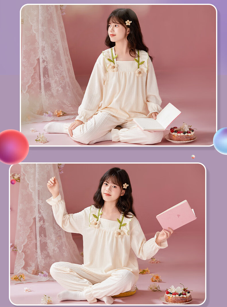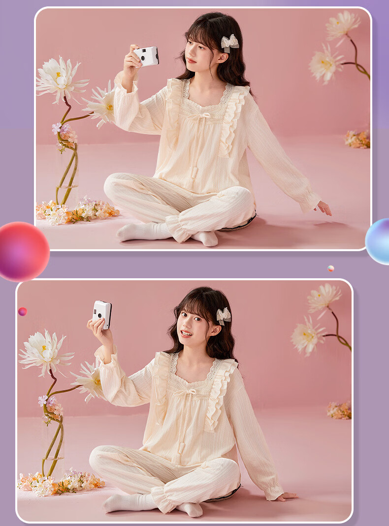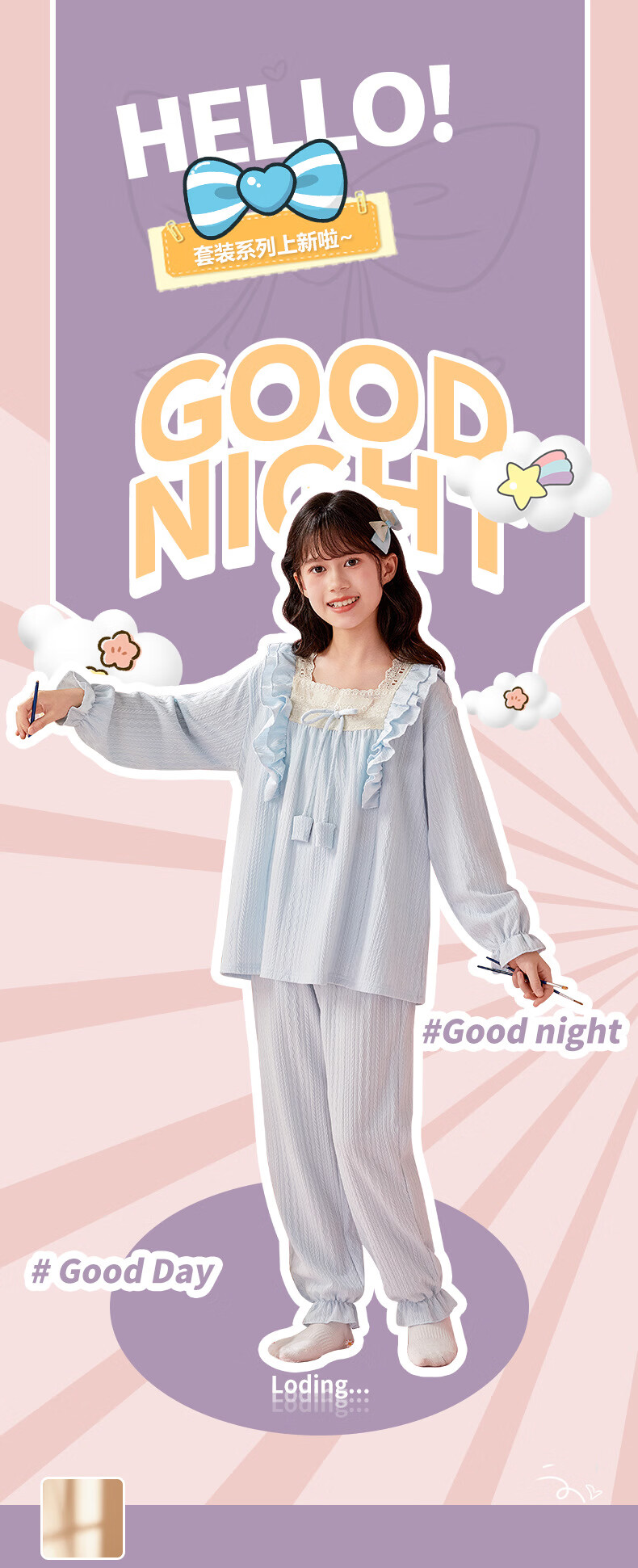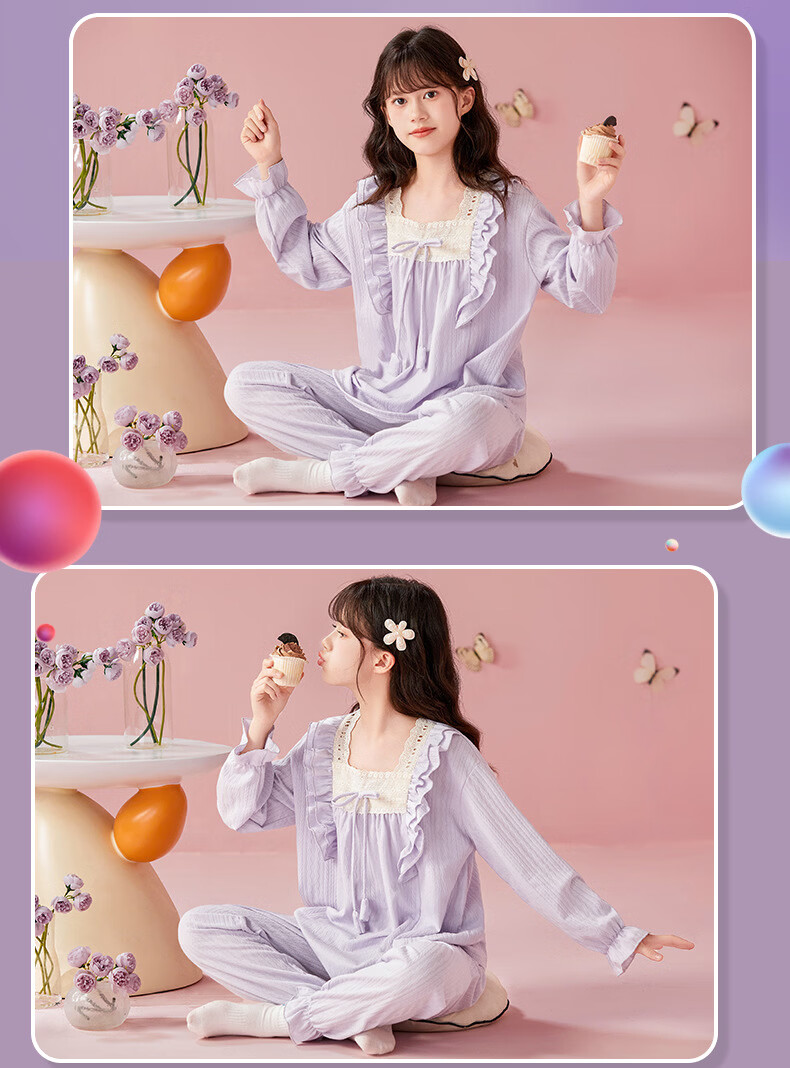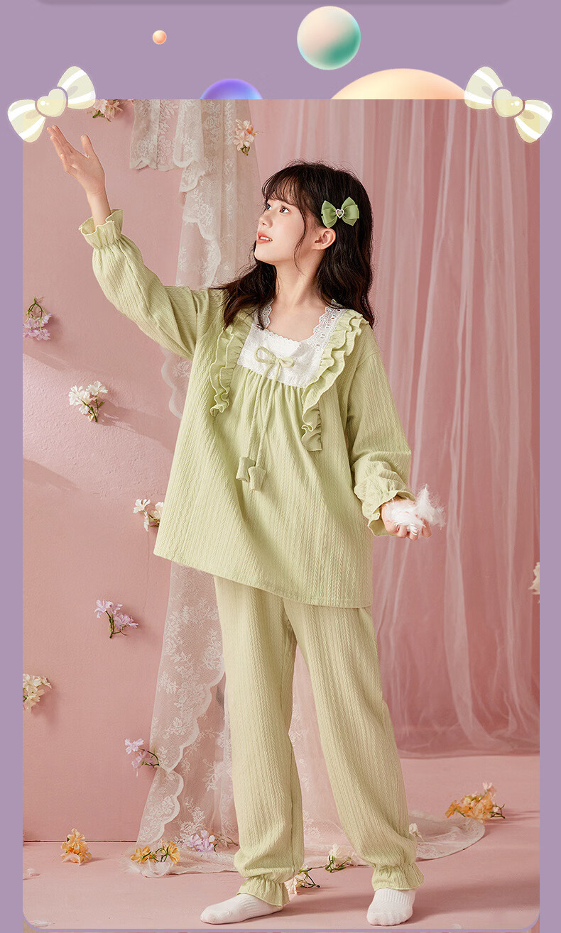 MiiOW children's pajamas girls pure cotton long-sleeved spring, autumn and winter palace-style big children's and girls' home wear suits with chest pads 44300# ice blue 170 size 12 (recommended height 115-125CM. Weight 50Jin Jin is equal to about 0.5 kg