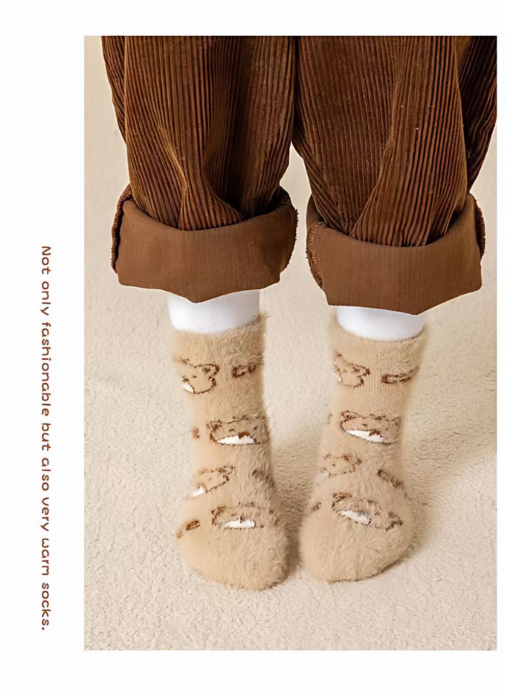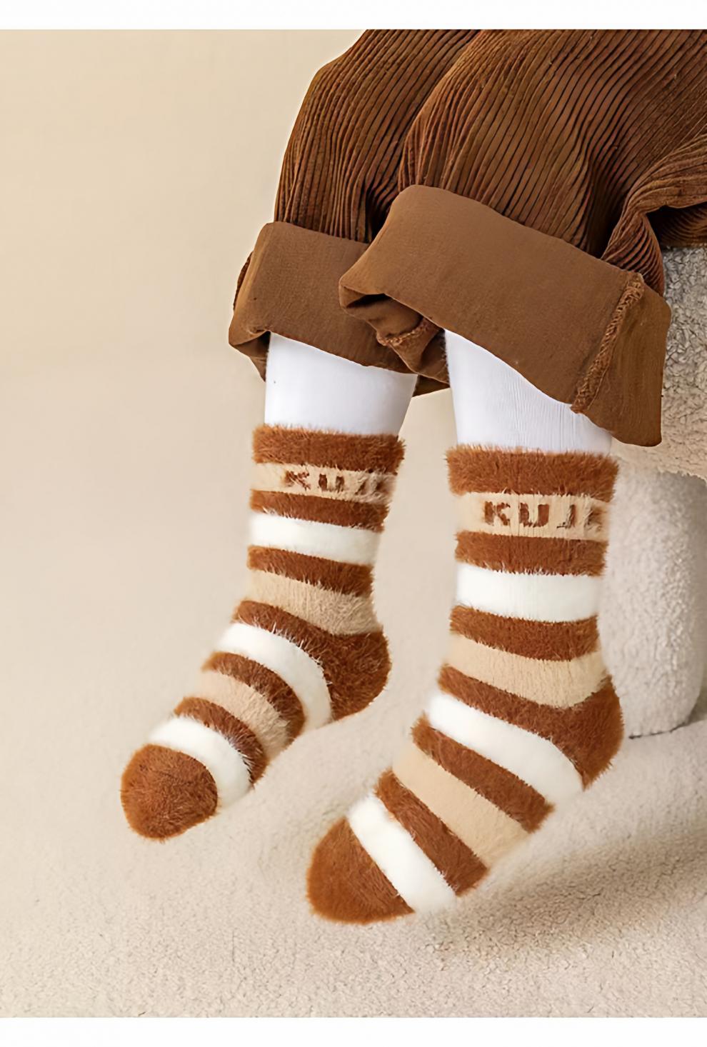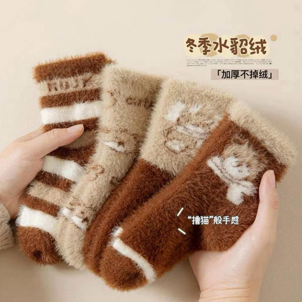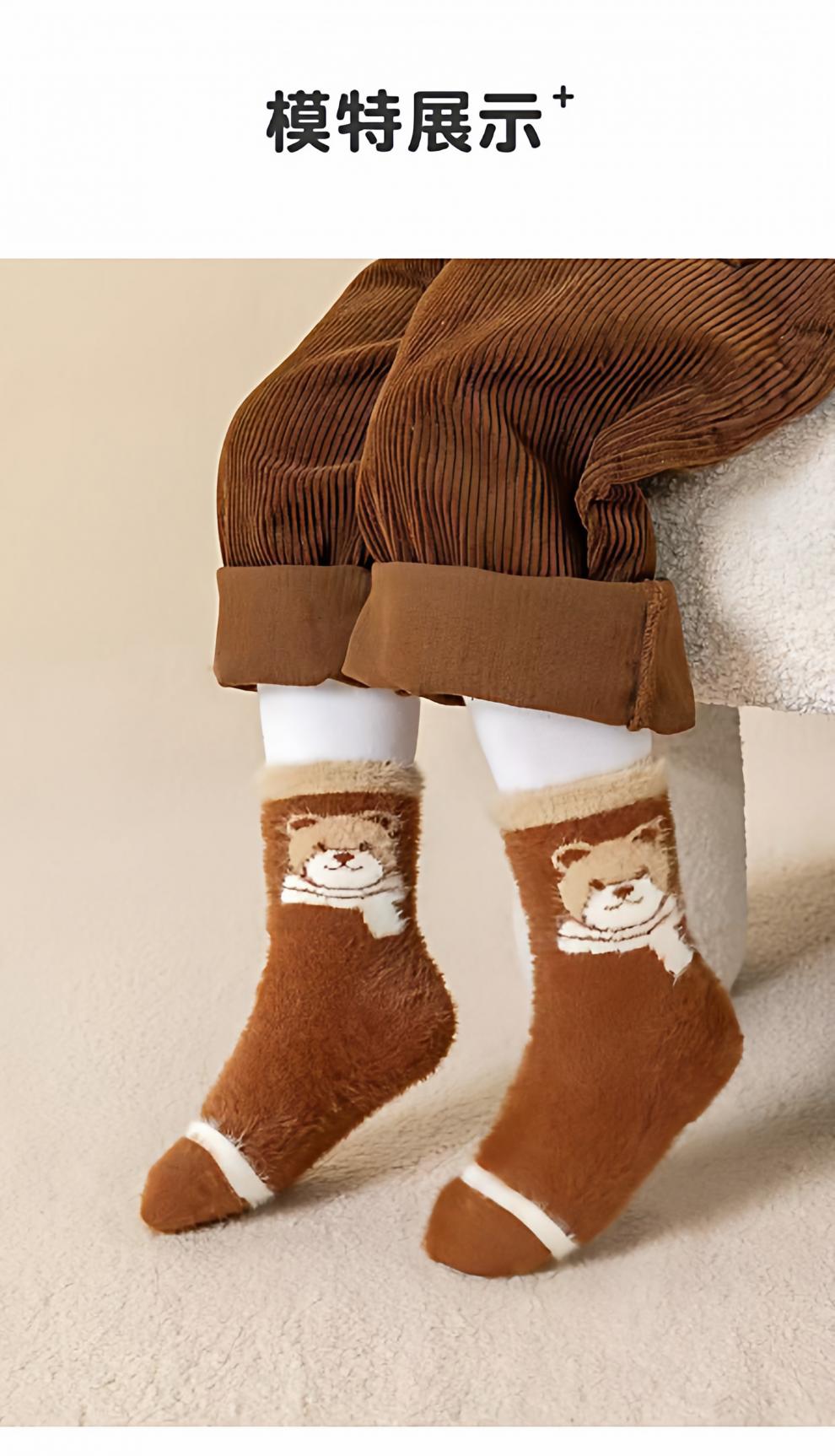 MiiOW autumn and winter children's thickened mink socks, winter style, boys and girls, extra thick, warm and velvet mid-tube baby's cold protection, velvet pink princess socks, 5 pairs, one size fits all, S recommended shoe size 20-241-3 years old