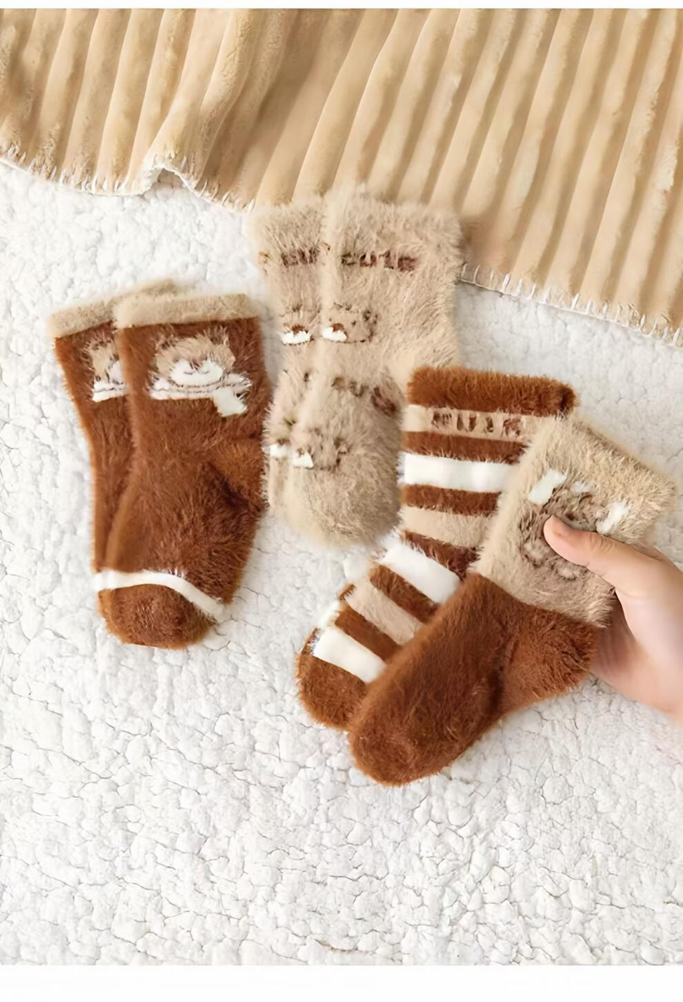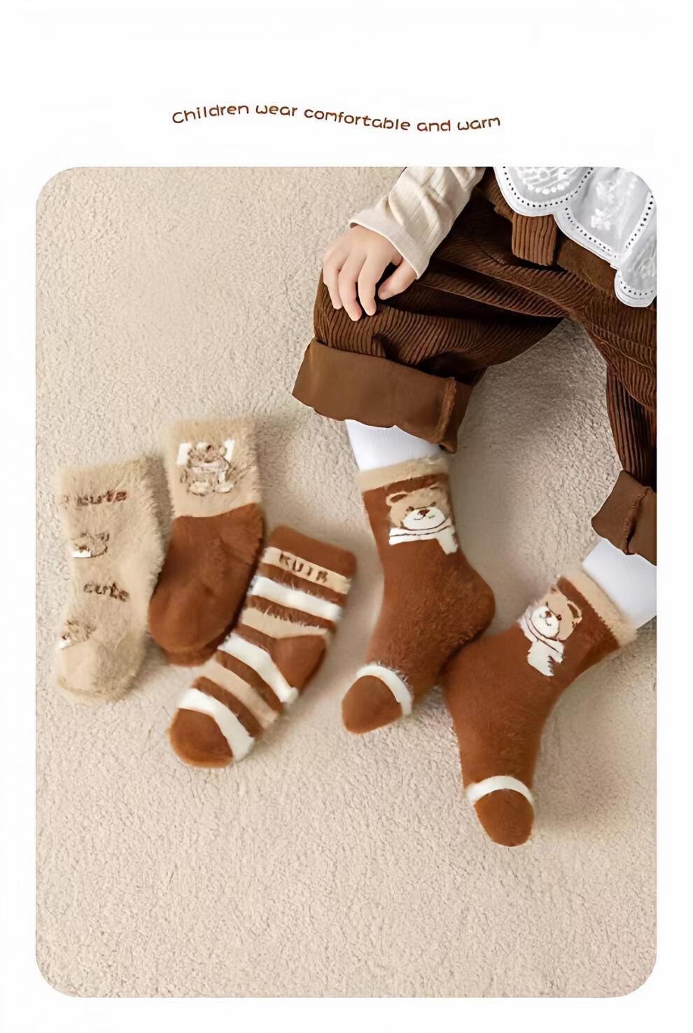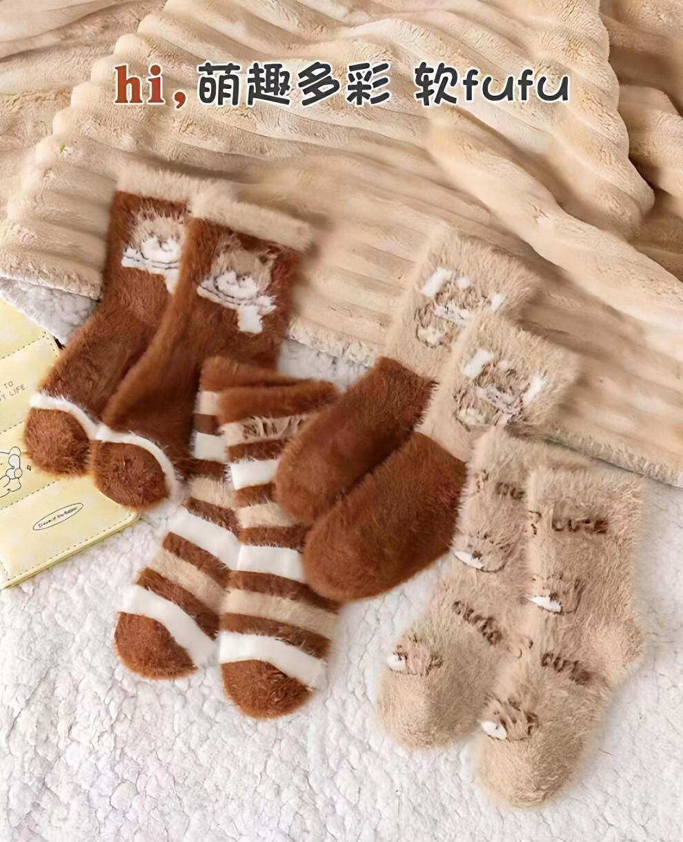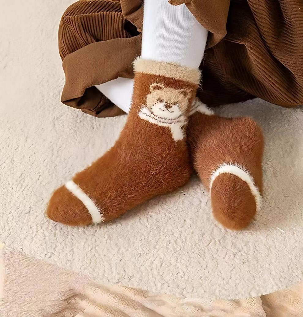 MiiOW autumn and winter children's thickened mink socks, winter style, boys and girls, extra thick, warm and velvet mid-tube baby's cold protection, velvet pink princess socks, 5 pairs, one size fits all, S recommended shoe size 20-241-3 years old