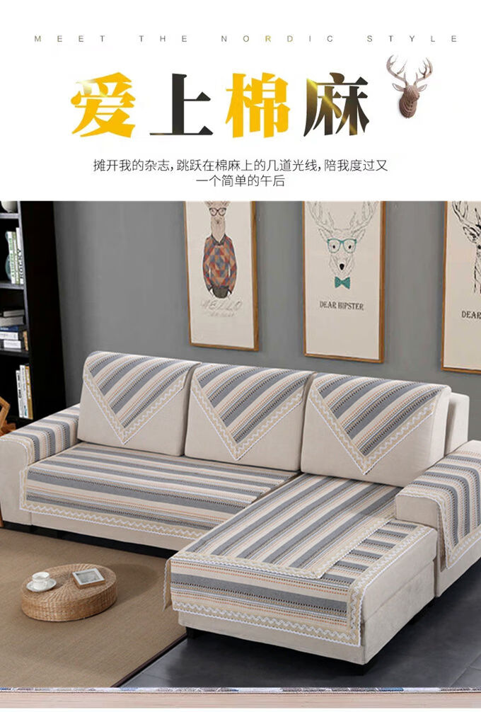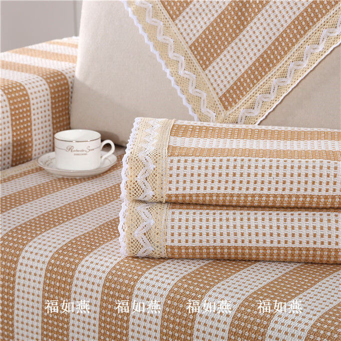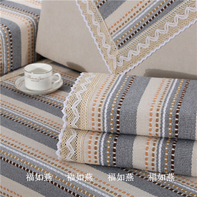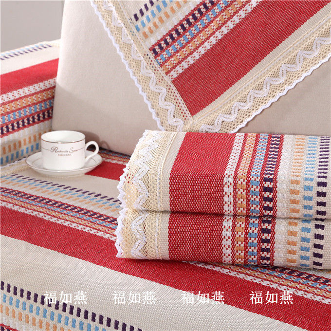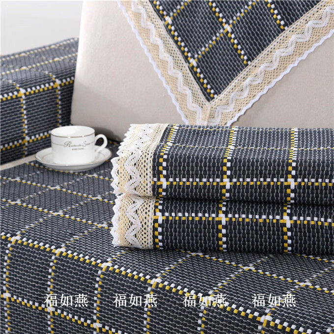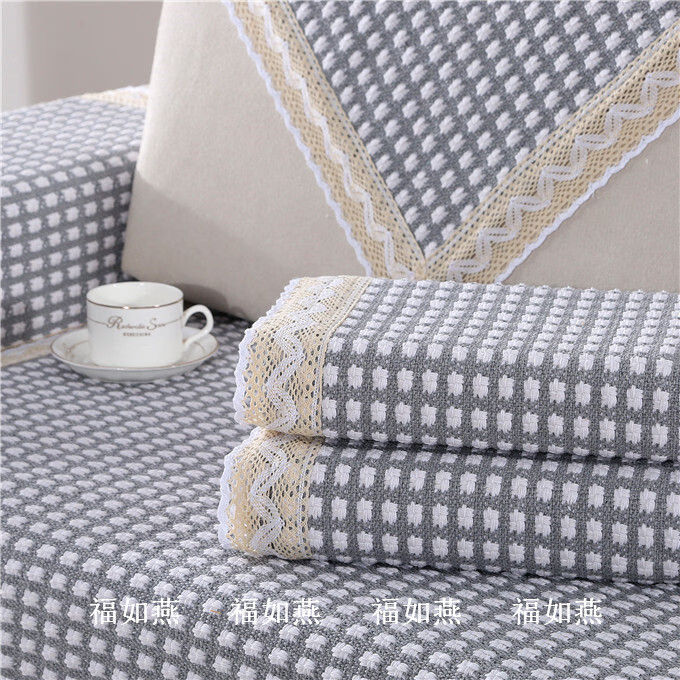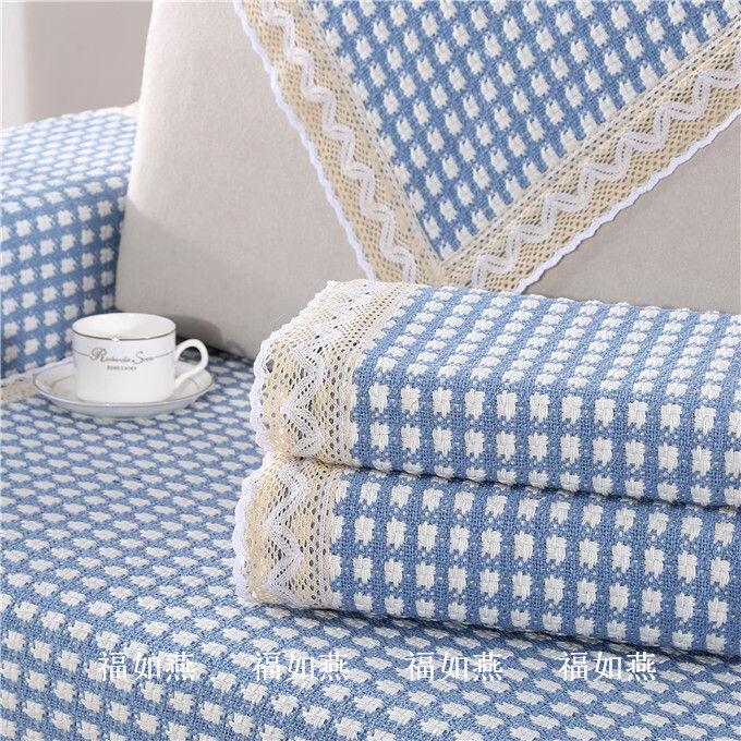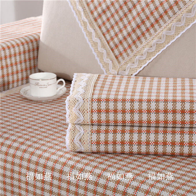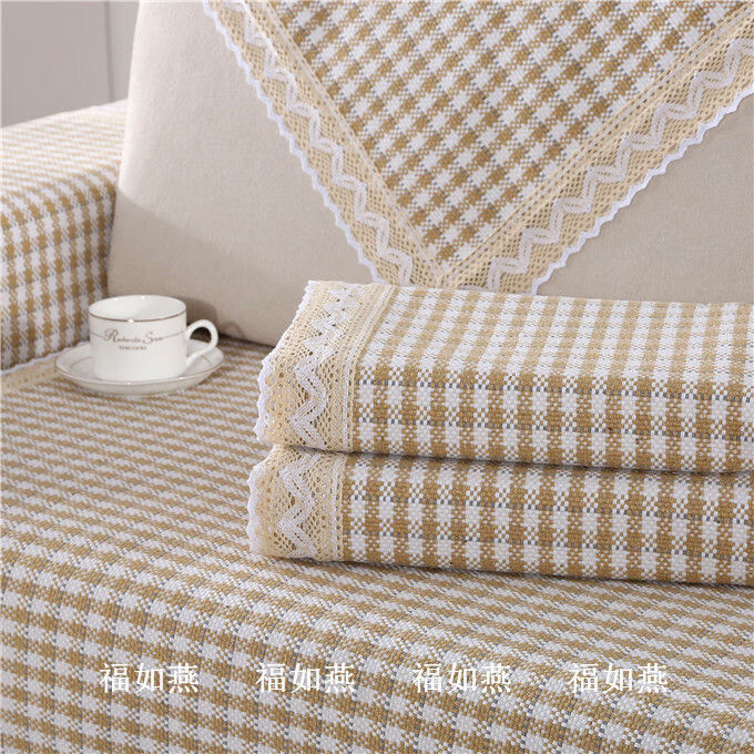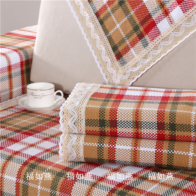 Fantasy Sofa Cushion Covered with Coarse Cloth Cushion Colored Cotton Small Grid 90x270cm