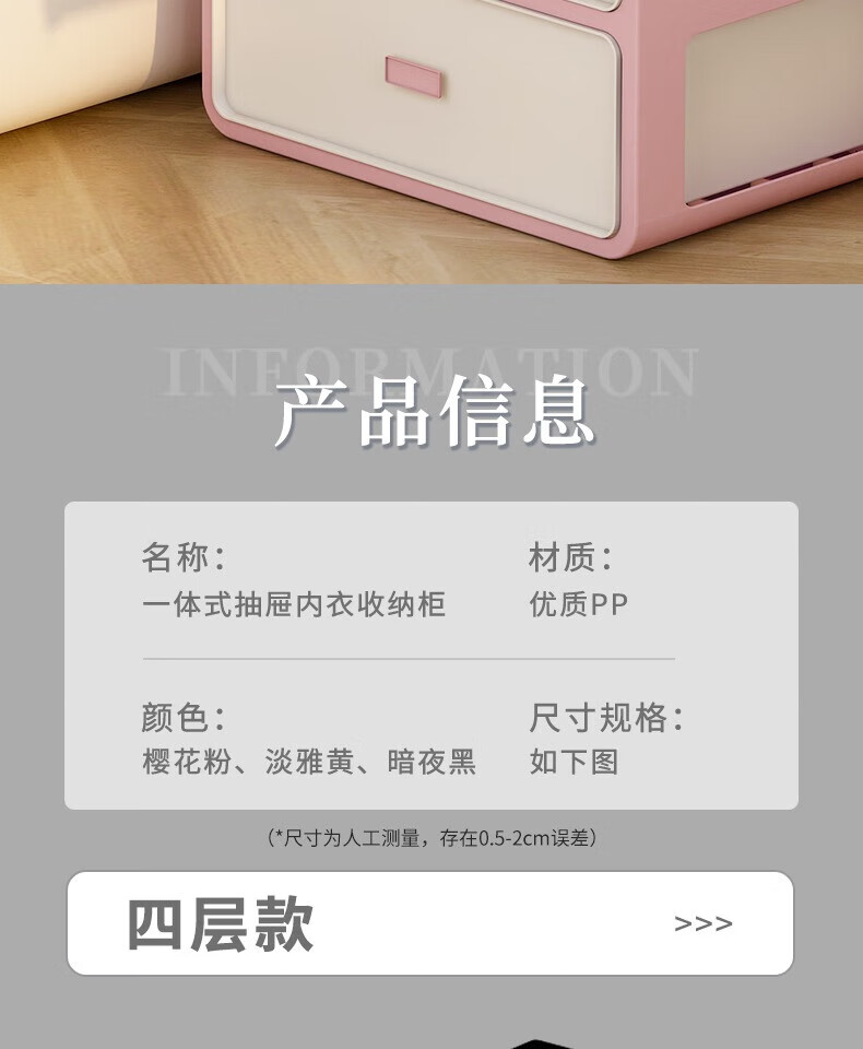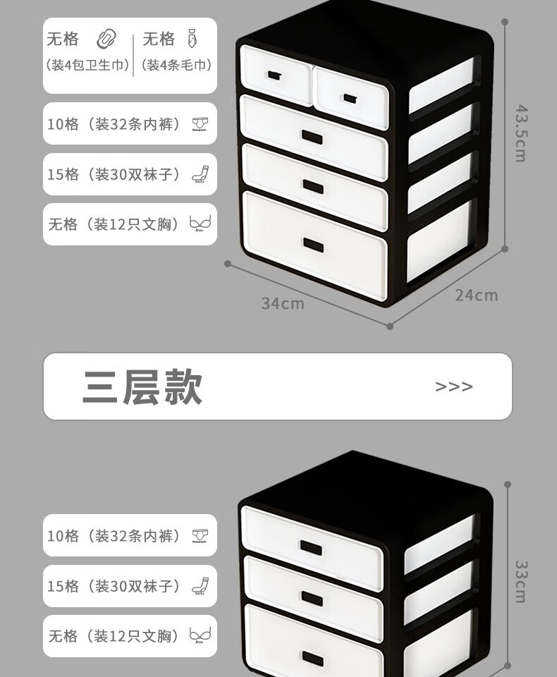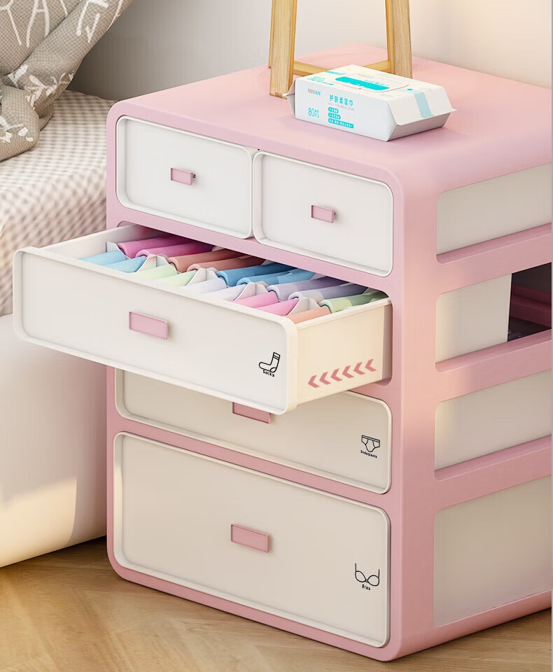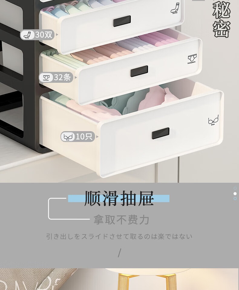 Underwear Storage Box Socks Underwear Drawer Compartment 3-in-1 Dormitory Home Artifact Wardrobe Underwear Free Classification Sticker Cream Yellow Three-Layer 3-in-1