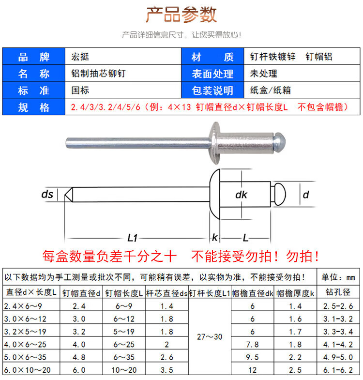 XMSJ core blind rivets open type pull rivets round head core blind aluminum rivets M32M4M5M6x135x 2 points 4x61000 pieces