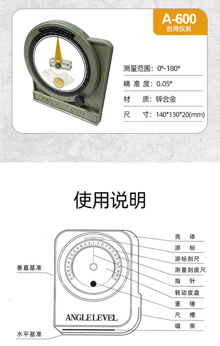Pupan Yichen ECE level angle meter magnetic angle gauge level ruler A100 high-precision angle ruler ABS material angle Taiwan Yichen A600 accuracy 0.05 degrees material zinc alloy