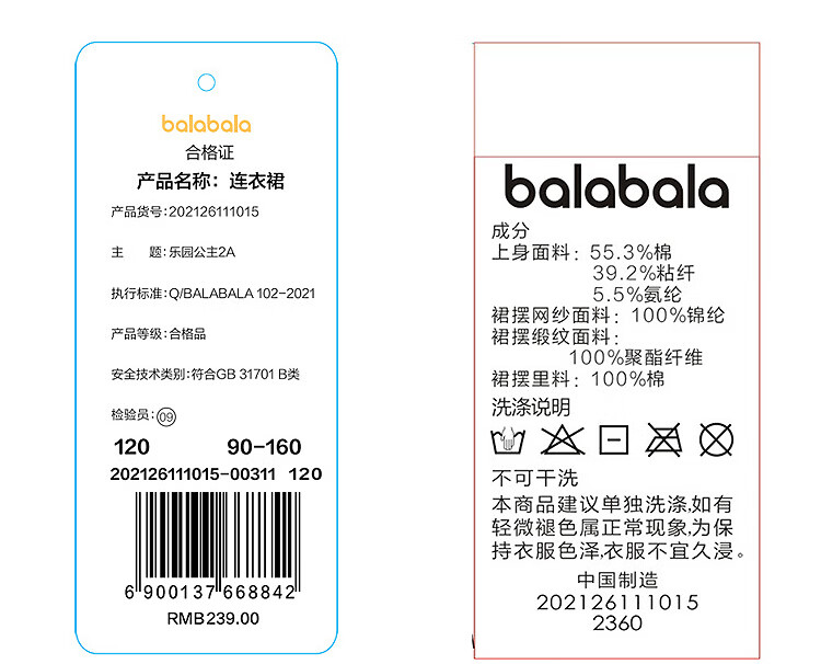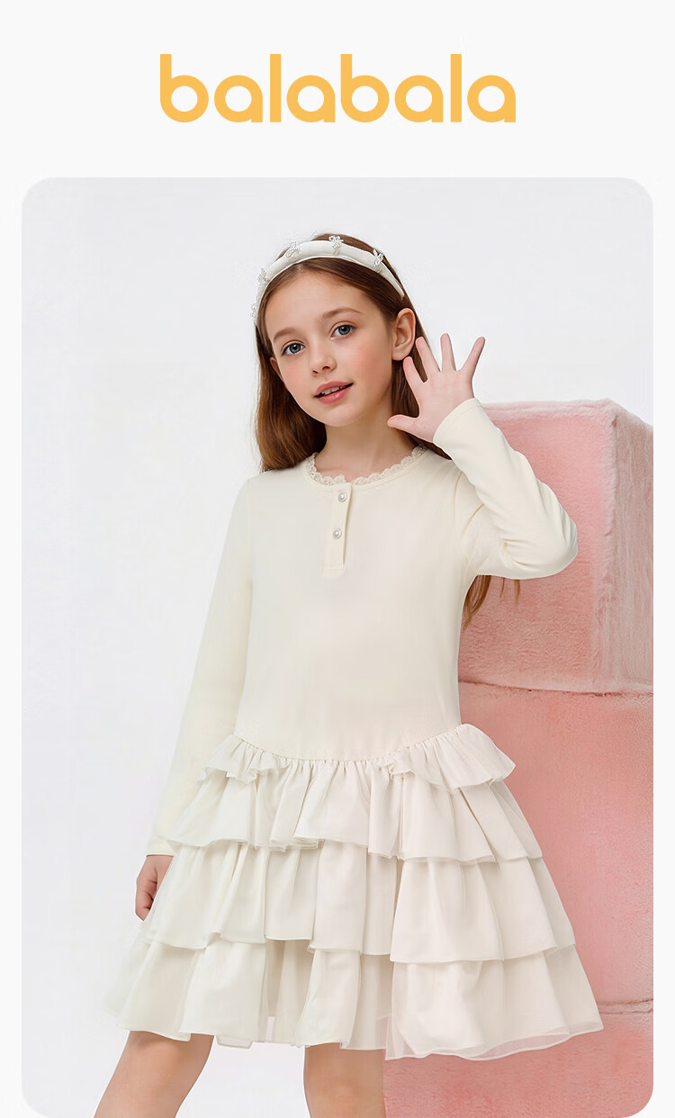 Balabala shopping mall same style children's clothing children's dress girls 2026 new spring dress cake dress sweet white tone 00311 120