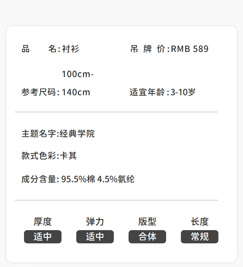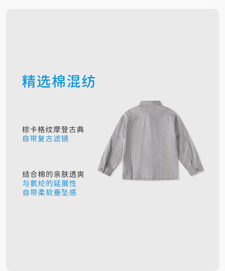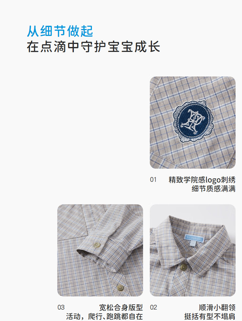 Les enphants 2026 spring new children's college style boys' school uniform artifact long-sleeved plaid shirt khaki 100