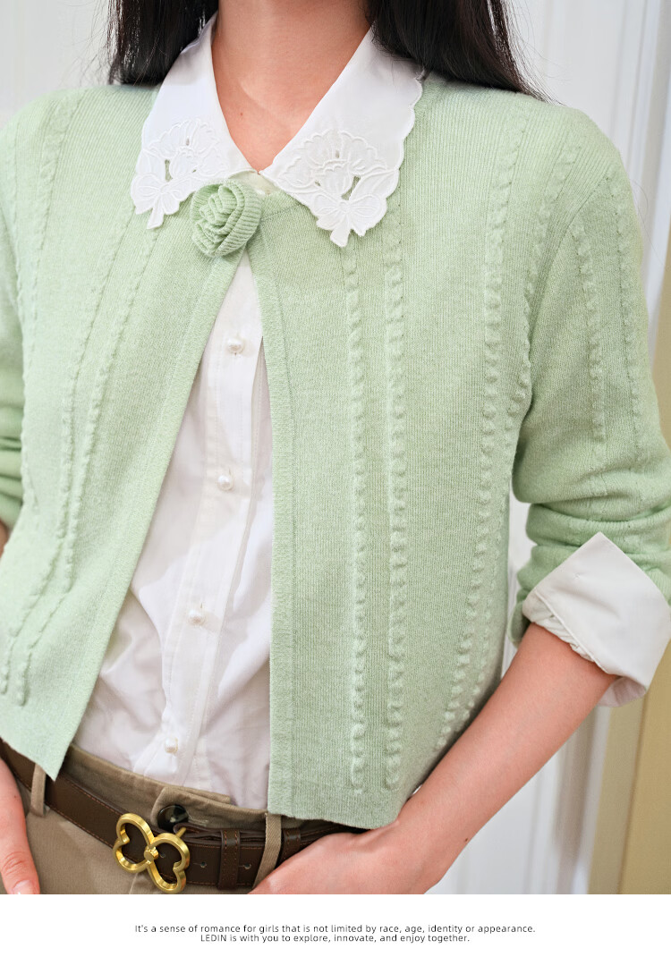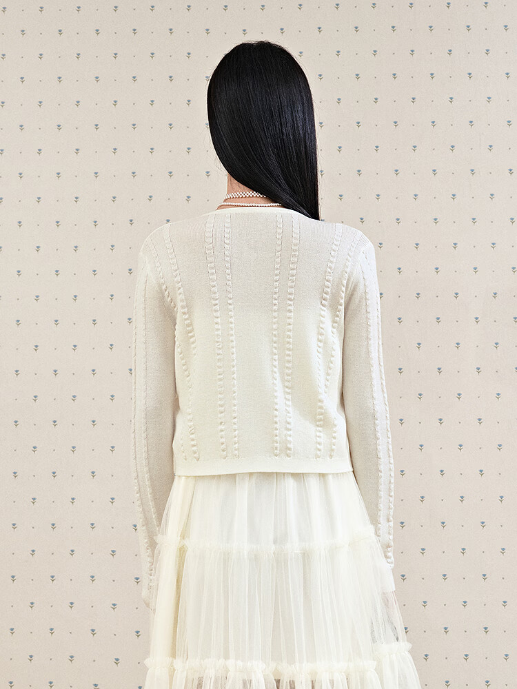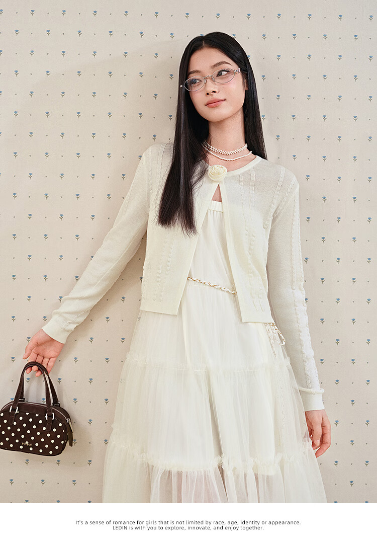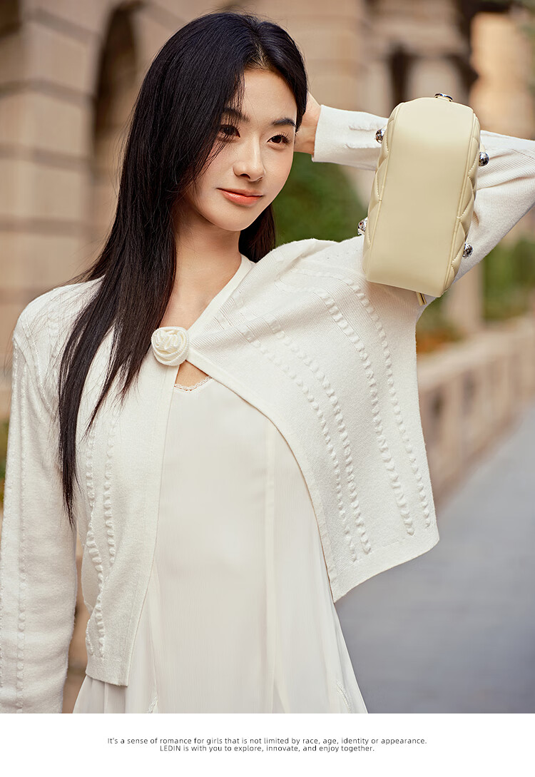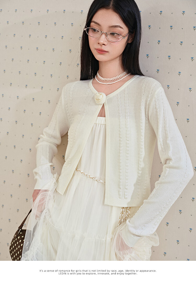 Leding three-dimensional flower knitted cardigan for women spring new wool blended jacket style top atmosphere sweater white (ready in stock) XS