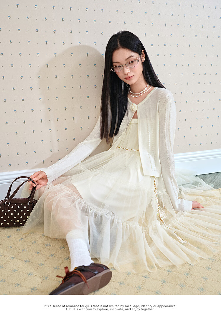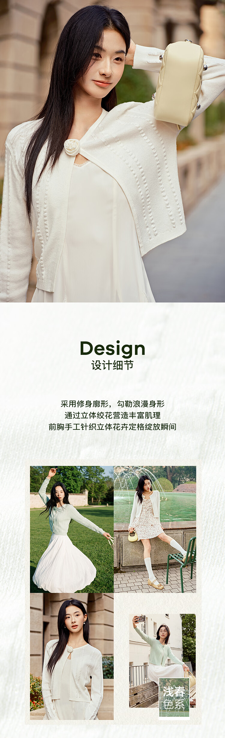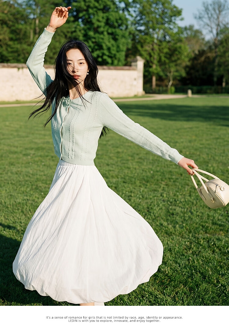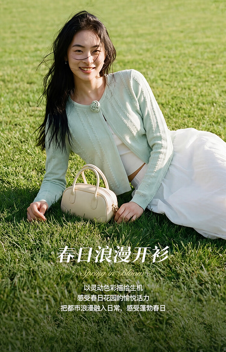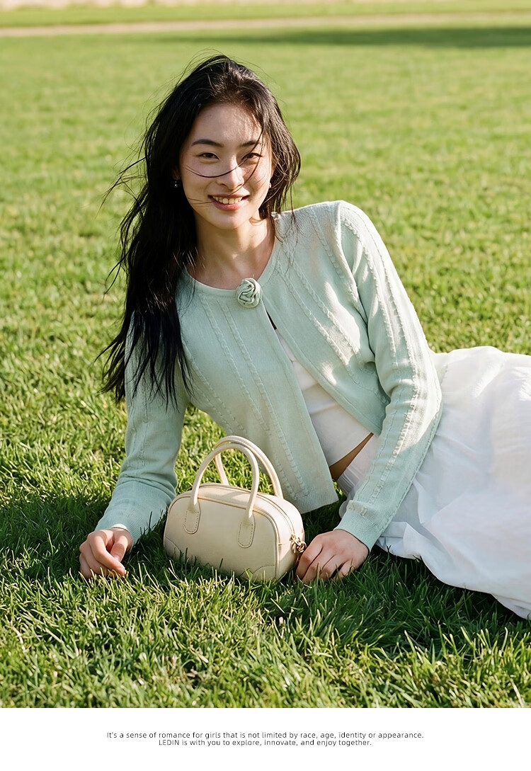 Leding three-dimensional flower knitted cardigan for women spring new wool blended jacket style top atmosphere sweater white (ready in stock) XS