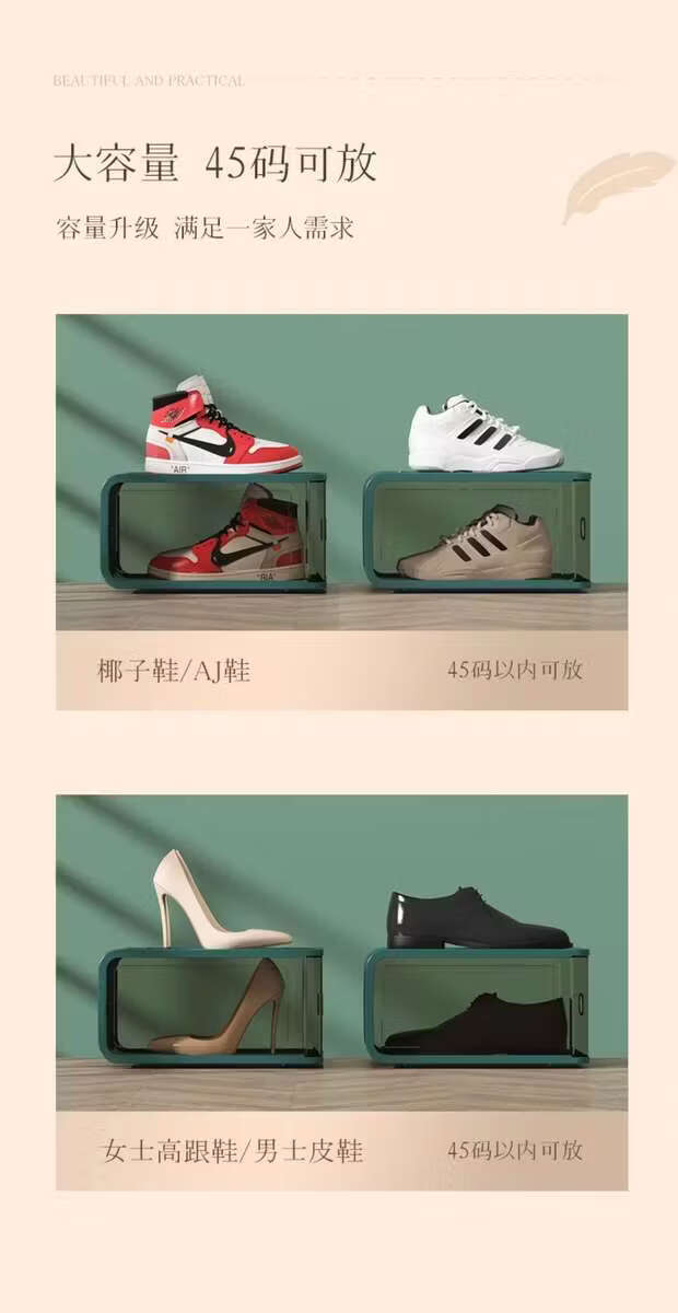 He Jiagong hard plastic shoe box shoe storage box best-selling list Internet celebrity transparent shoe cabinet shoe storage artifact space-saving shoe box classic version simple white 5 pieces (transparent side panel) 26.3x34x17.2cm