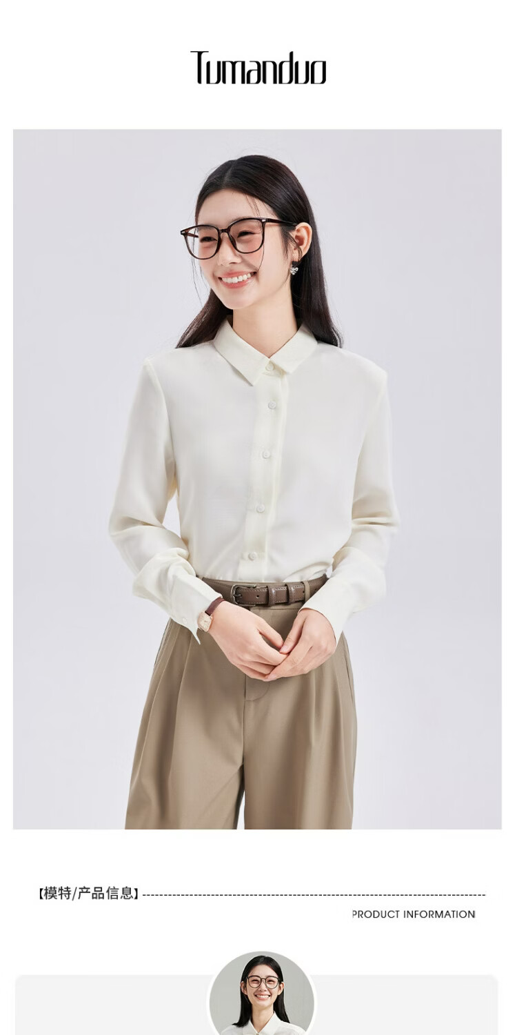 Tumando white long-sleeved shirt for women 2026 spring new high-end formal commuting workplace interview shirt milk white S