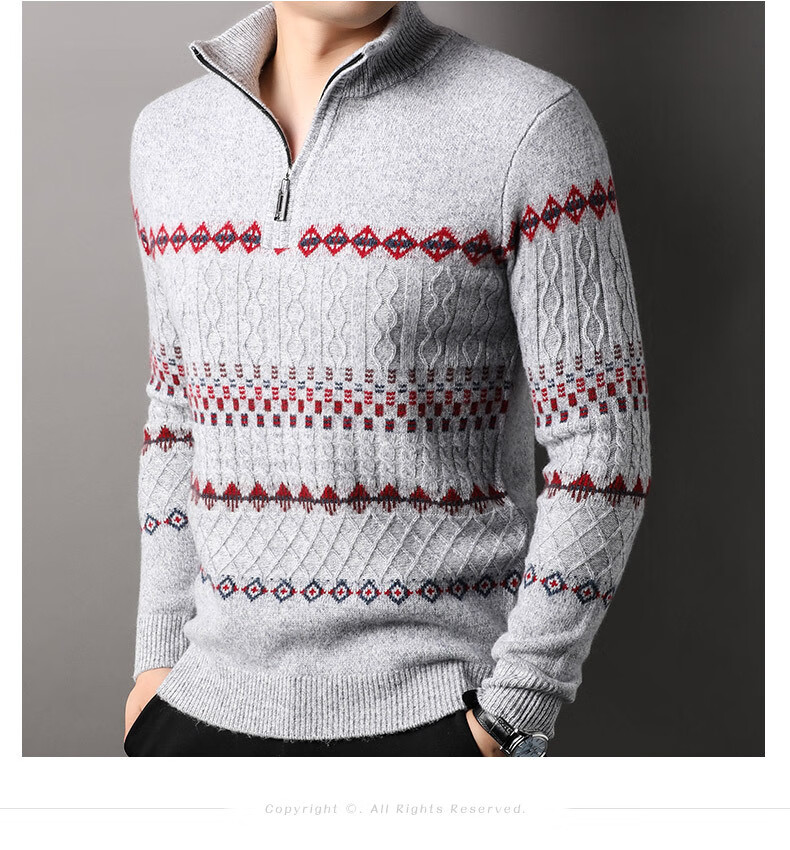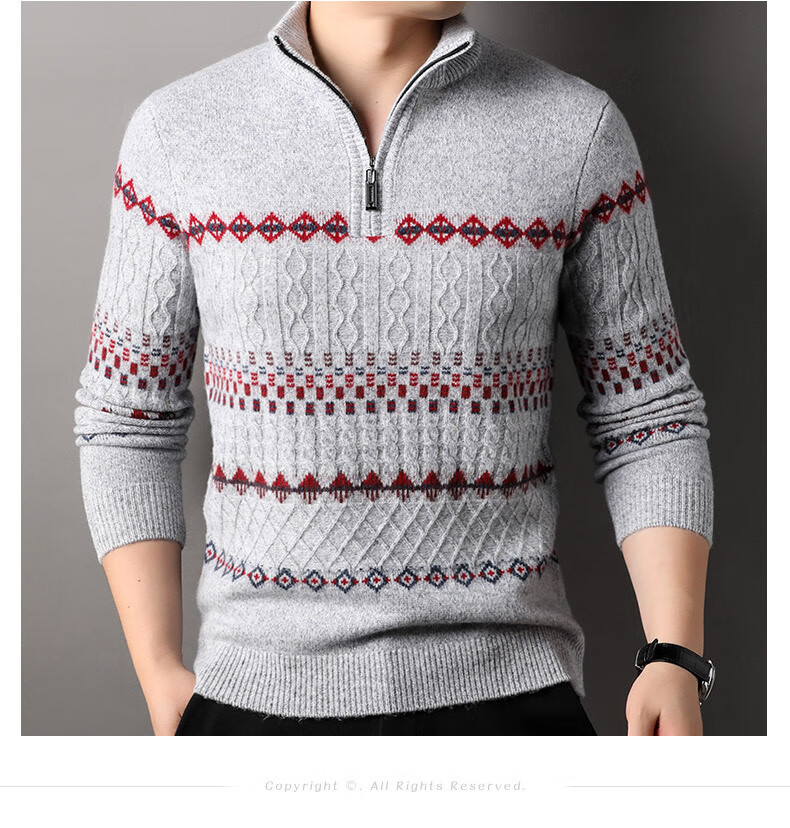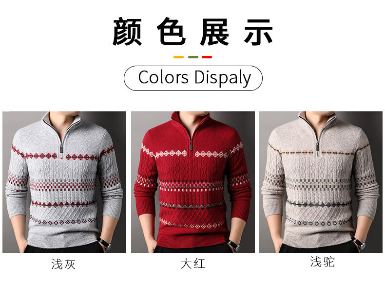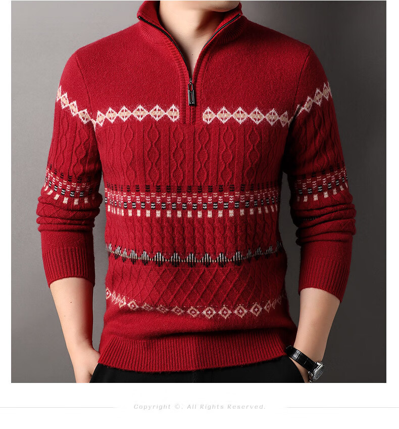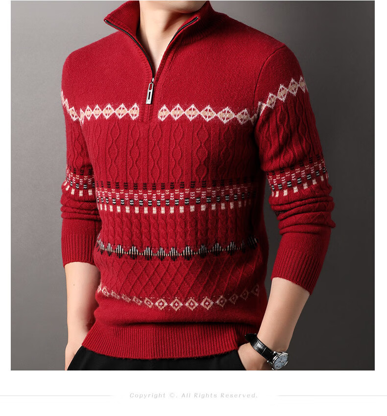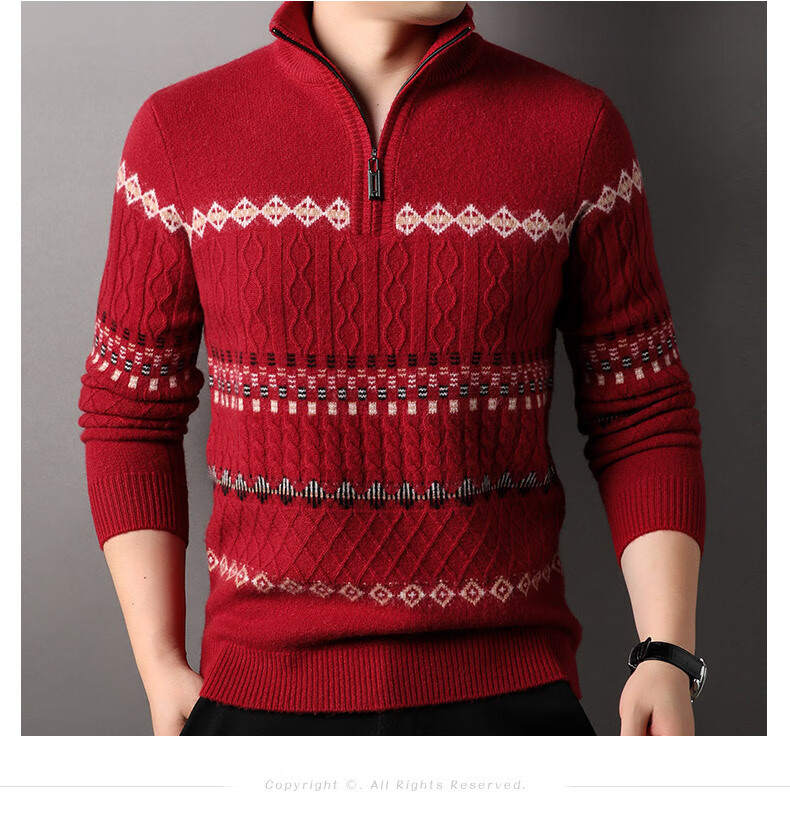 Year of the Horse, zodiac year, red 480g thickened pure wool sweater, men's zipper turtleneck sweater, New Year sweater, big red 2XL 185/120