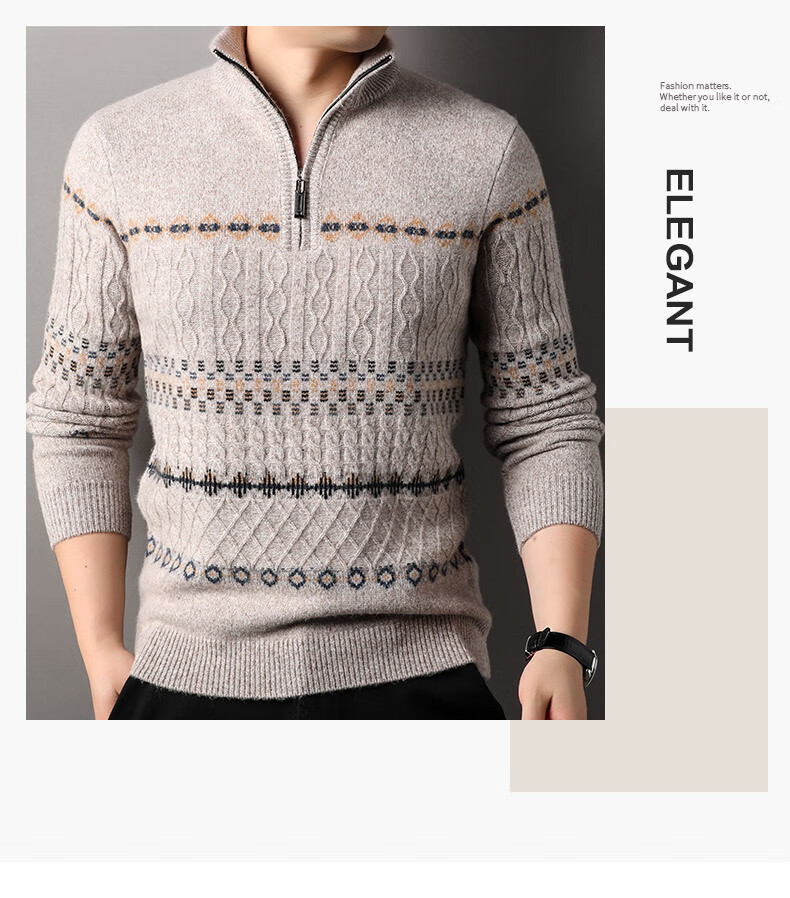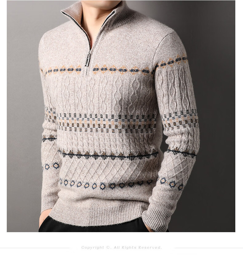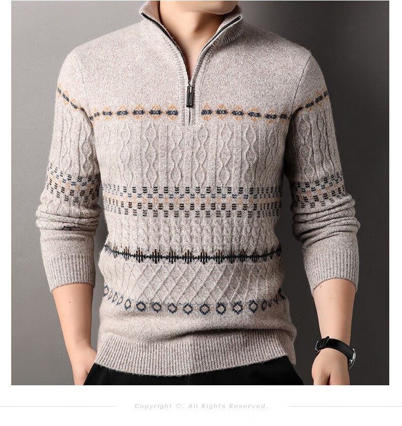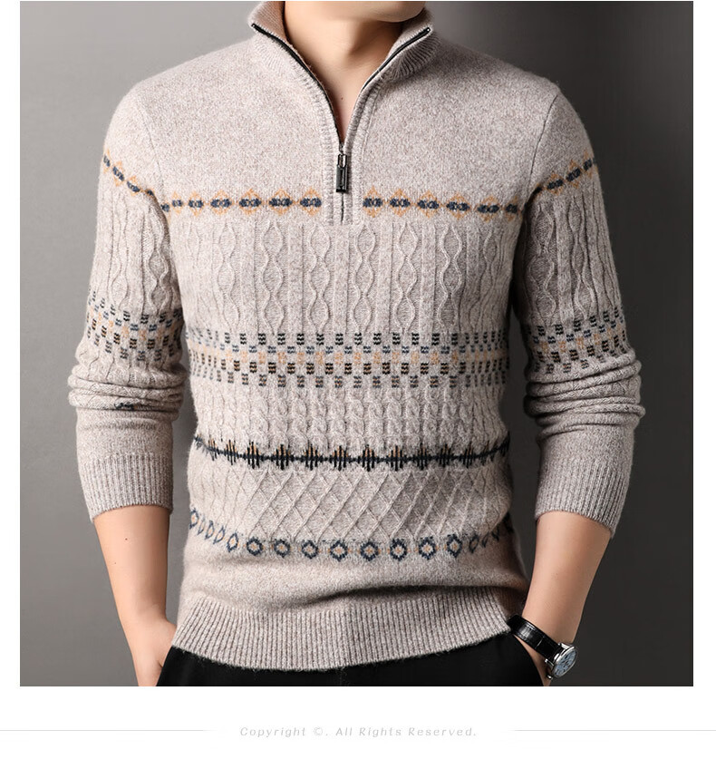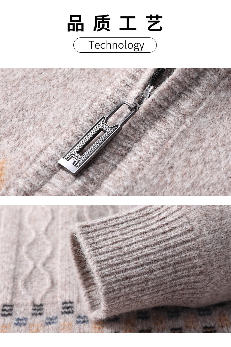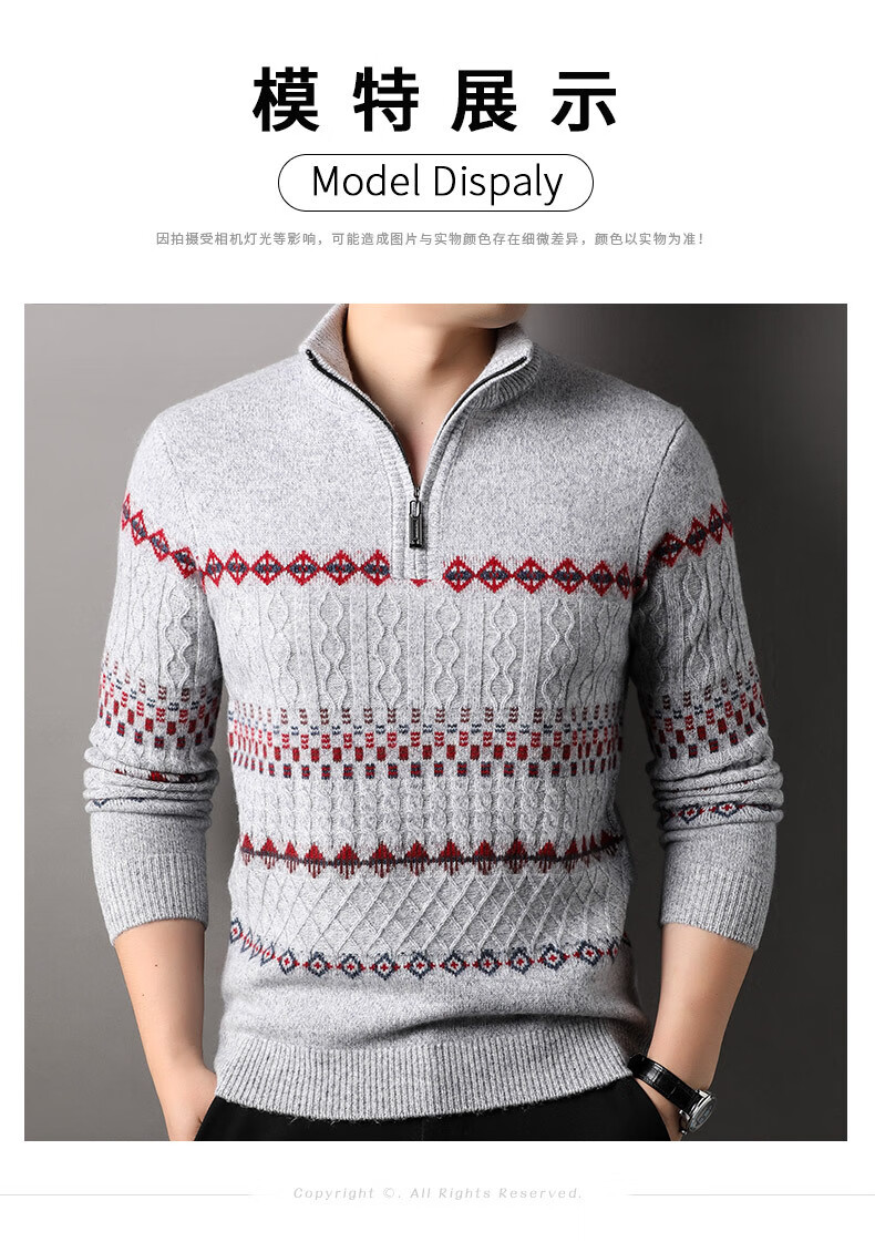 Year of the Horse, zodiac year, red 480g thickened pure wool sweater, men's zipper turtleneck sweater, New Year sweater, big red 2XL 185/120