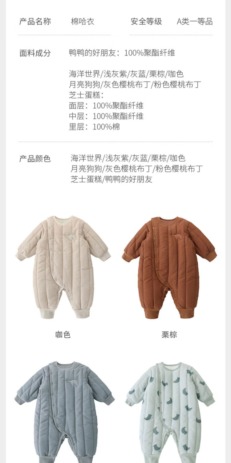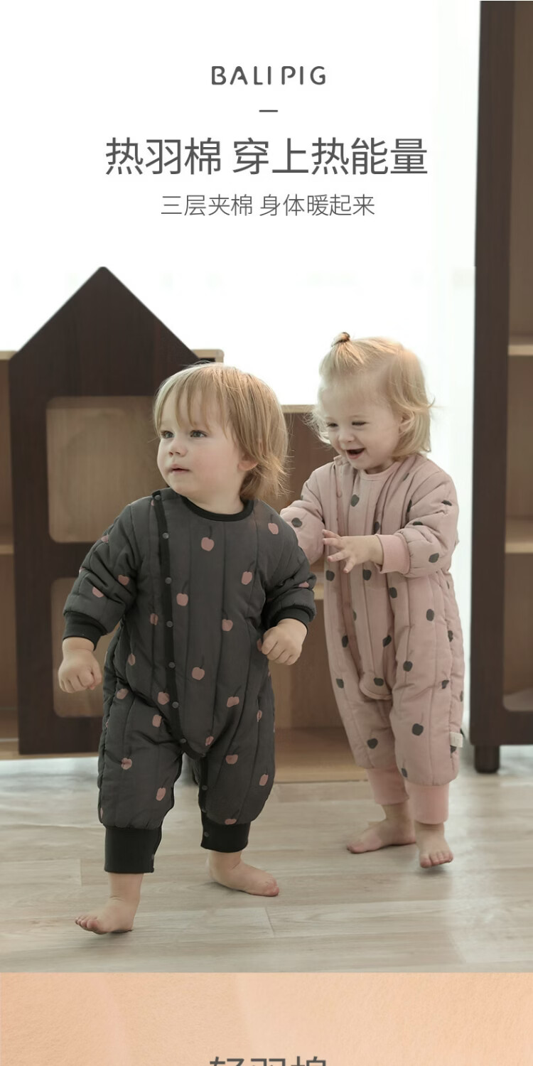 Bali Piggy baby quilted jumpsuit winter thickened warm cotton jacket newborn cotton clothes outing cotton coat winter baby clothes gray blue 59cm