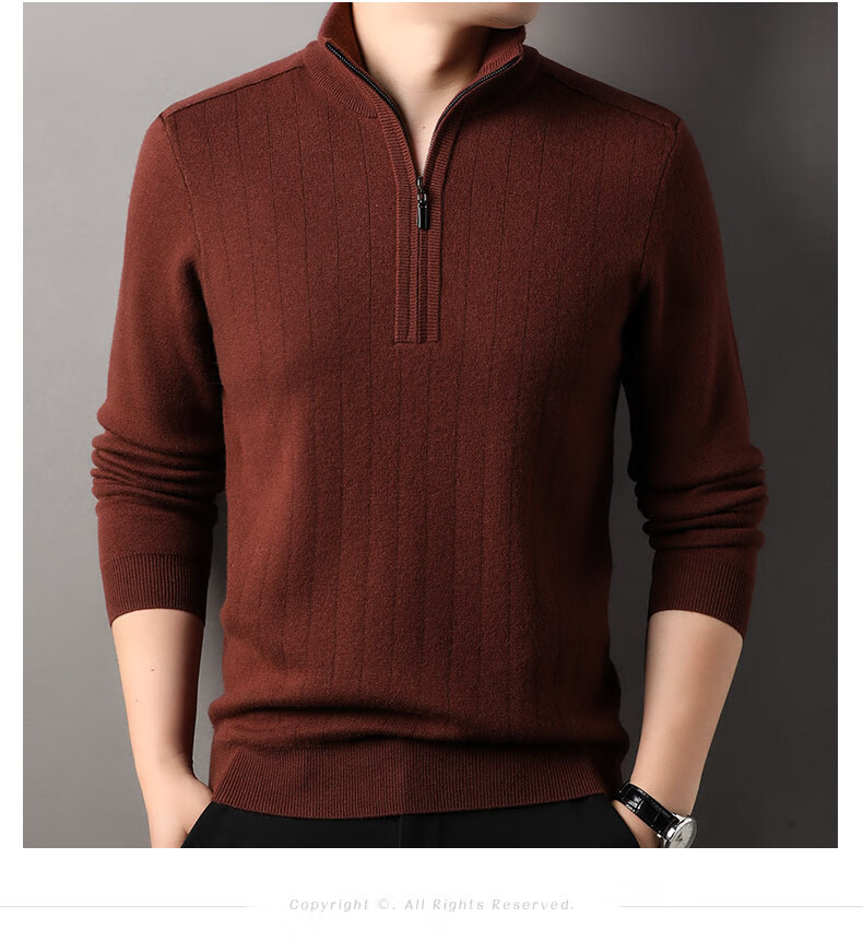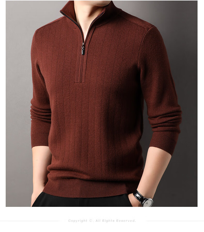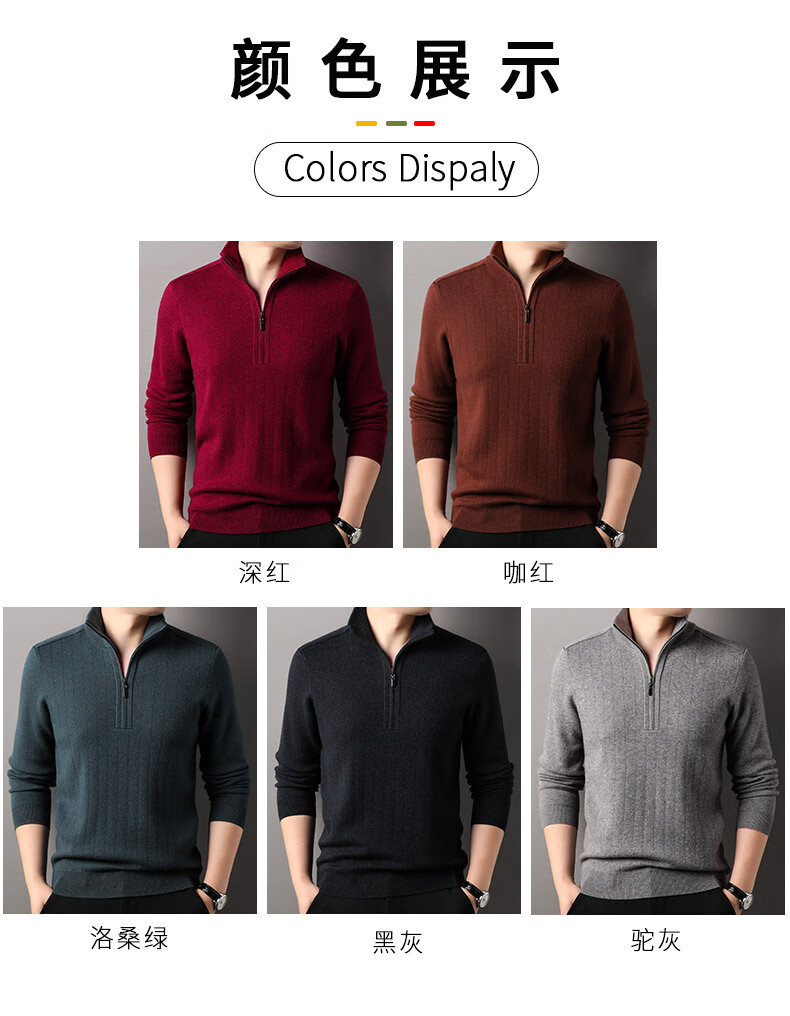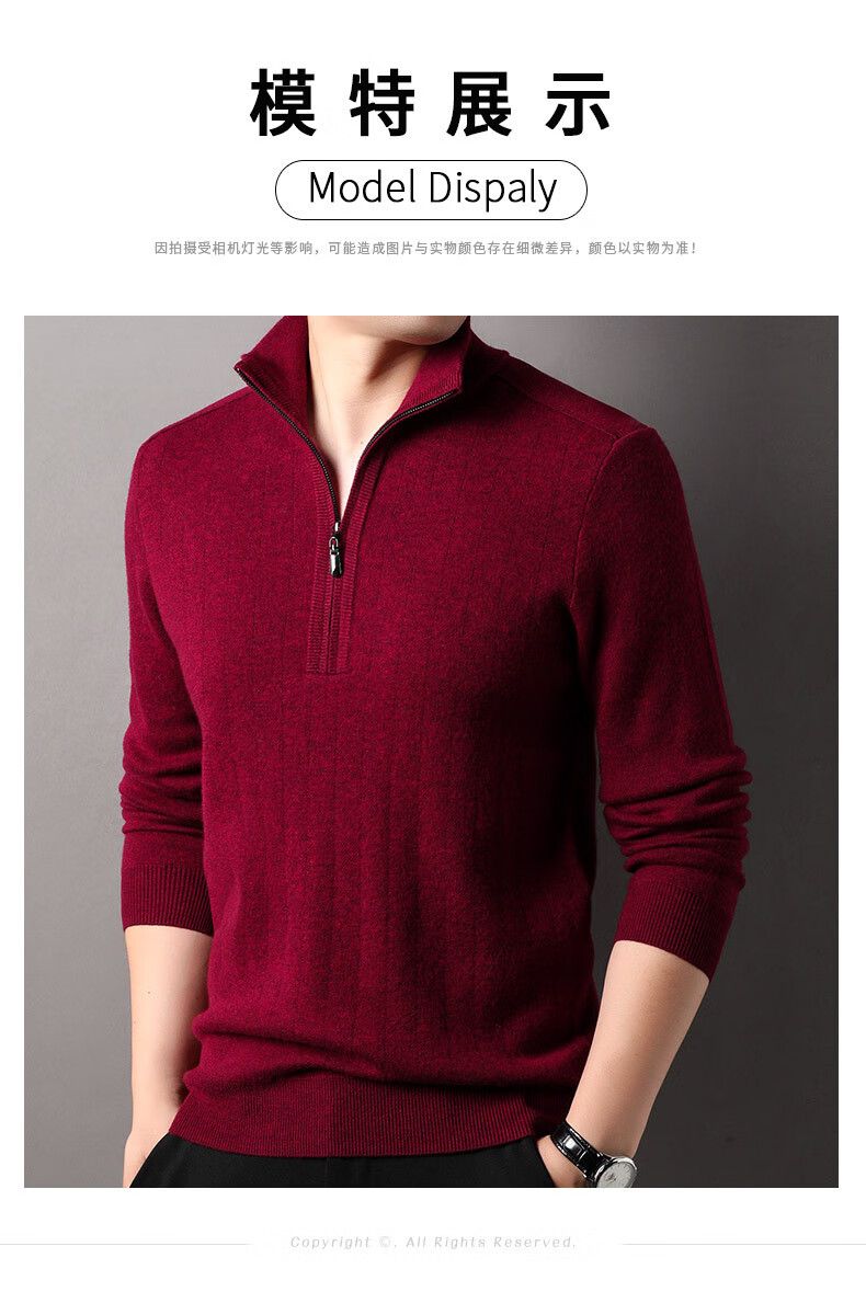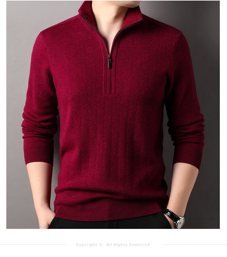 Year of the Horse zodiac year red 100% pure wool sweater men's turtleneck sweater New Year middle-aged sweater warm and thick style dark red XL 180/115