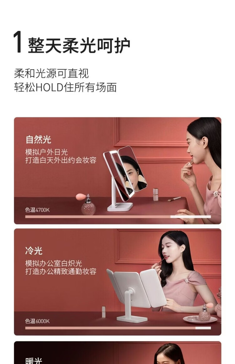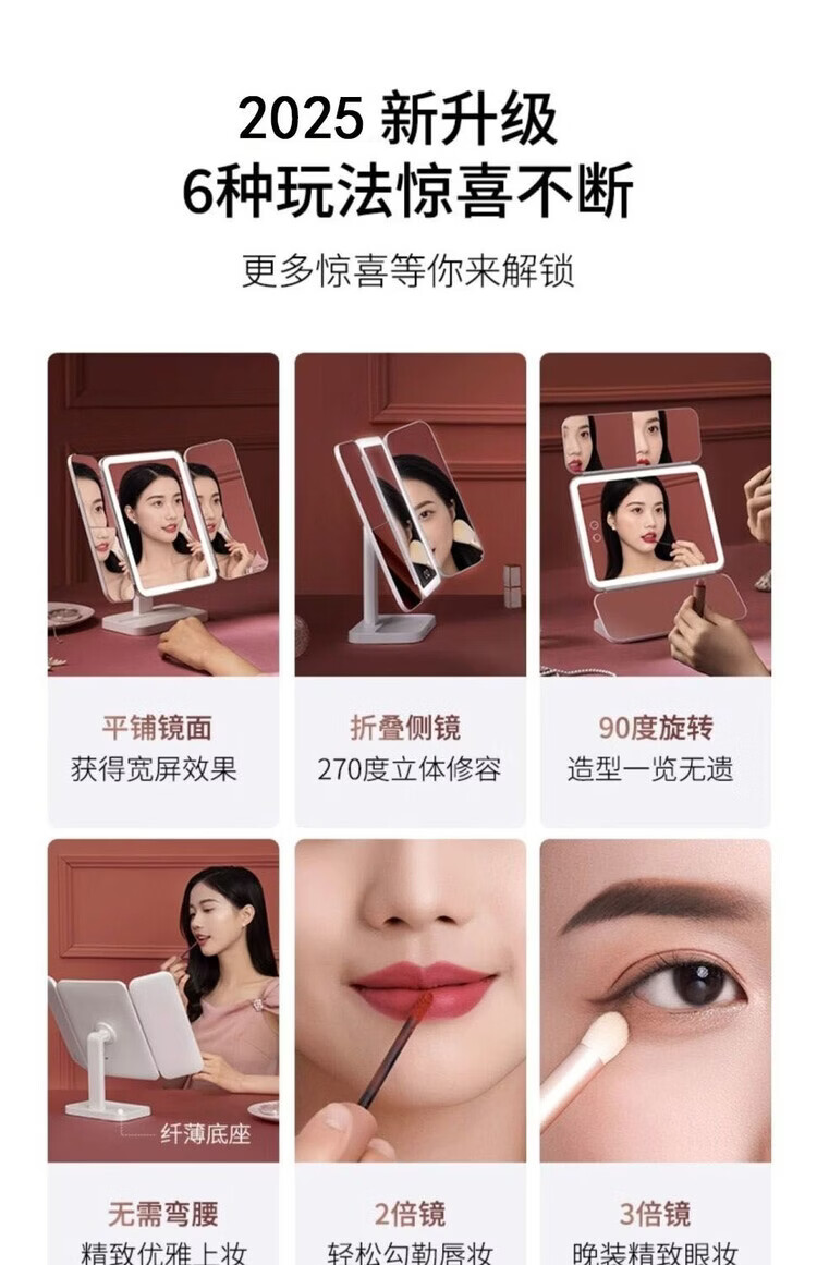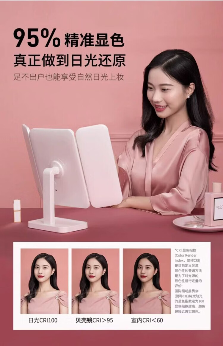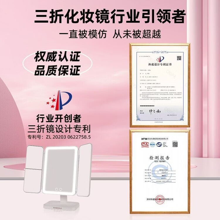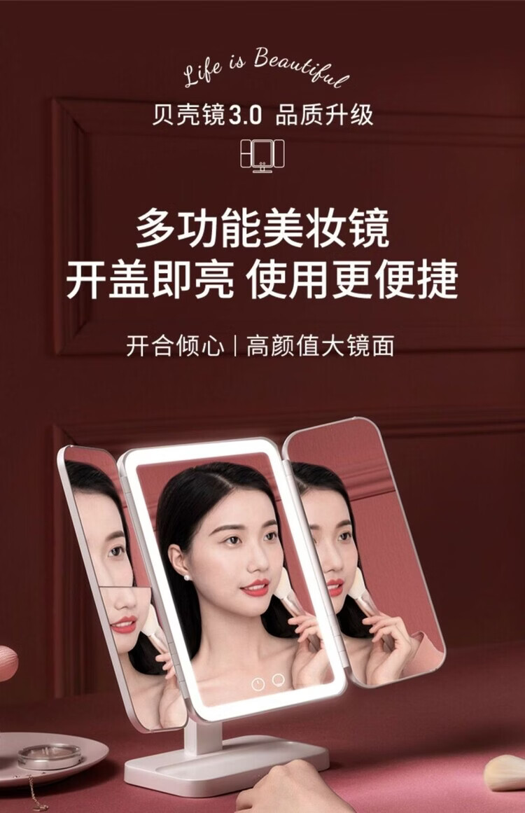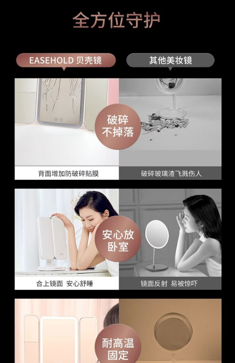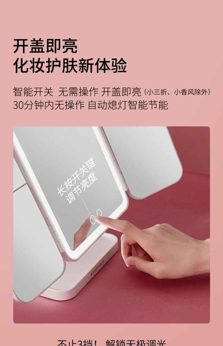 EASEHOLD double-door LED makeup mirror desktop desktop home makeup mirror high-definition fill-in light beauty mirror for girls shell mirror 3500mAh battery life-white