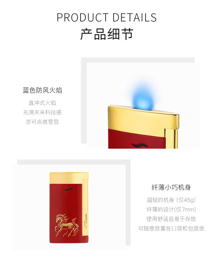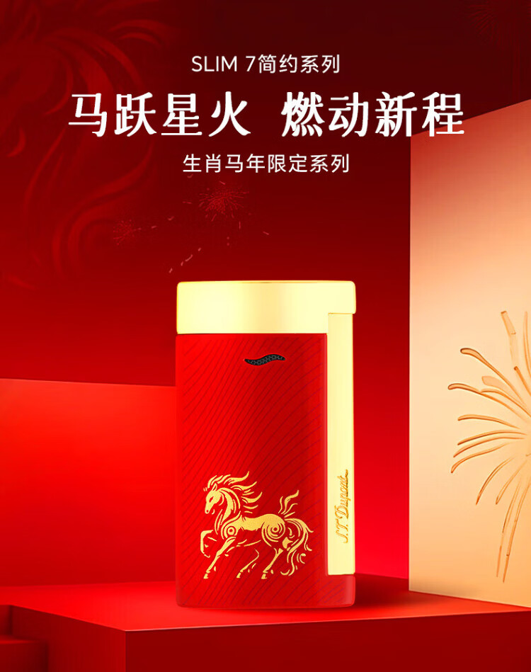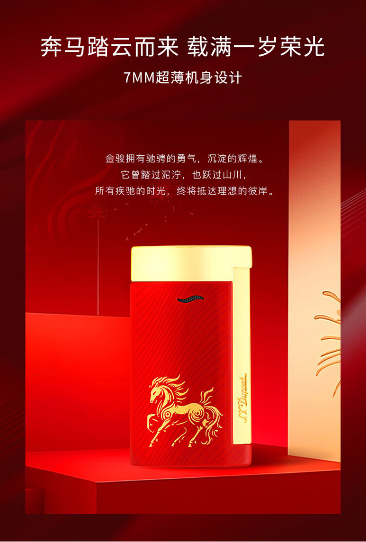 S.T.Dupont French Dupont lighter SLIM7 ultra-thin Zodiac Year of the Horse limited windproof lighter for boyfriend - 27080 27080 - Year of the Horse limited edition red gold
