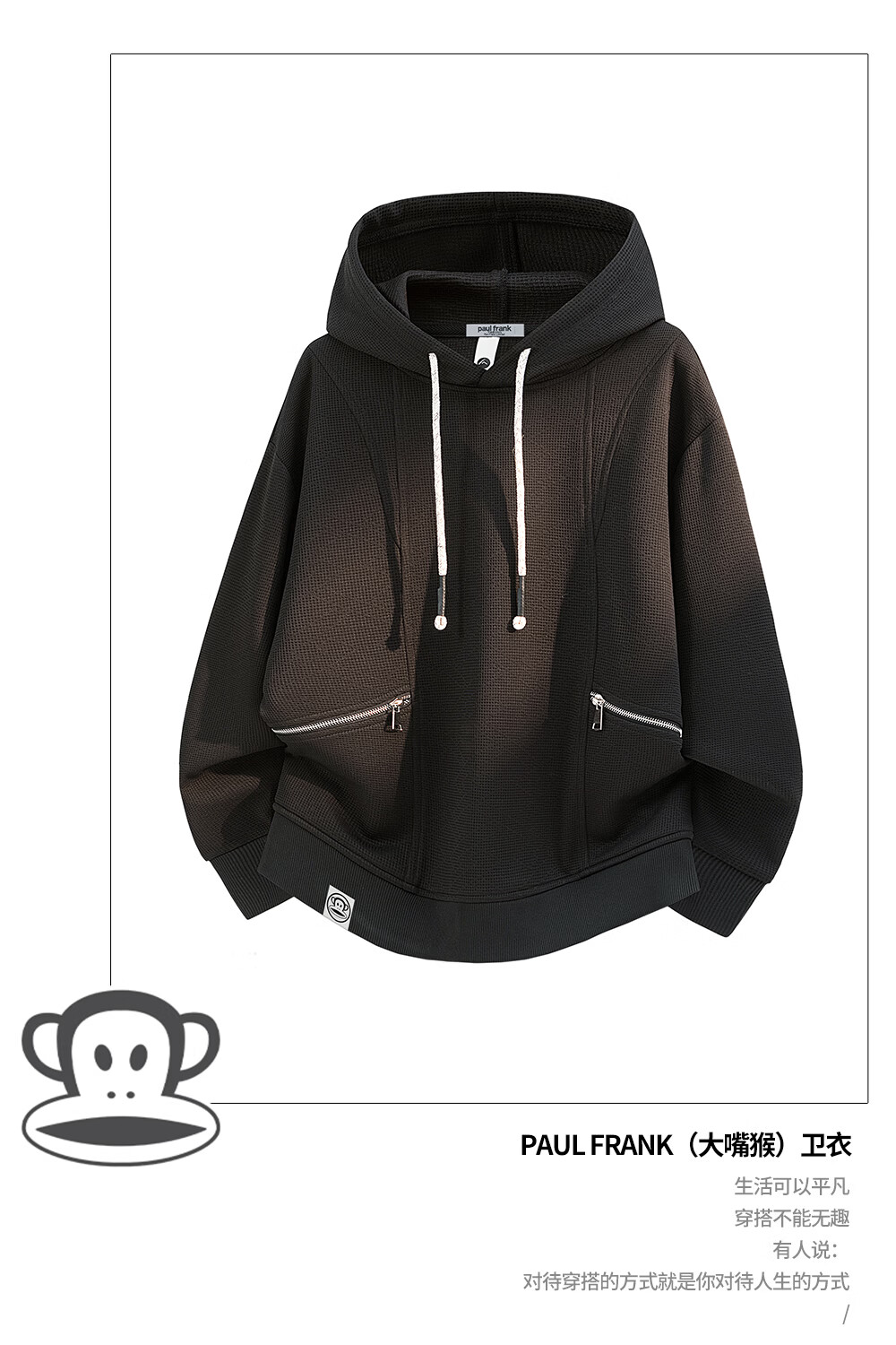Big-mouthed monkey (paul frank) design hooded sweatshirt for men in spring and autumn new American fashion brand loose retro jacket casual and versatile clothes black official authentic 4XL recommended 195-215Jin Jin equals 0.5 kg