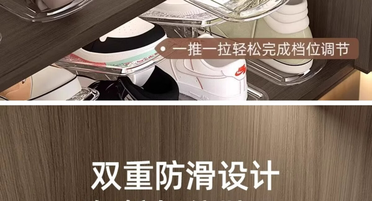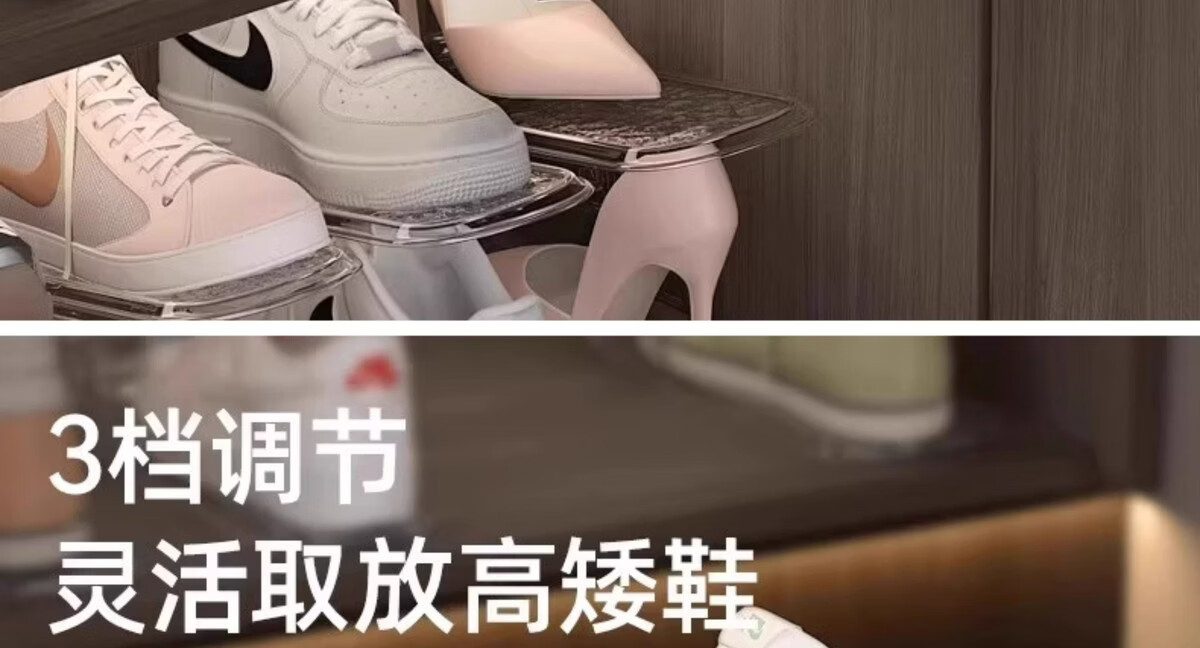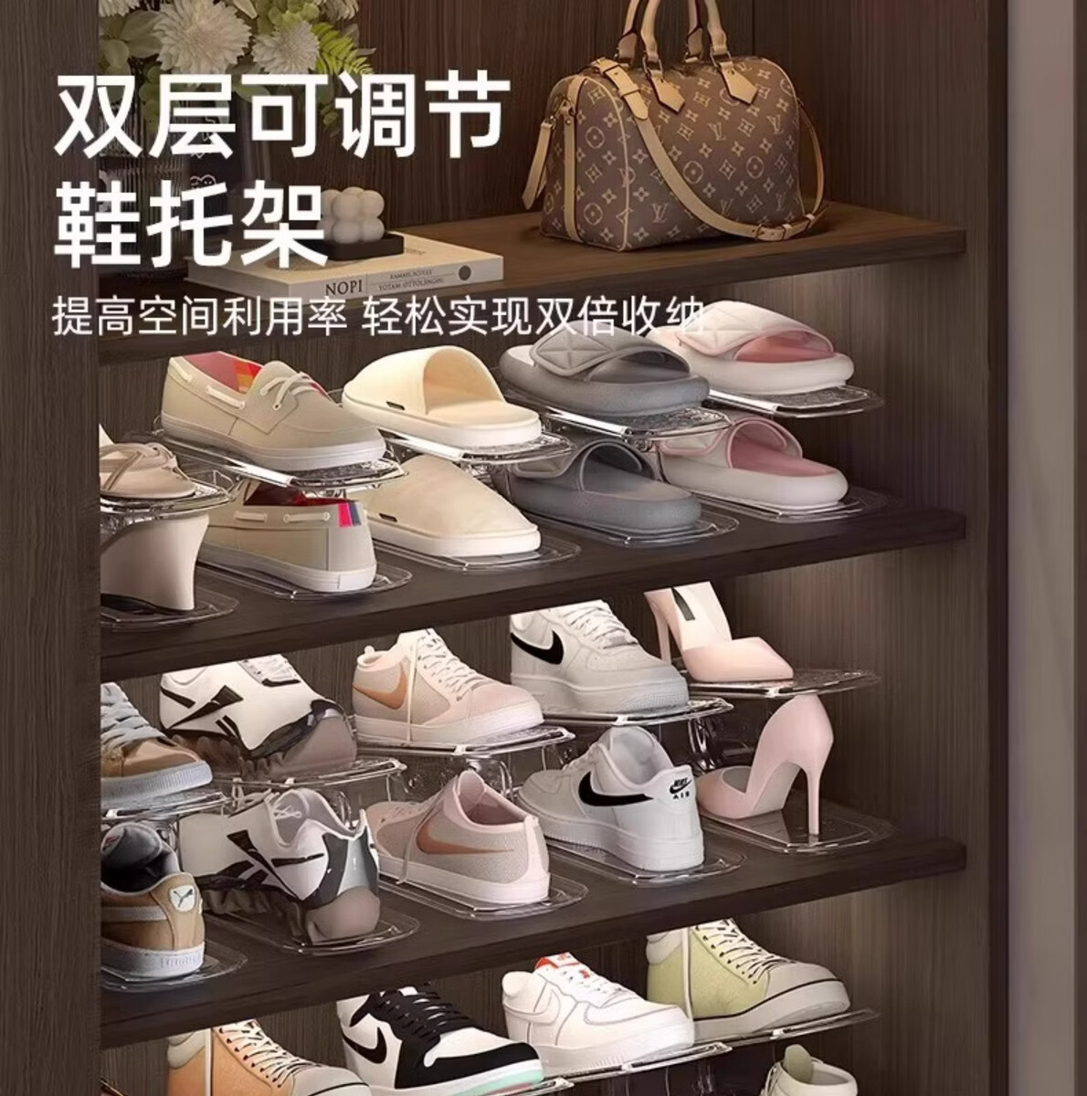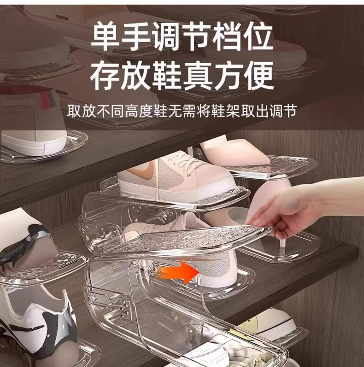 Pupan space-saving double-layer shoe storage artifact adjustable shoe cabinet simple household bedroom layered partition shoe support shoe rack transparent gray 1 pack three-speed adjustment anti-slip thickening