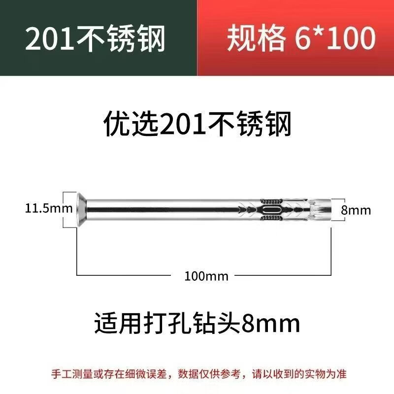 304 material, 201 material, stainless steel pull-out screw, cross countersunk head pull-out screw, special screw for doors and windows, 6x80 full length, 304 material, 100 pieces, punch 8 holes
