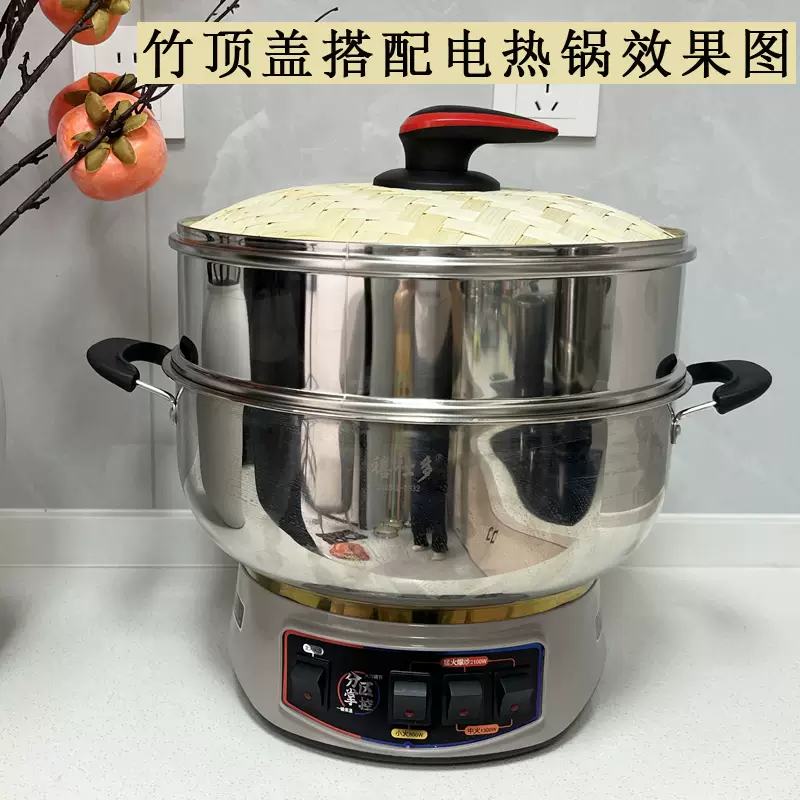 Yusenyi Double-layer Bamboo Top Lid Non-Drip Bamboo Lid Multifunctional Electric Hot Pot Heightened Cast Iron Electric Wok Lid 34 Height Bamboo Top Lid Lid Height 10cm