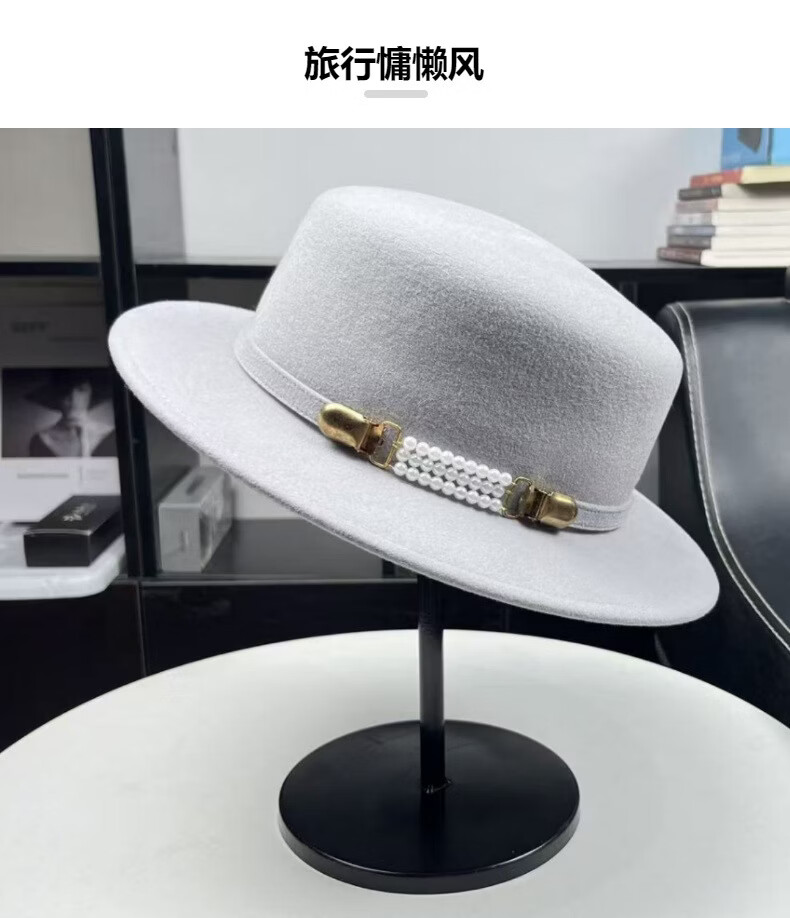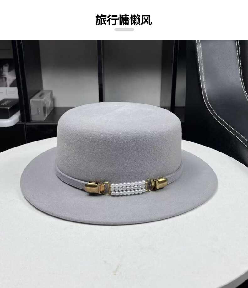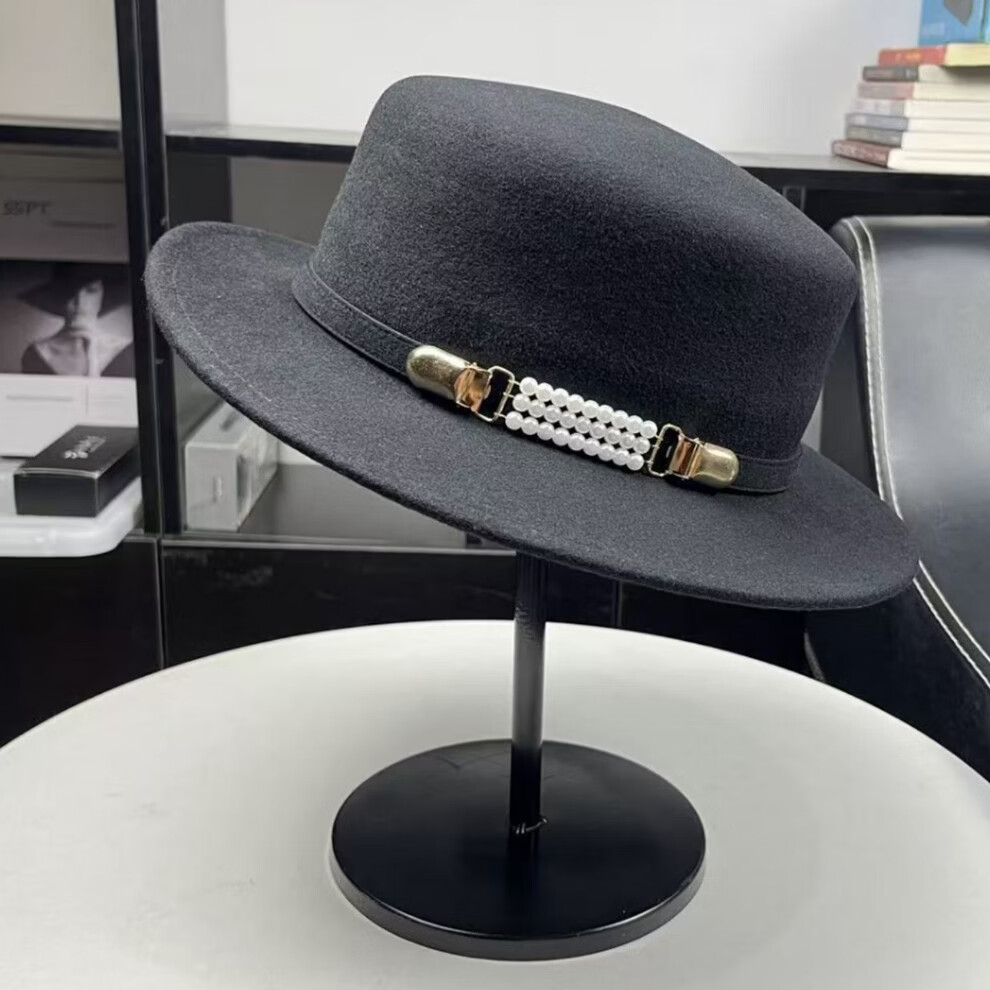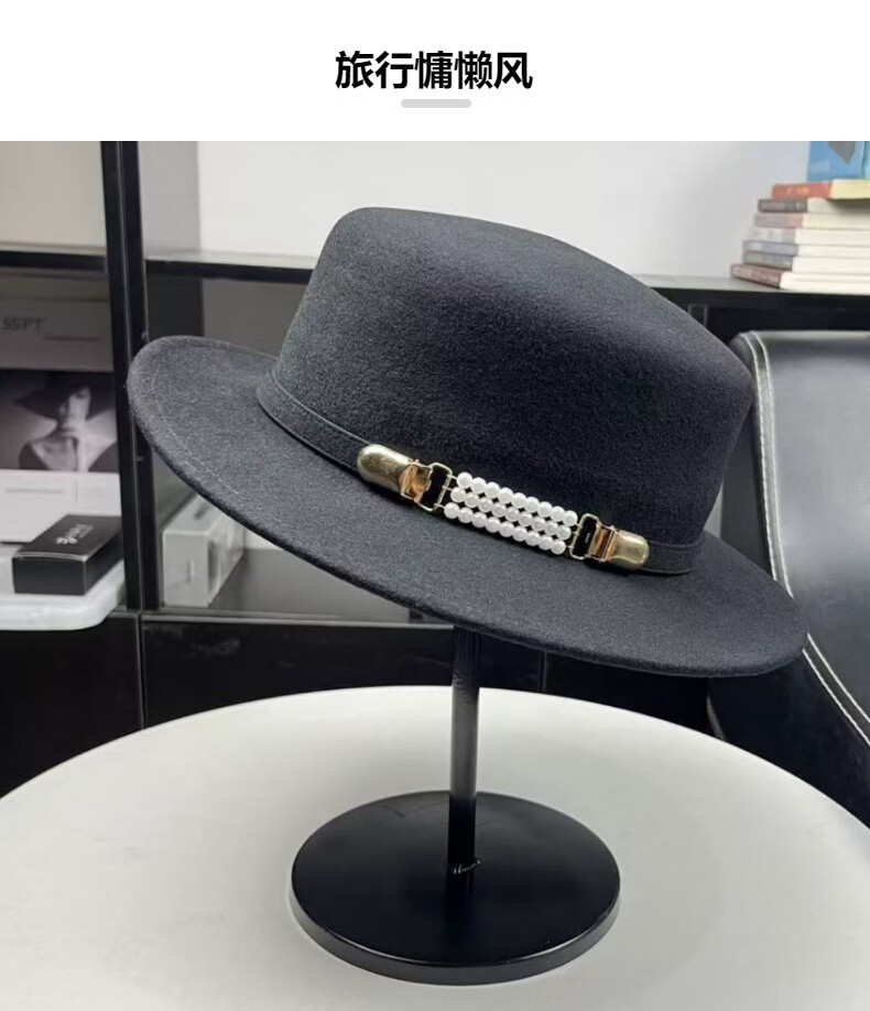 ALBINELE Lady Style Australian Wool Material Gray Small Brim Top Hat Women's Autumn and Winter Elegant and Versatile Basin Hat Flat Top Hat Black M (53-58cm) Adjustable