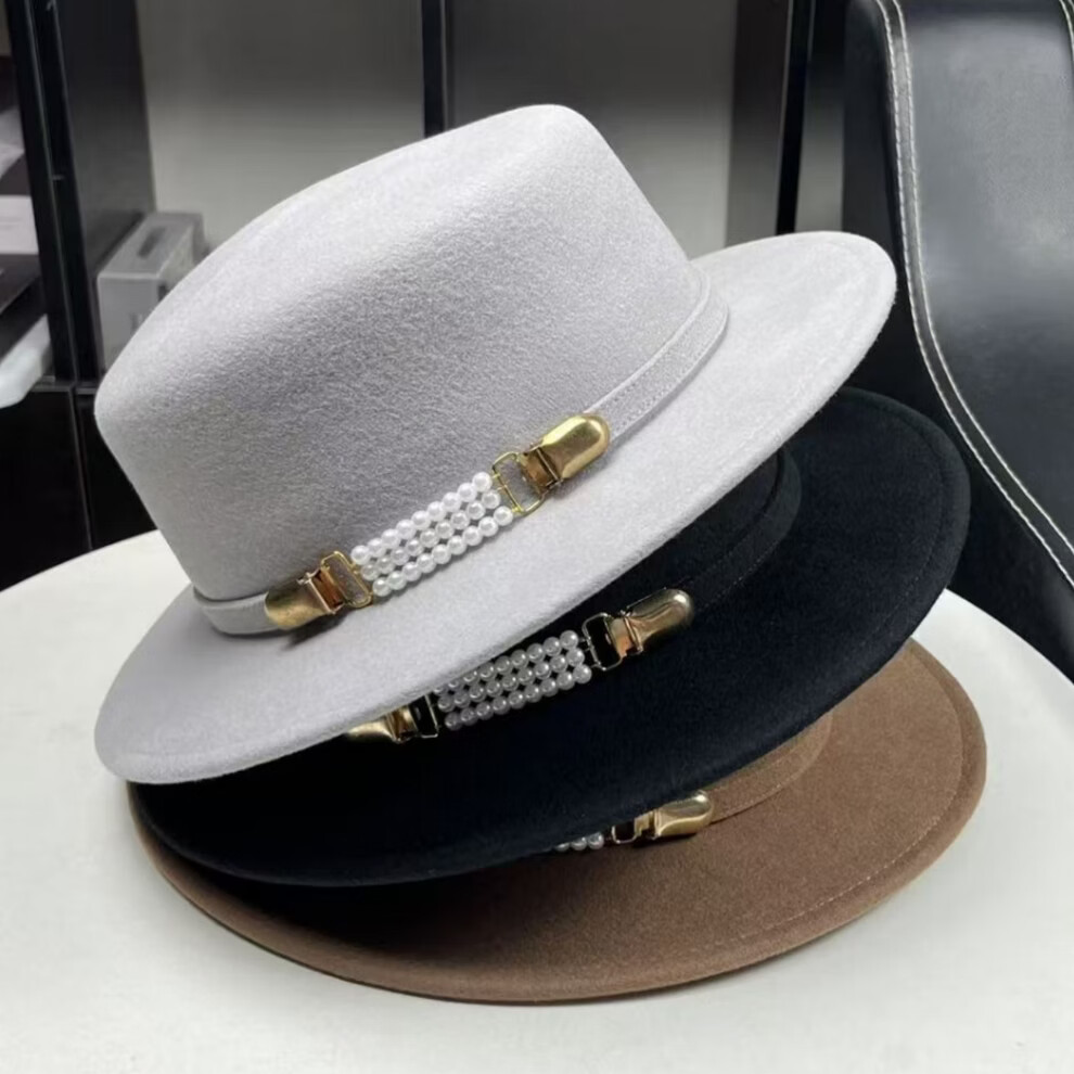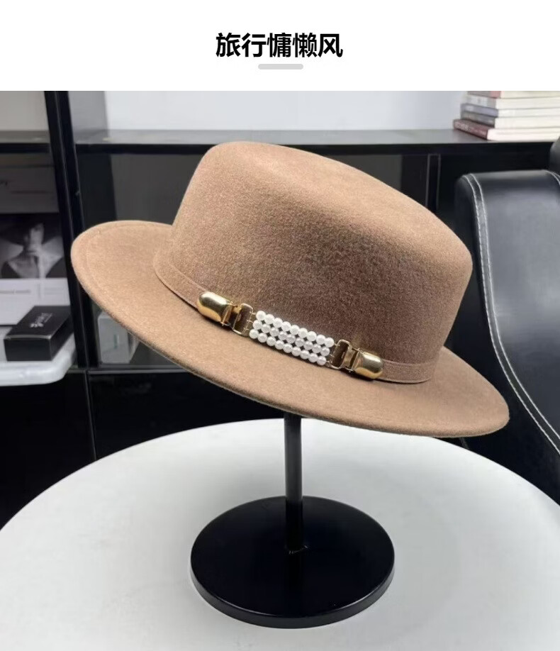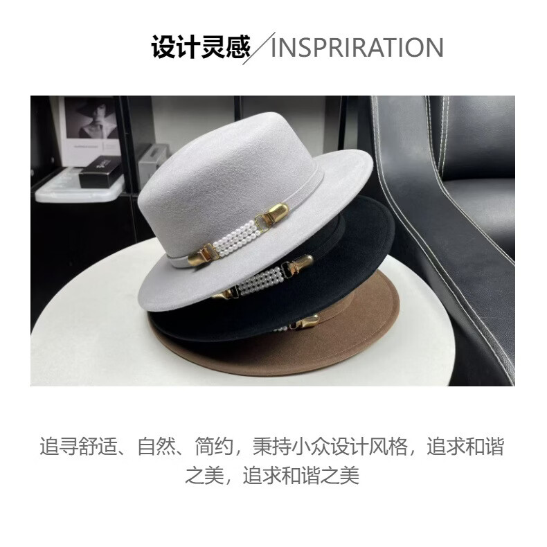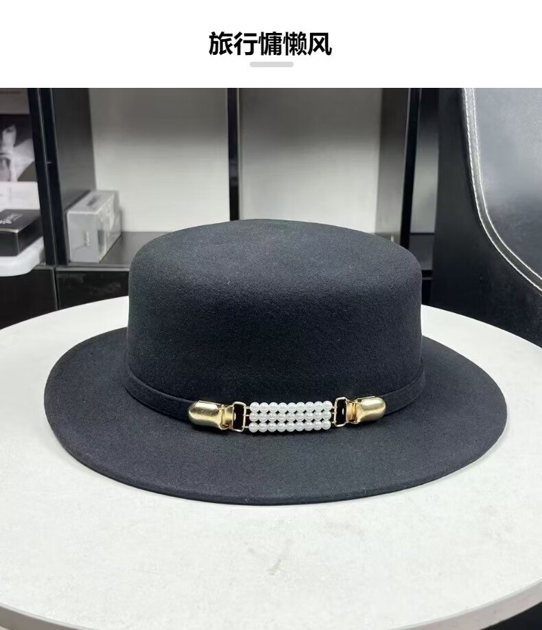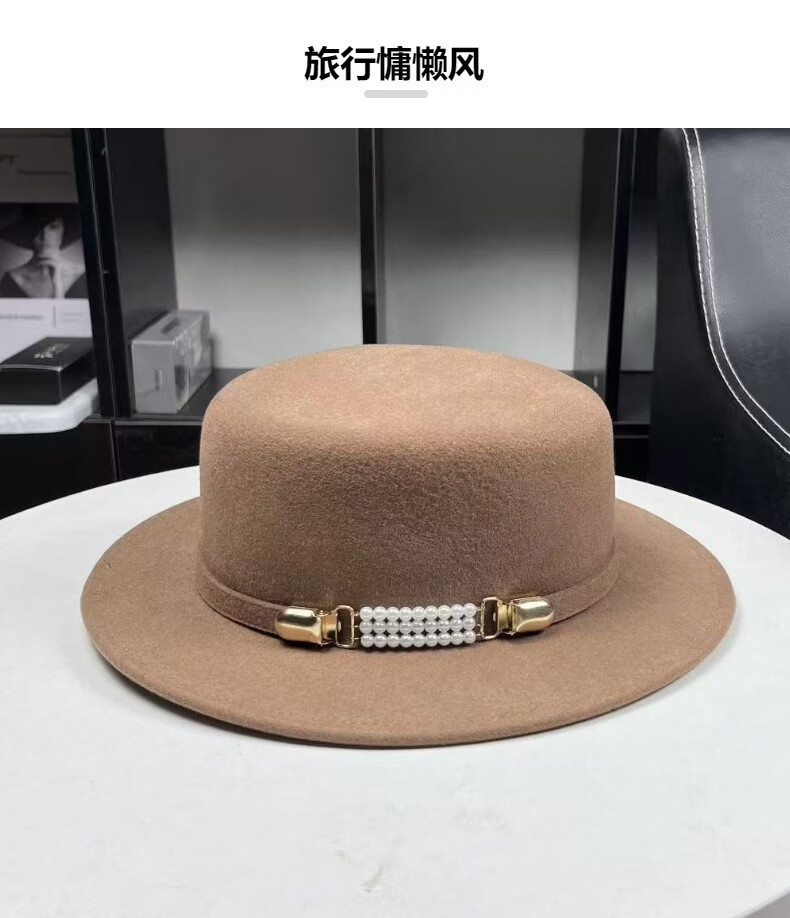 ALBINELE Lady Style Australian Wool Material Gray Small Brim Top Hat Women's Autumn and Winter Elegant and Versatile Basin Hat Flat Top Hat Black M (53-58cm) Adjustable