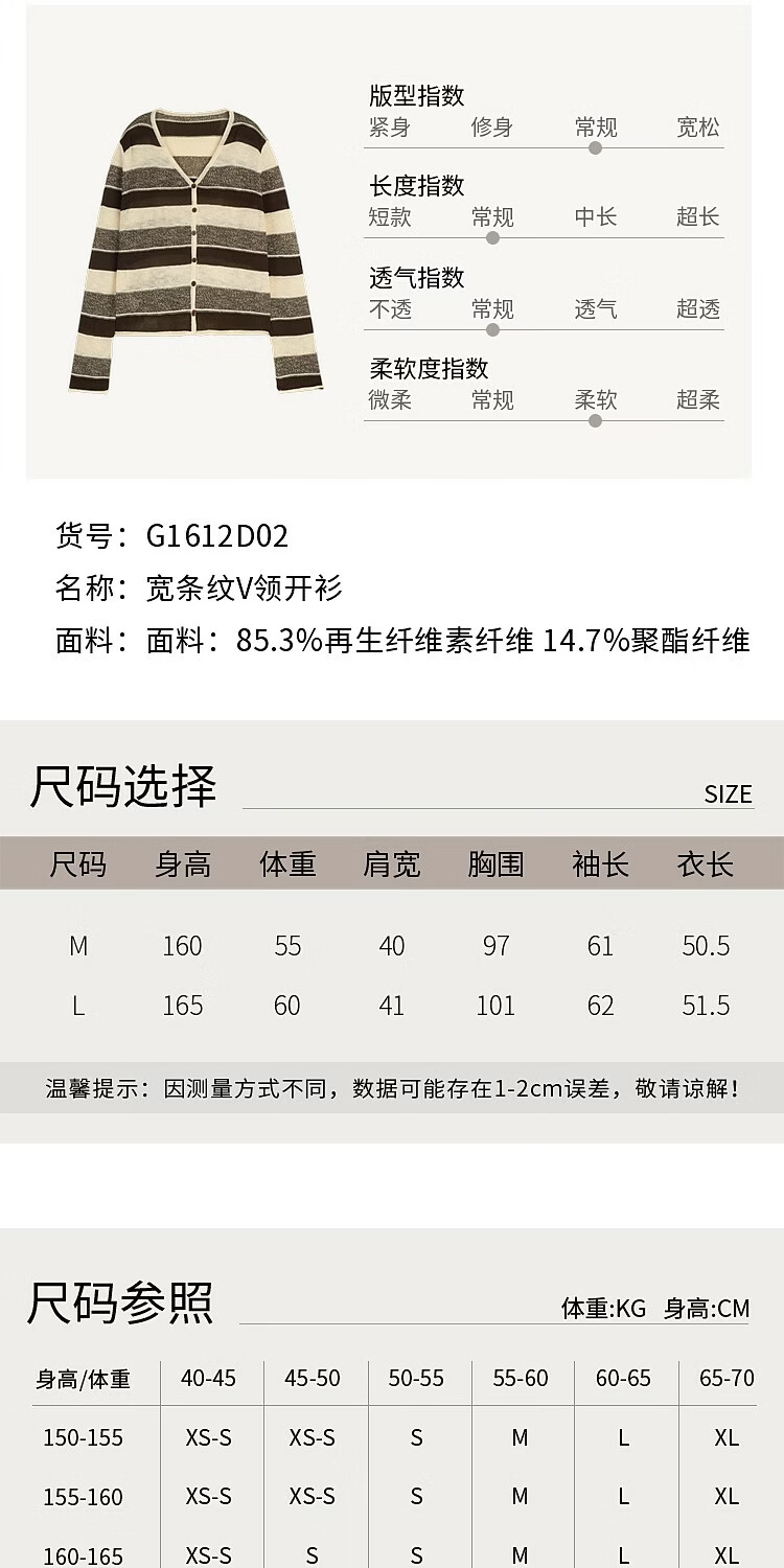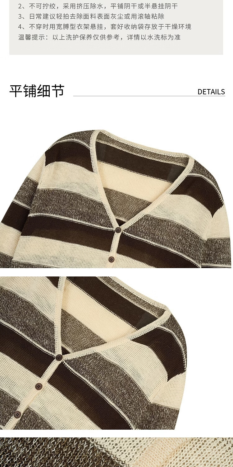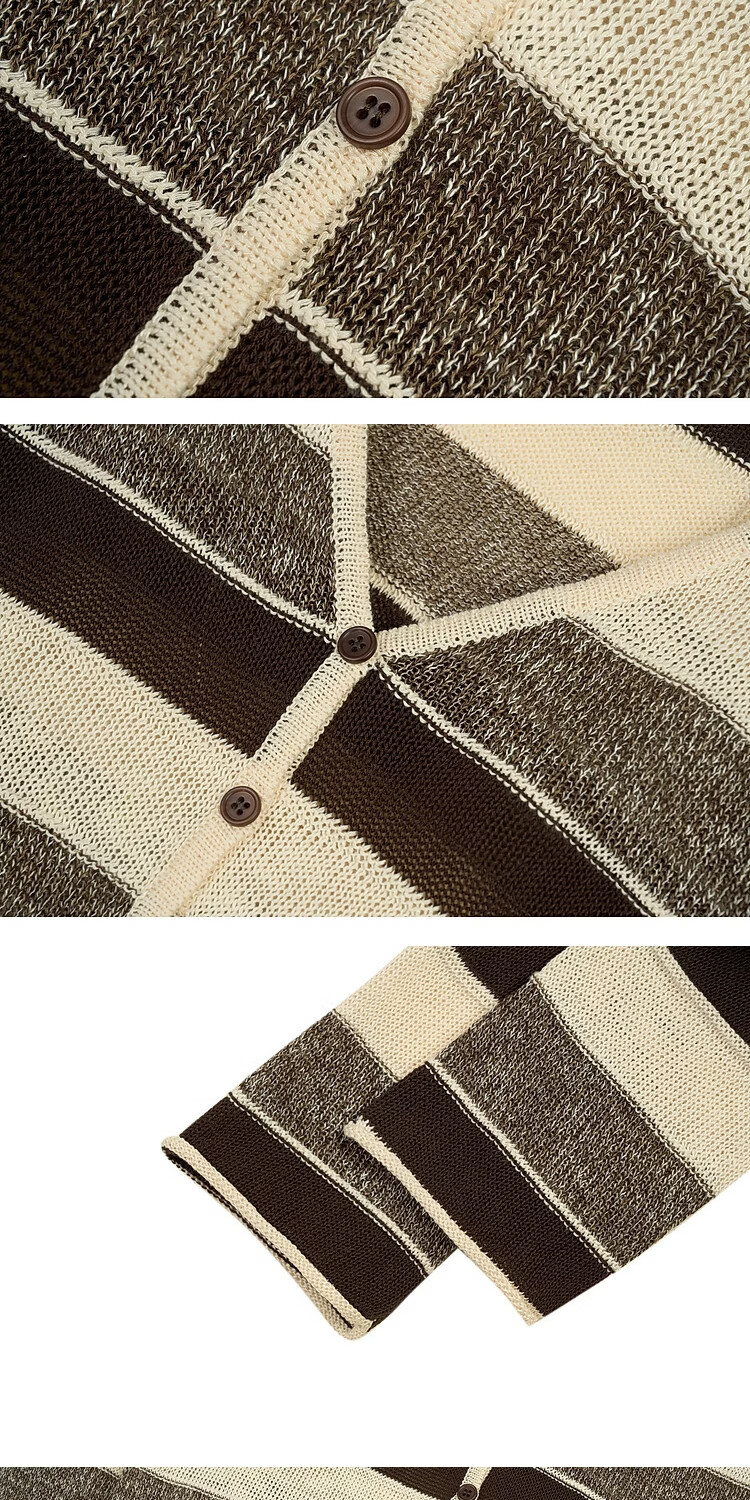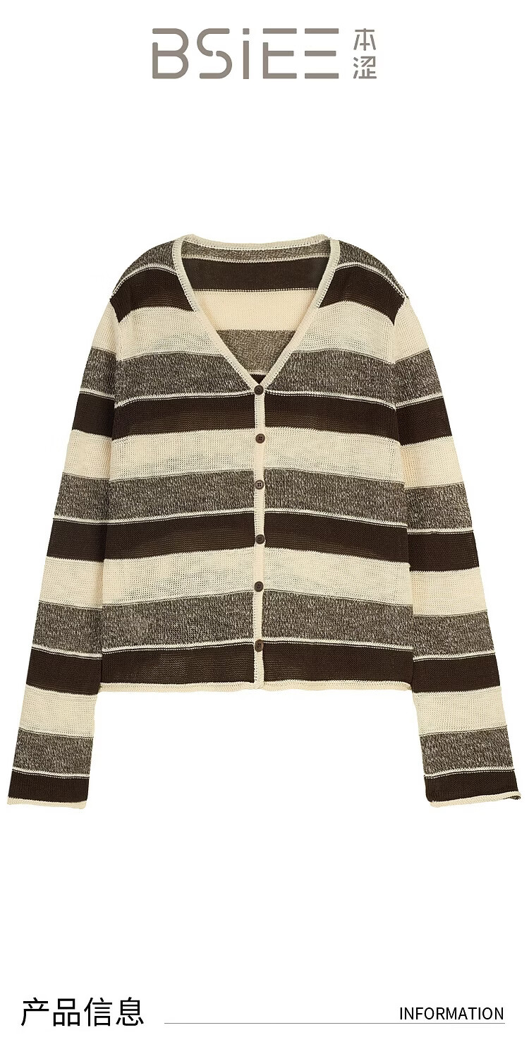 BSIEEBSiEE 2026 spring new long-sleeved neutral style design contrasting wide striped V-neck cardigan sweater pinecone brown nutshell M