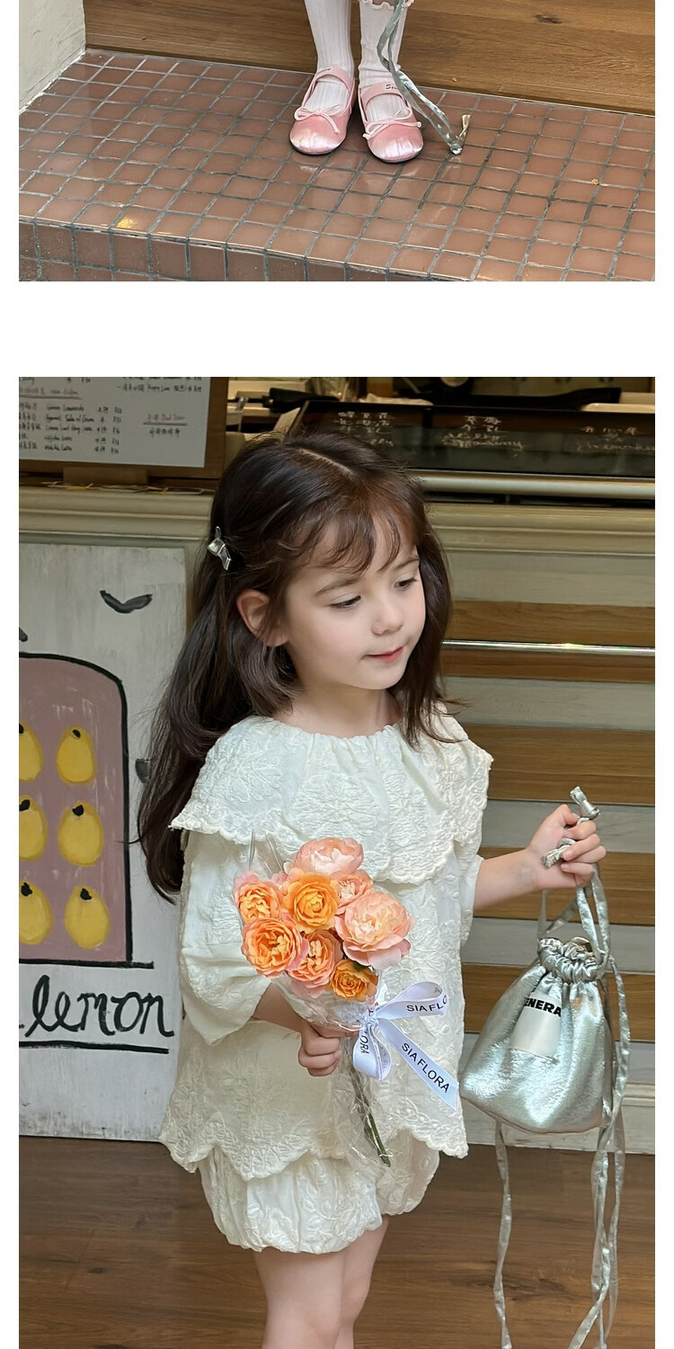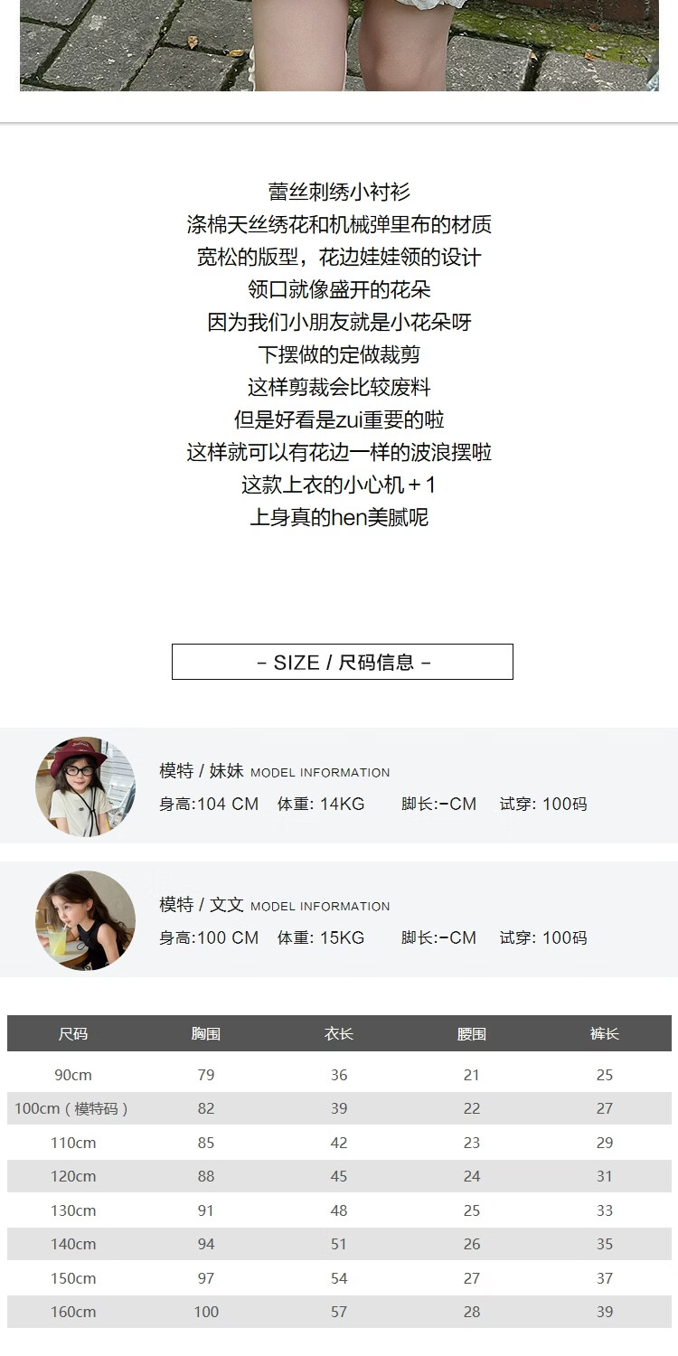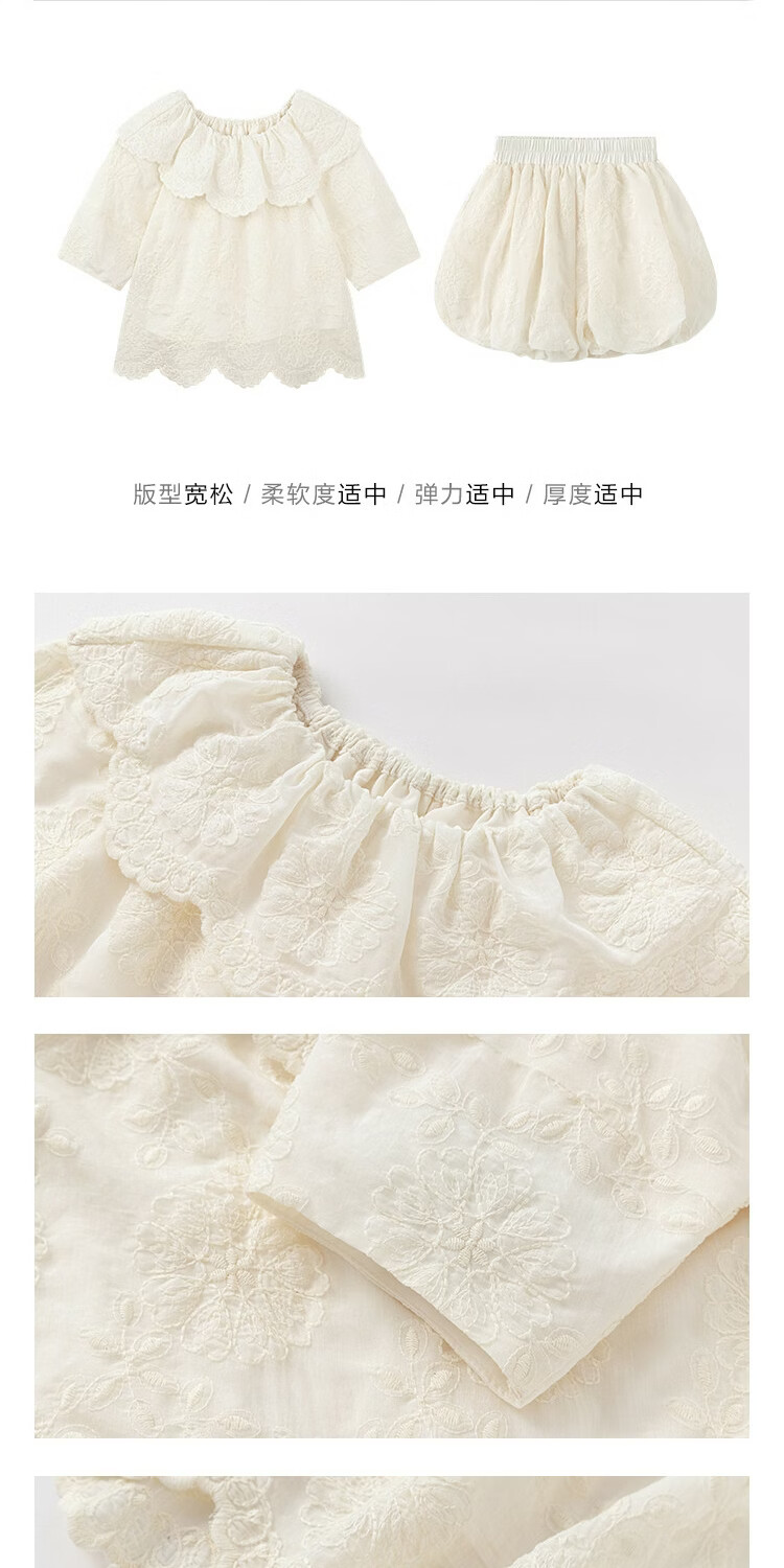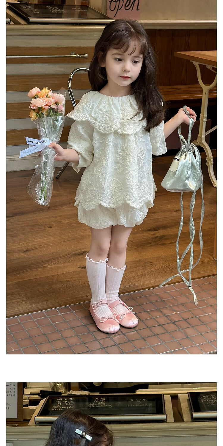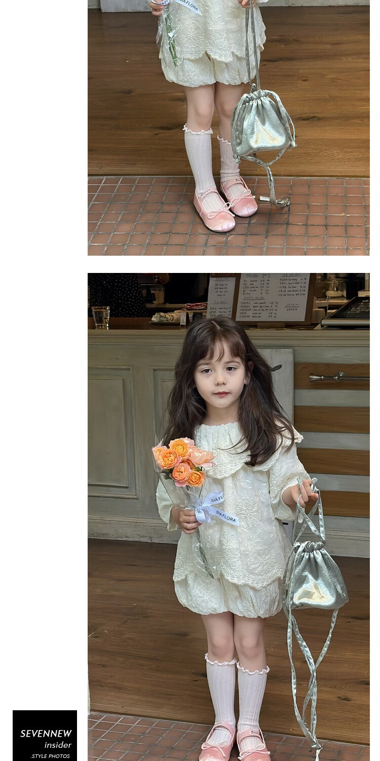 SEVEN BOBI No. 7 Children's Warehouse Girls' Korean Style Western Style Lapel Embroidered Jacquard Shirt Summer New Style Lace Trim Shorts Trendy Off-White Shirt Ready in Stock 120 cm